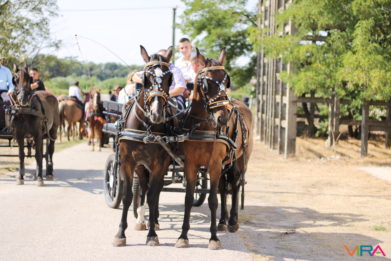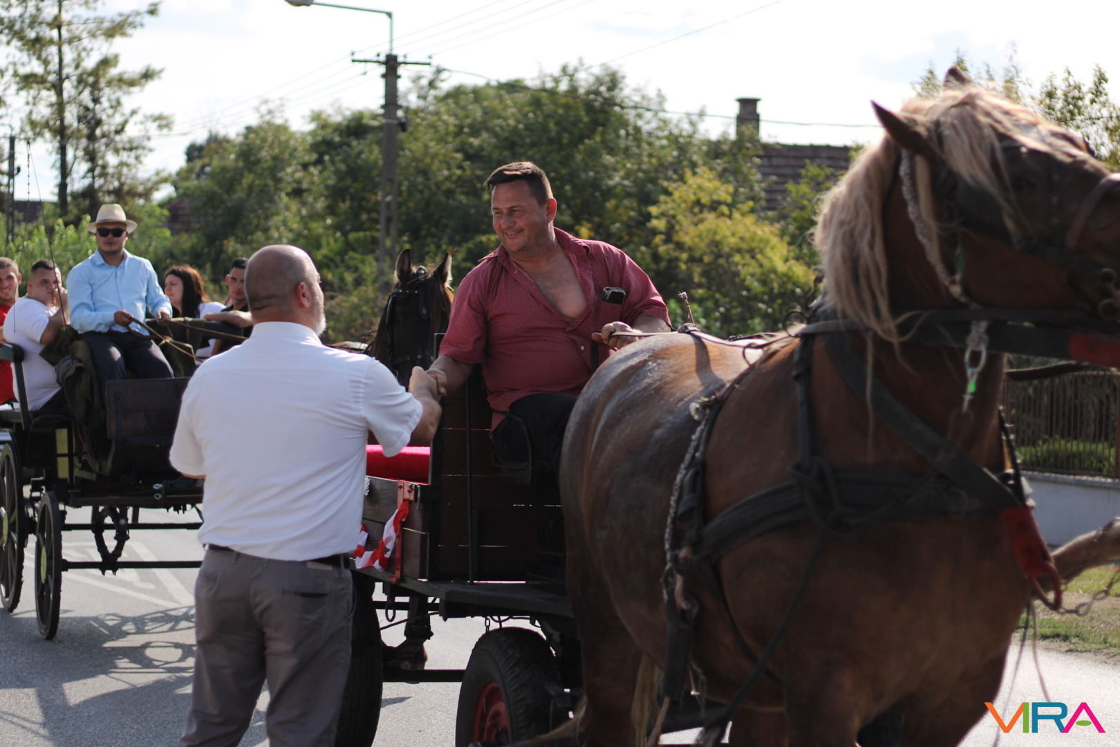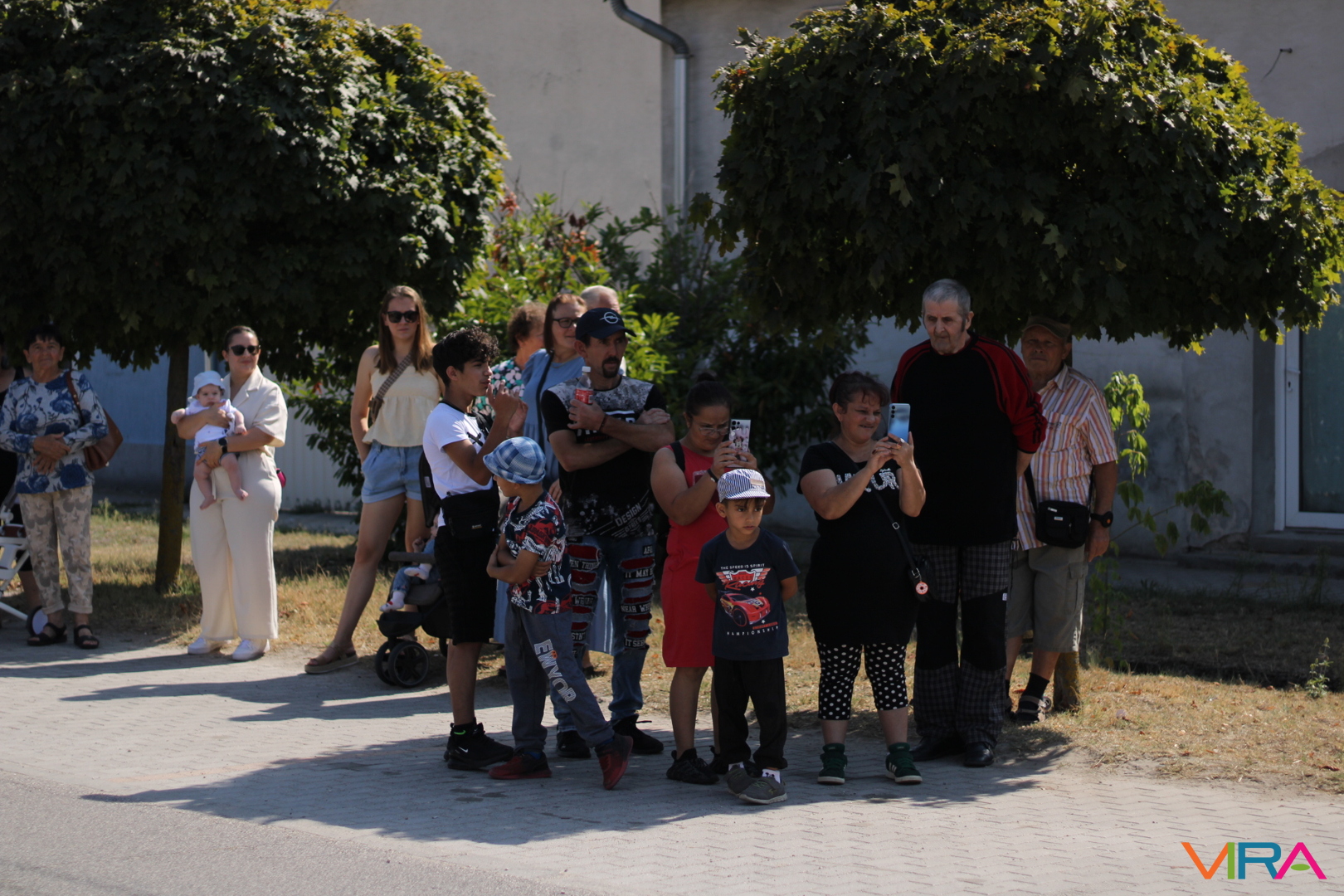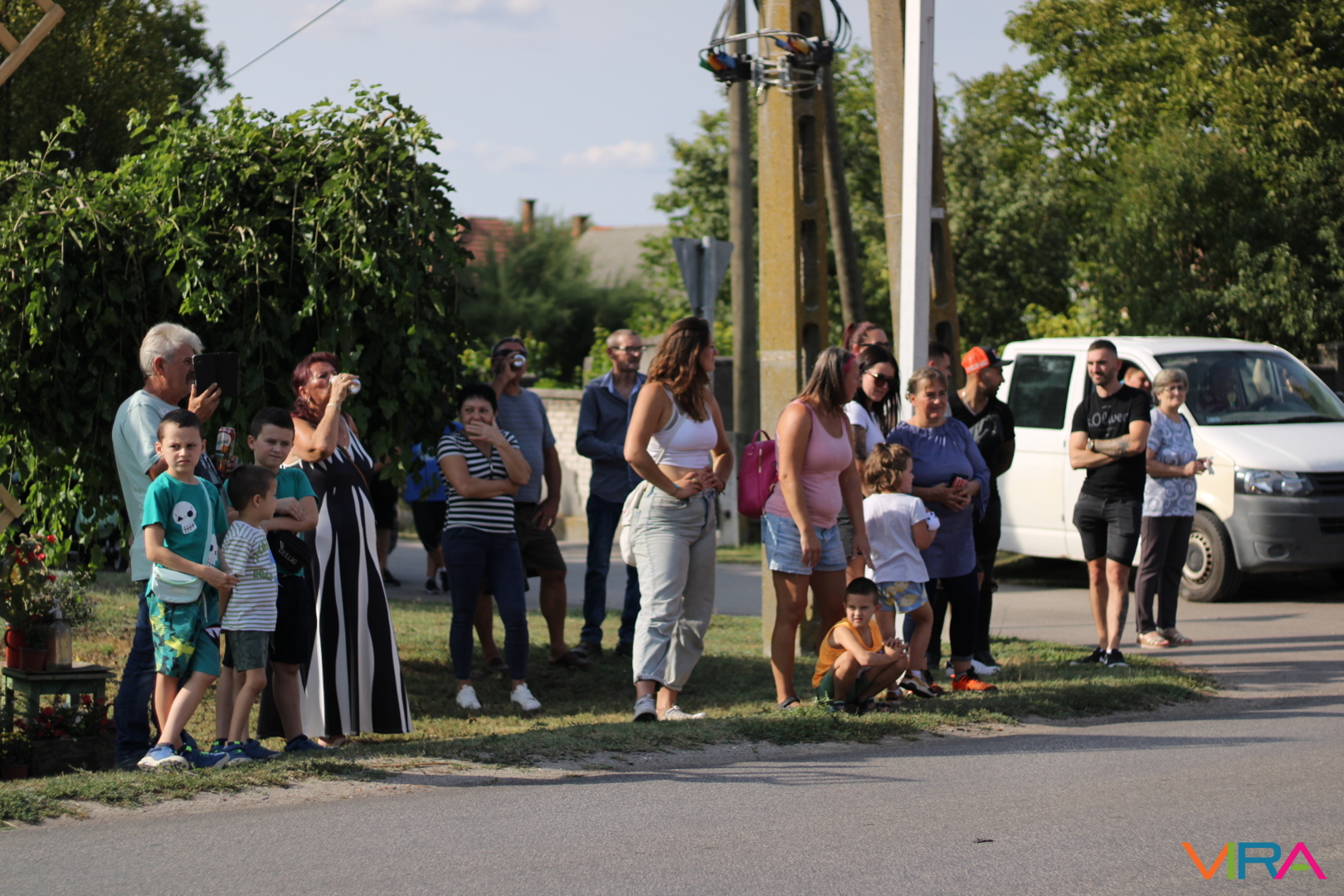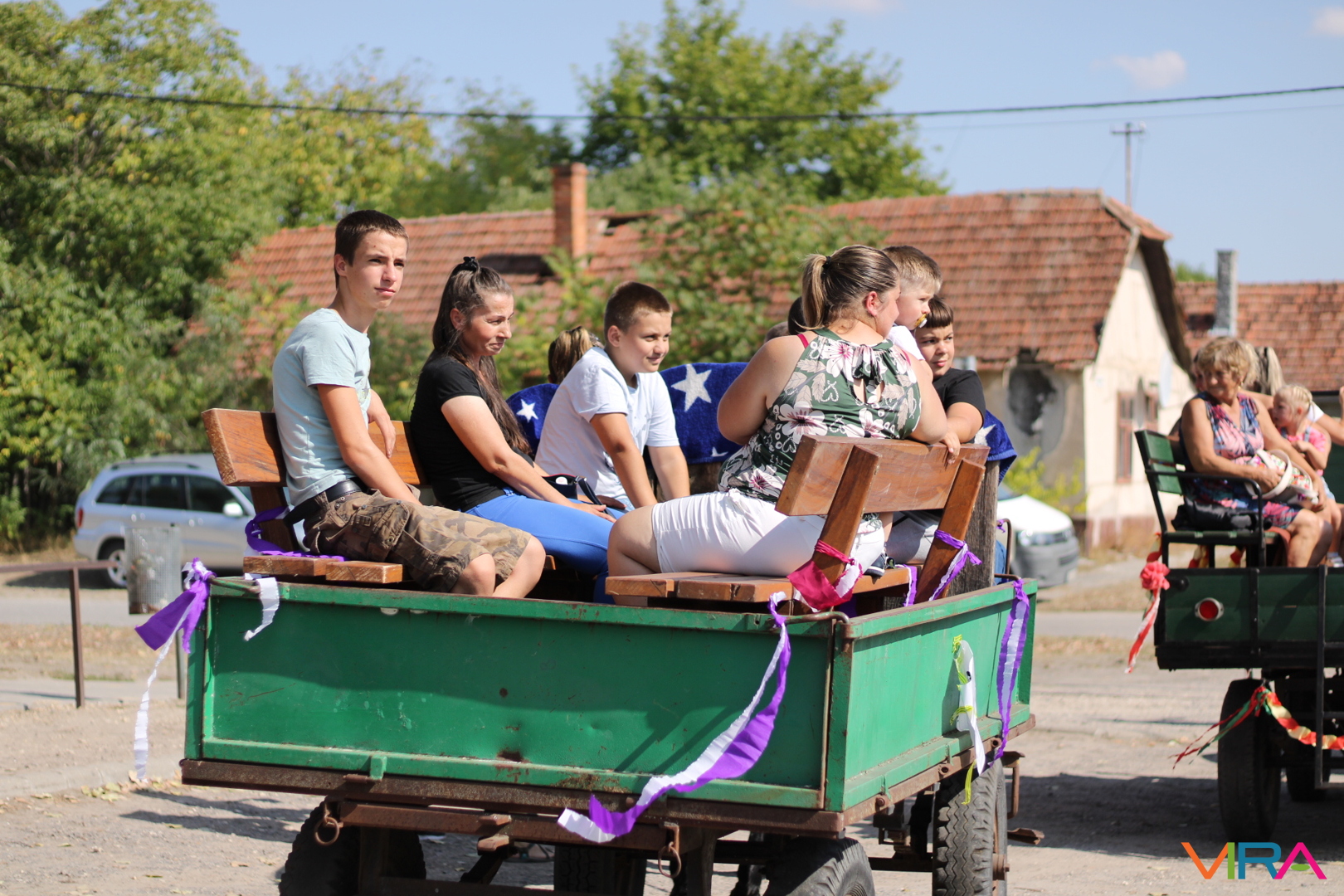A település focipályáján gyülekeztek a lelkes lovasok, akik szebbnél szebb fogatokkal érkezve várták sorukat a minden évben megrendezésre kerülő szüreti felvonulásra. Szerencsére a menetet kellemes idő kísérte végig, így az útközben megszomjazó lovasokat és barátaikat frissítő pontok várták, ahol finomabbnál finomabb süteményekkel és üdítőkkel vendégelték meg a helyi asszonyok. A menetet a polgárőrség és a rendőrség biztosította, hogy mindenki biztonságban vonulhasson végig a község utcáin. A hangos zeneszó mellett a kisbíró hangja is felcsendült, furfangosan elmesélte az elmúlt év eseményeit, szórakoztatva a falu népét. A körmenet végén minden résztvevő egy-egy üveg bort és emléklapot kapott a szervezők hálájának jeléül.