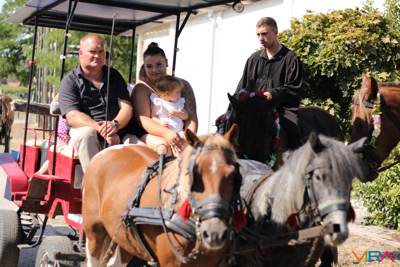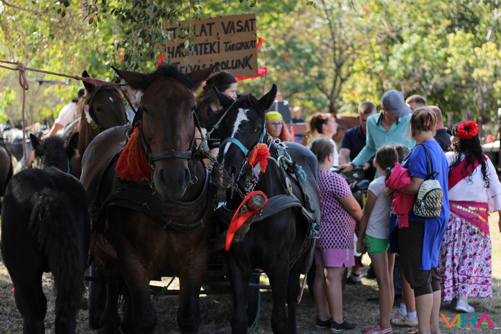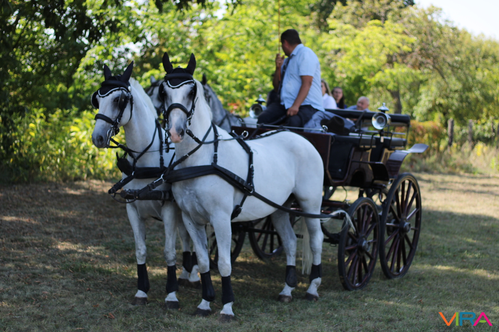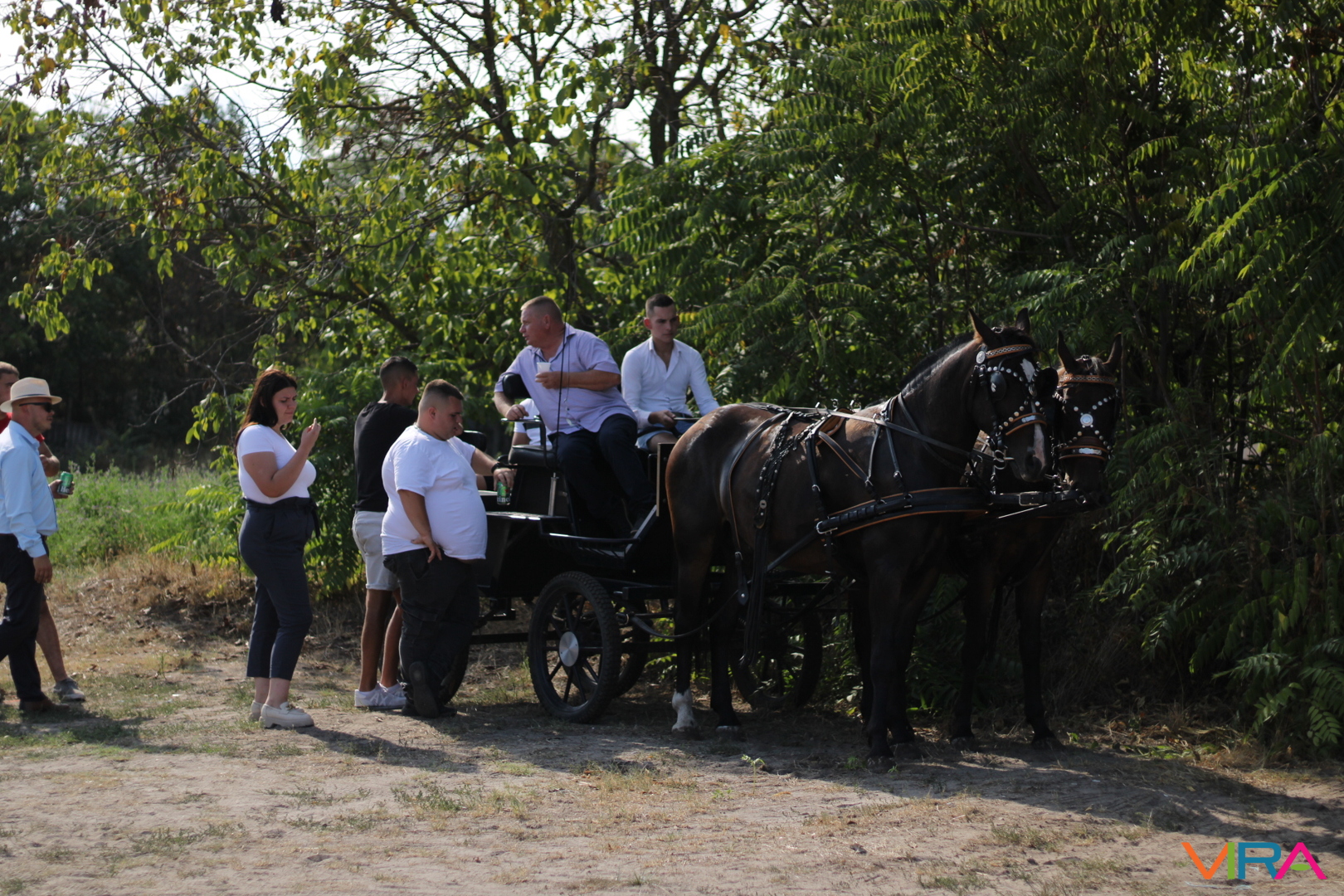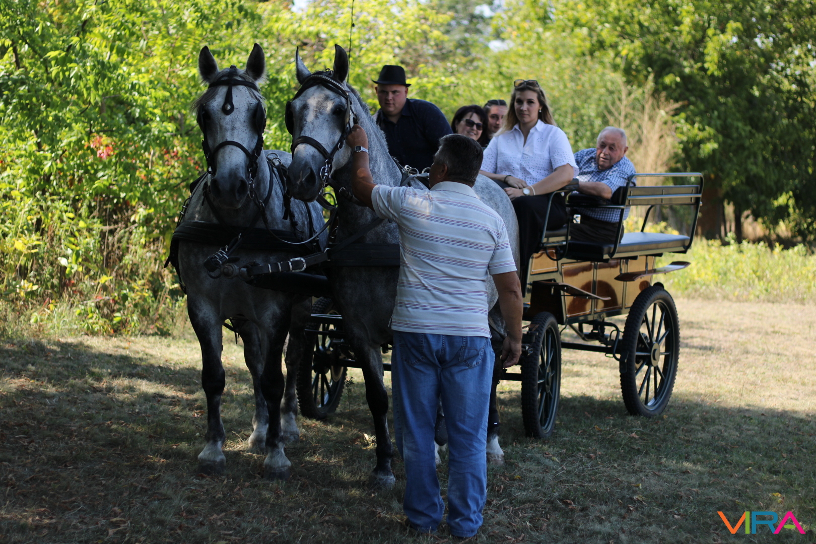 A település focipályáján gyülekeztek a lelkes lovasok, akik szebbnél szebb fogatokkal érkezve várták sorukat a minden évben megrendezésre kerülő szüreti felvonulásra. Szerencsére a menetet kellemes idő kísérte végig, így az útközben megszomjazó lovasokat és barátaikat frissítő pontok várták, ahol finomabbnál finomabb süteményekkel és üdítőkkel vendégelték meg a helyi asszonyok. A menetet a polgárőrség és a rendőrség biztosította, hogy mindenki biztonságban vonulhasson végig a község utcáin. A hangos zeneszó mellett a kisbíró hangja is felcsendült, furfangosan elmesélte az elmúlt év eseményeit, szórakoztatva a falu népét. A körmenet végén minden résztvevő egy-egy üveg bort és emléklapot kapott a szervezők hálájának jeléül.