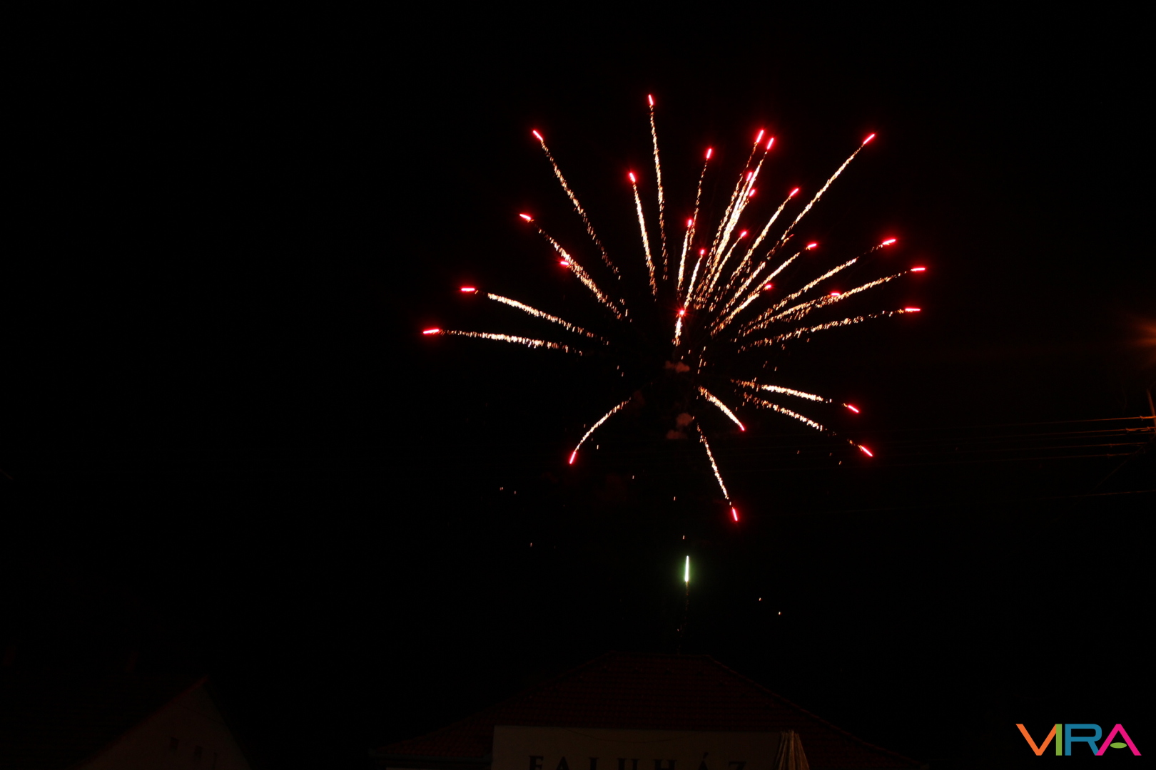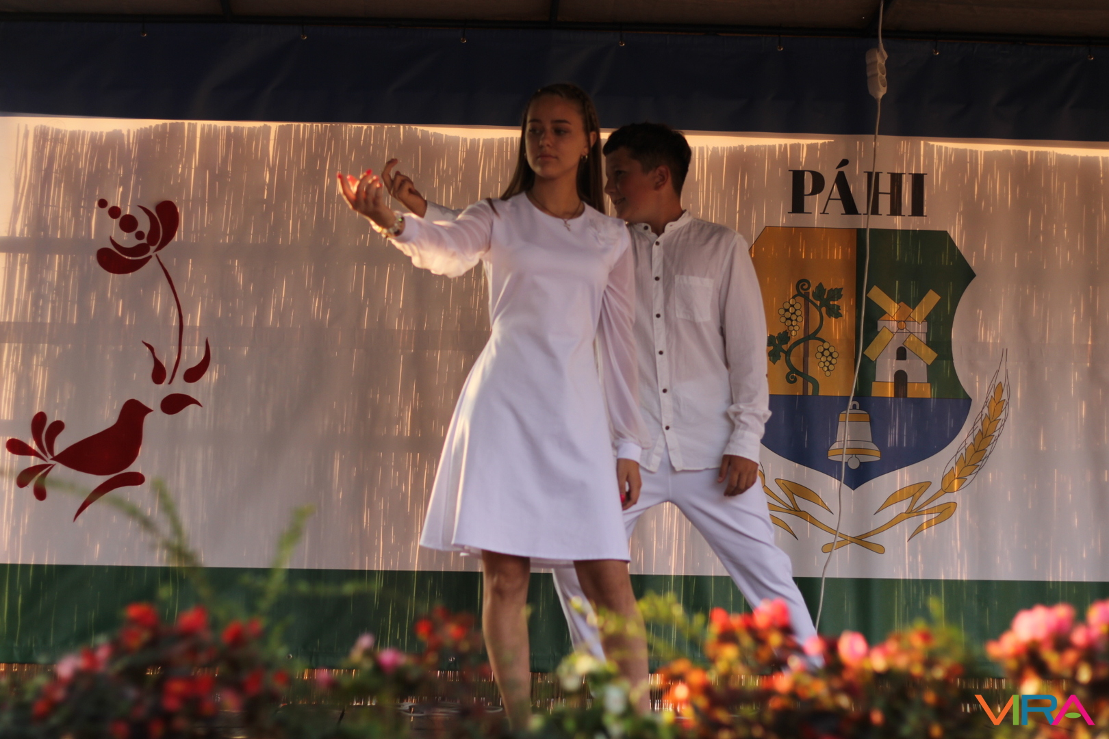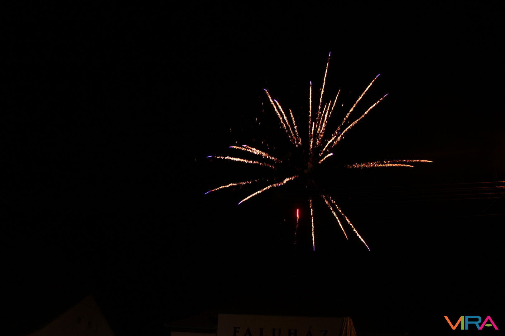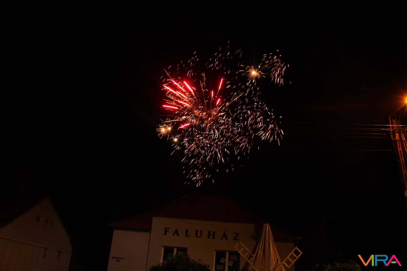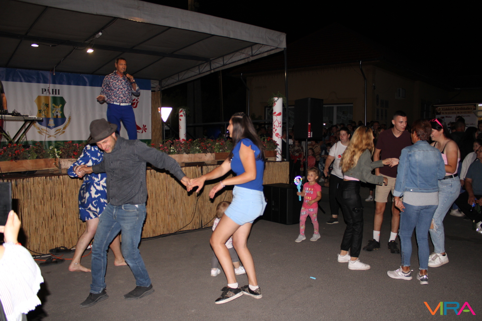 22 órakor durrogás és fény effektek váltották a trombitaszót: a falunapon rég nem látott tűzijáték festette szépre az eget. A látványos pirotechnikai show után folytatódott a szüreti dínom-dánom, a fiatal duó egészen hajnalig húzta a páhiak nótáját.