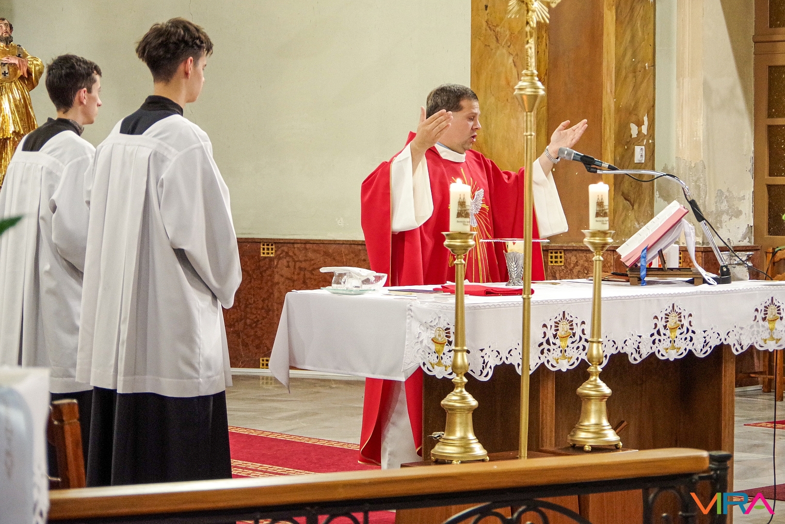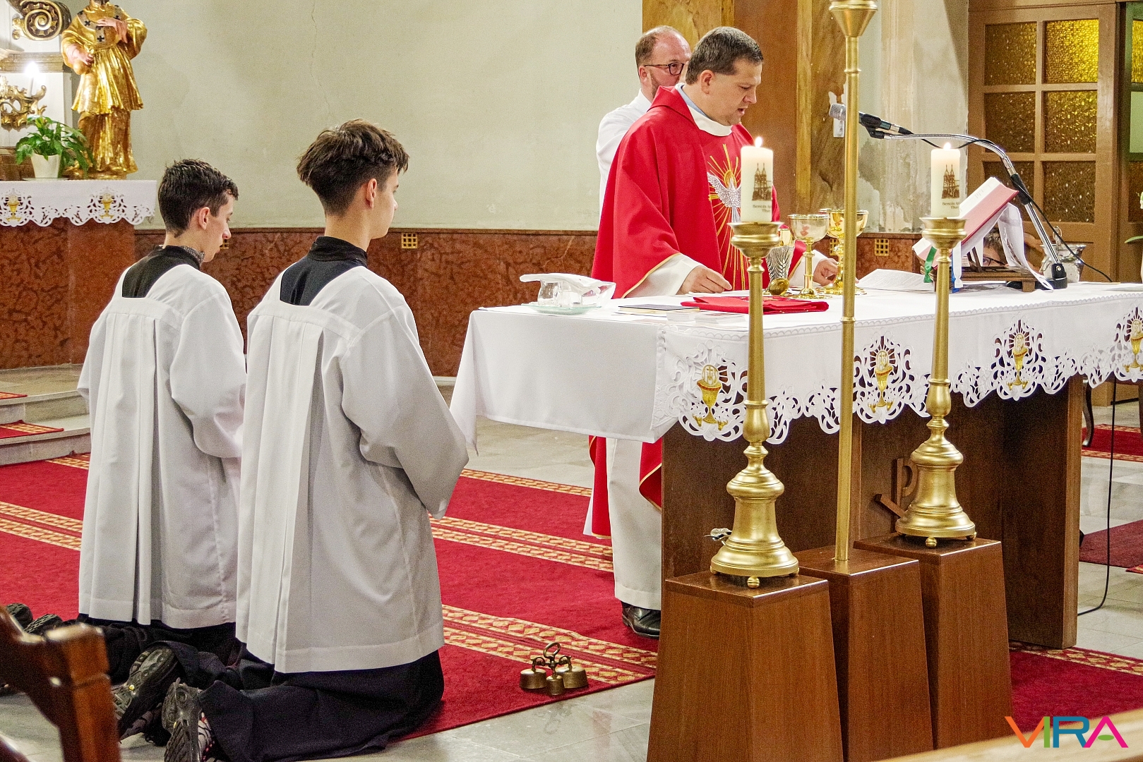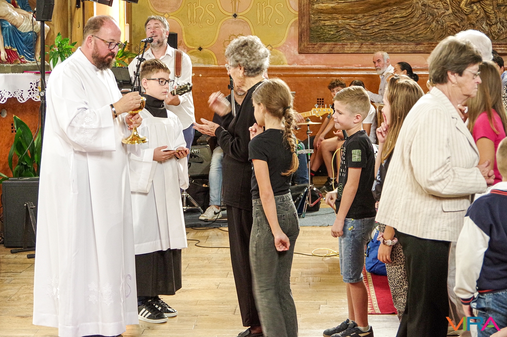 A vasárnapi szentmise keretében az iskolába járó gyermekekkel közös imádság volt, majd Tibor atya megáldotta az iskolatáskákat. A zenei szolgálatot Csiszér László zenekara biztosította a szentmise alatt.
