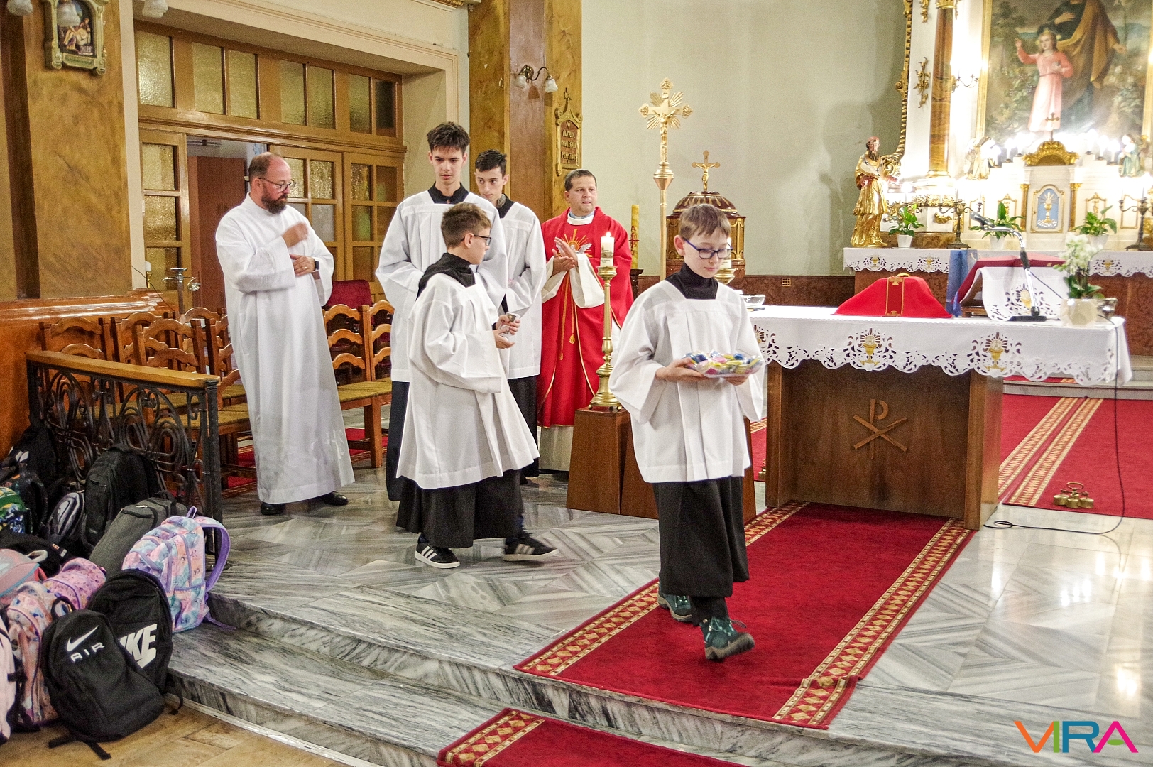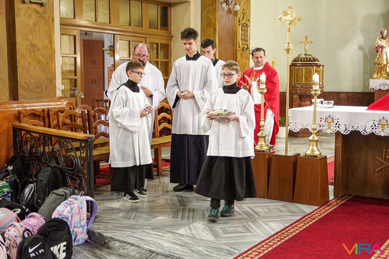 A vasárnapi szentmise keretében az iskolába járó gyermekekkel közös imádság volt, majd Tibor atya megáldotta az iskolatáskákat