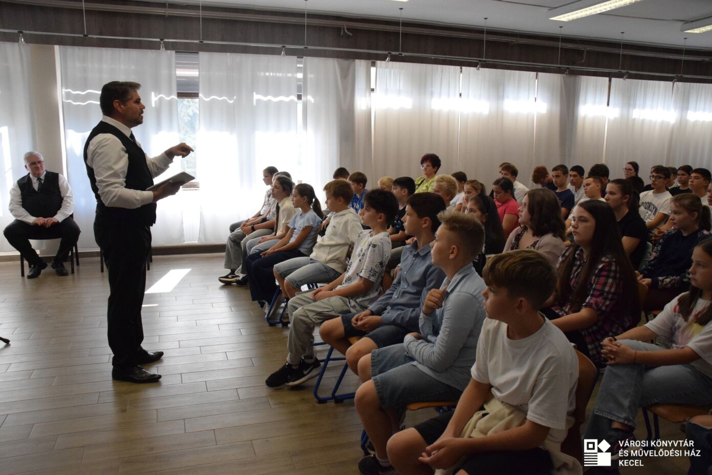 Szeptember 12-én a keceli Városi Könyvtár és Művelődési Ház különleges programmal várta a helyi diákokat, rendhagyó énekóra keretében a Magyar Nemzeti Férfikar tagjai kalauzolták a közönséget a zenetörténet világába.