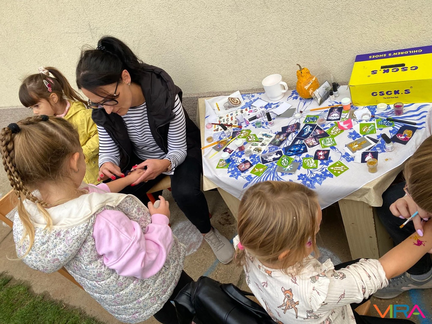 Aki jóllakott, az választhatott, hogy csillámtetoválást, vagy arcfestést választ pihenésül, hiszen a gyerekek számára oly kedvelt tevékenységek sem hiányozhatnak a vásárainkból. Köszönjük az EGYSZI Család- és Gyermekjóléti Szolgálat munkatársainak a csillámtetoválásnál nyújtott segítséget, és Simák Dóra arcfestőnek a szebbnél szebb alkotásokat.