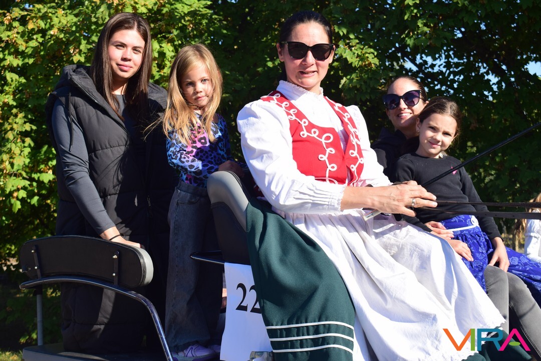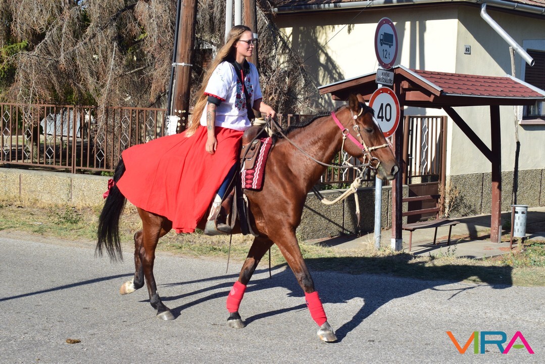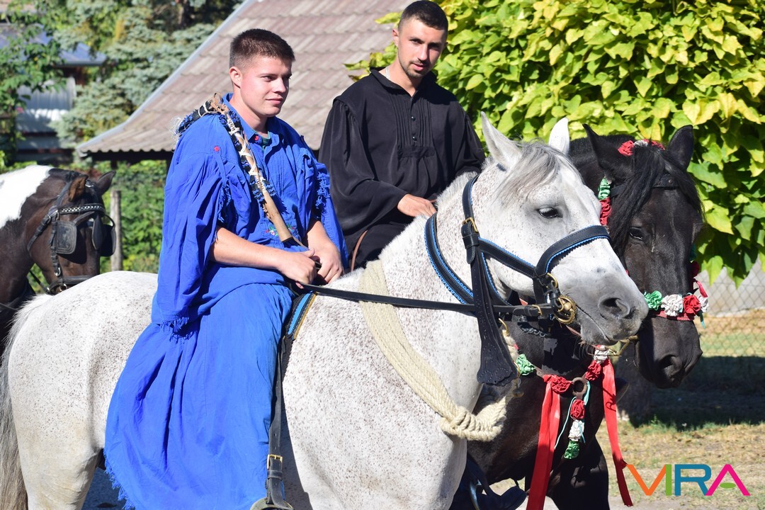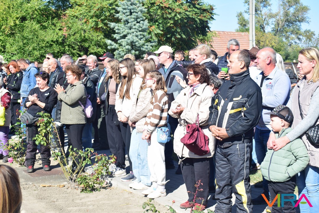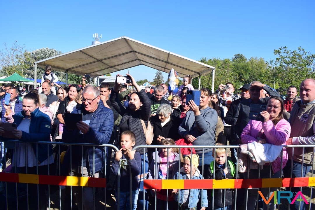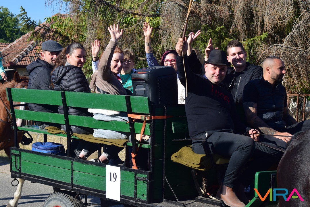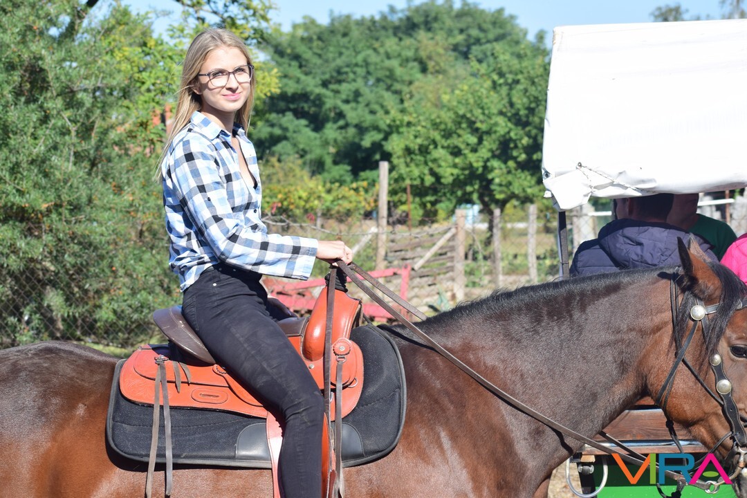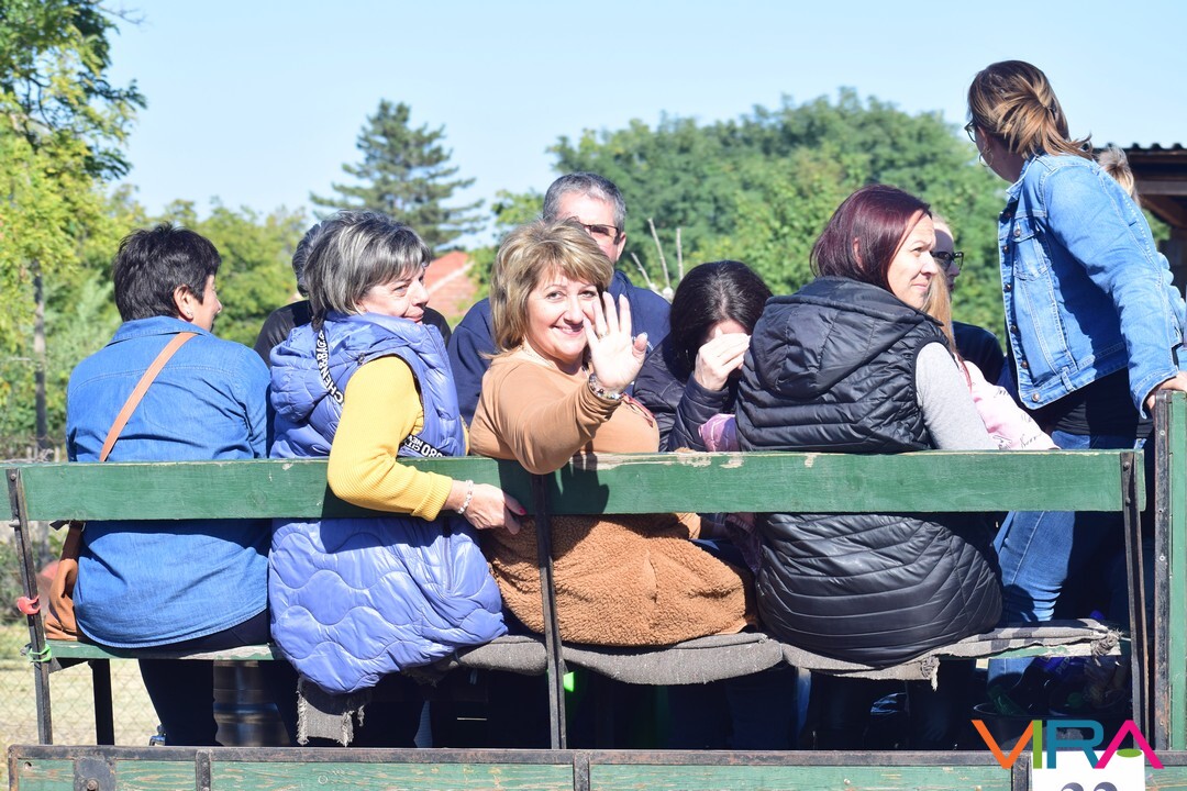 Délután fél kettőkor vette kezdetét a látványos szüreti felvonulás, melyre több településről is érkezetek lovasok, kocsisok és fogatosok. A menet először az IKSZT Dankó Pista Művelődési Ház előtt állt meg ahol külön is köszöntötték és be is mondták a fogatosok, kocsisok nevét. Részükre emléklappal és egy üveg borral köszönték meg a szervezők, hogy idén is ellátogattak Csengődre.