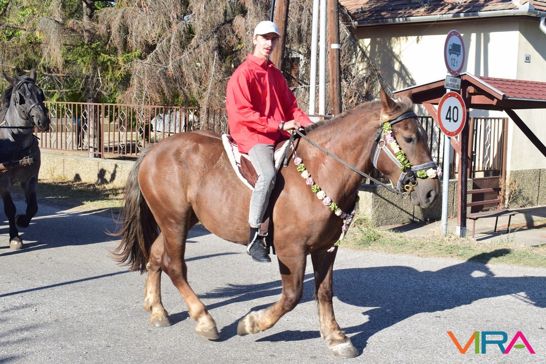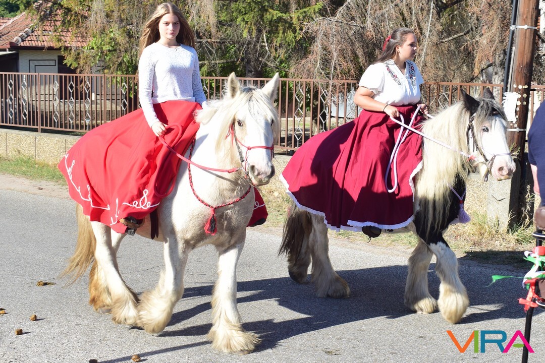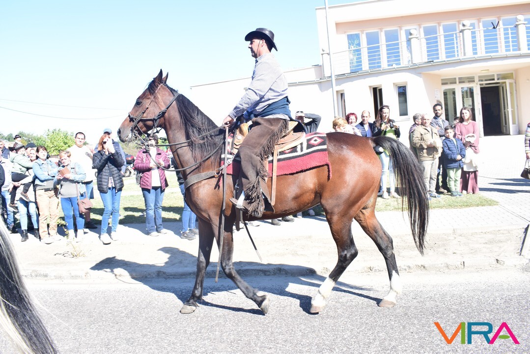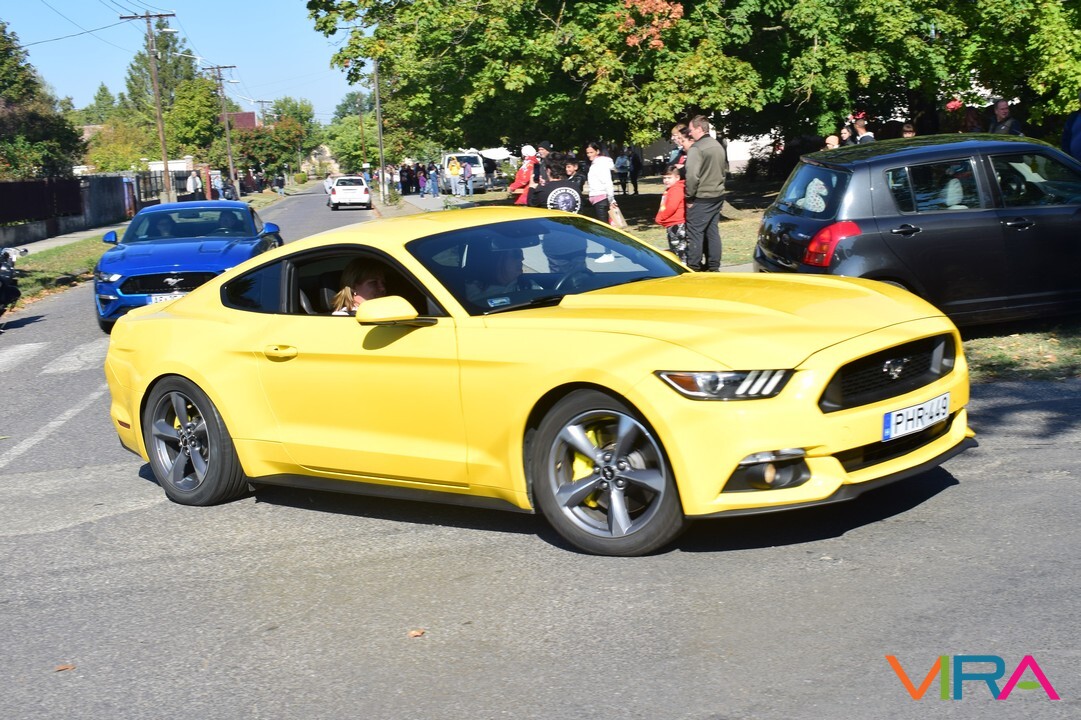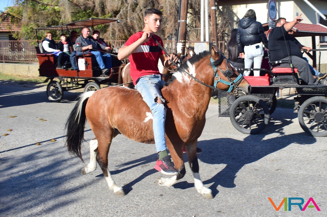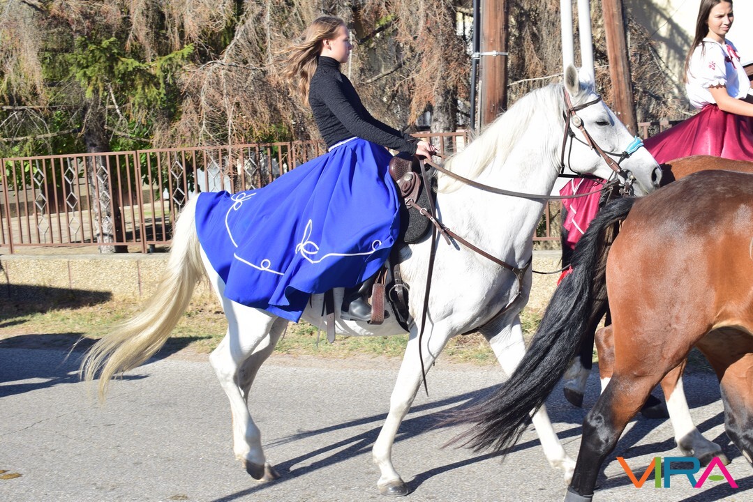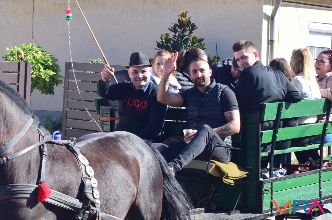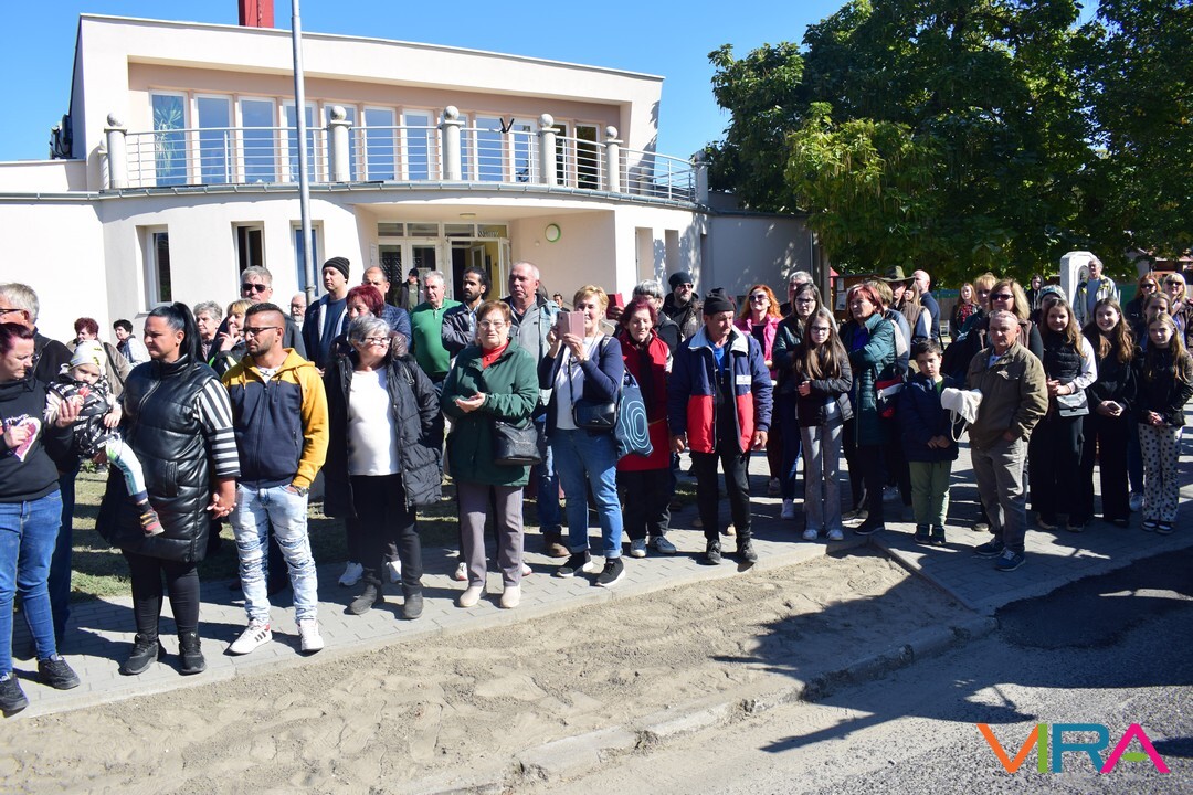 Délután fél kettőkor vette kezdetét a látványos szüreti felvonulás, melyre több településről is érkezetek lovasok, kocsisok és fogatosok. A menet először az IKSZT Dankó Pista Művelődési Ház előtt állt meg ahol külön is köszöntötték és be is mondták a fogatosok, kocsisok nevét. Részükre emléklappal és egy üveg borral köszönték meg a szervezők, hogy idén is ellátogattak Csengődre.