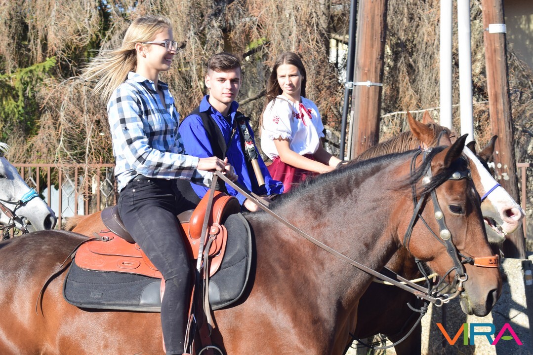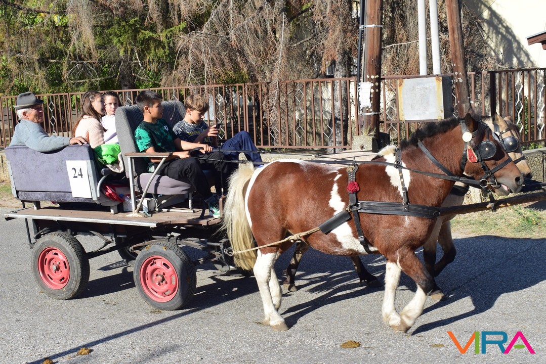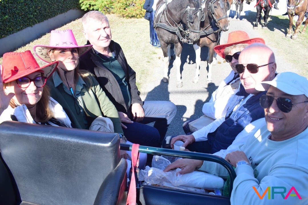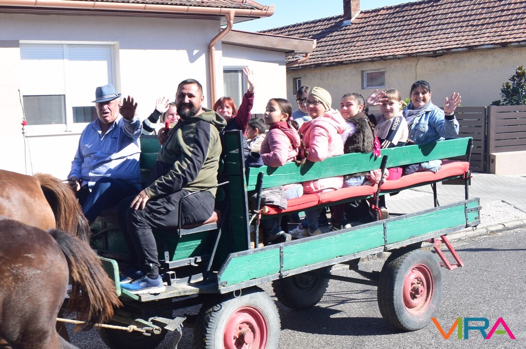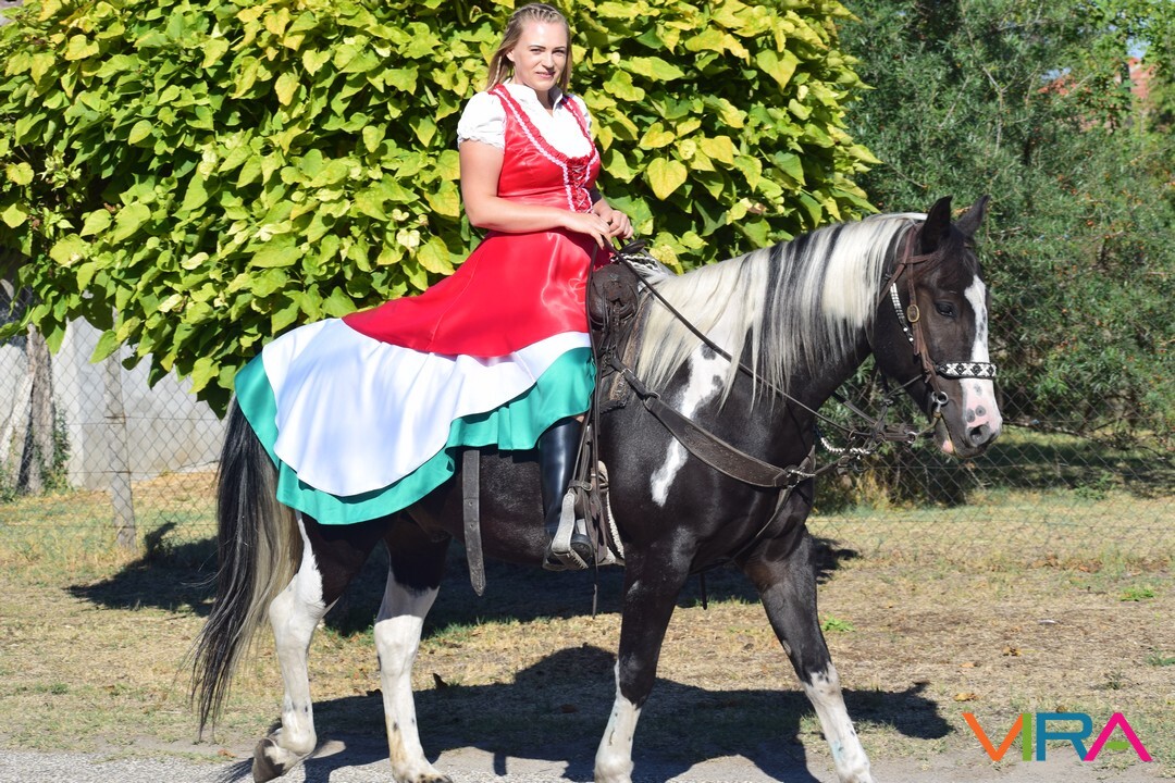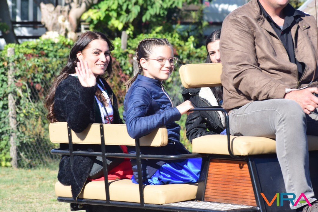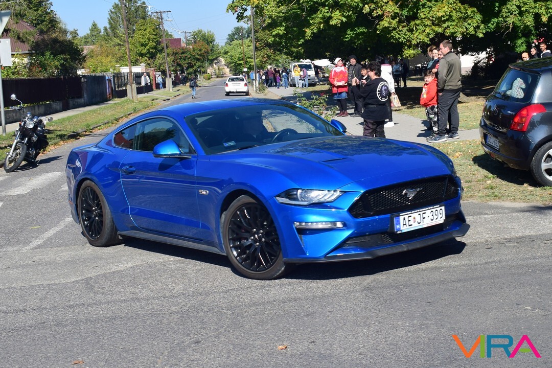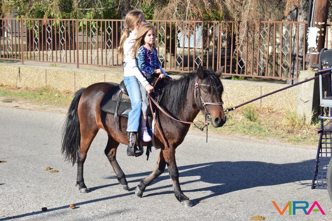 Délután fél kettőkor vette kezdetét a látványos szüreti felvonulás, melyre több településről is érkezetek lovasok, kocsisok és fogatosok. A menet először az IKSZT Dankó Pista Művelődési Ház előtt állt meg ahol külön is köszöntötték és be is mondták a fogatosok, kocsisok nevét. Részükre emléklappal és egy üveg borral köszönték meg a szervezők, hogy idén is ellátogattak Csengődre.