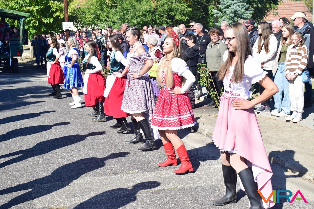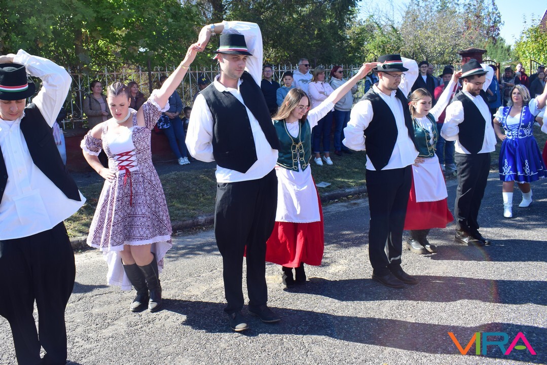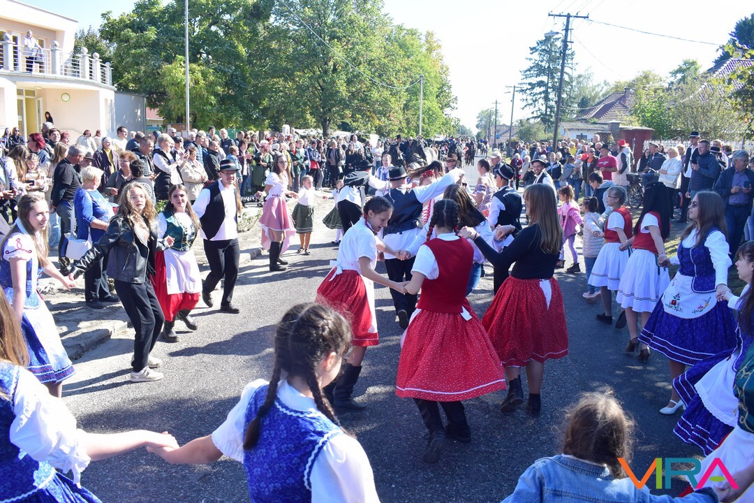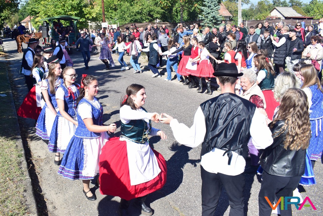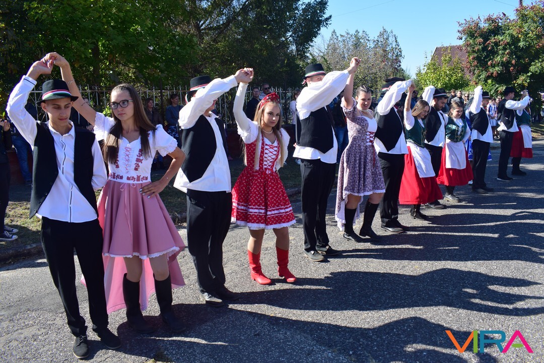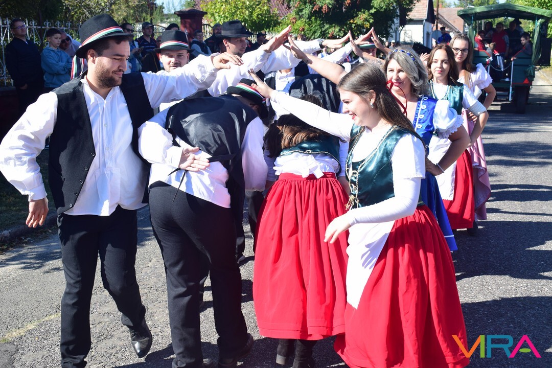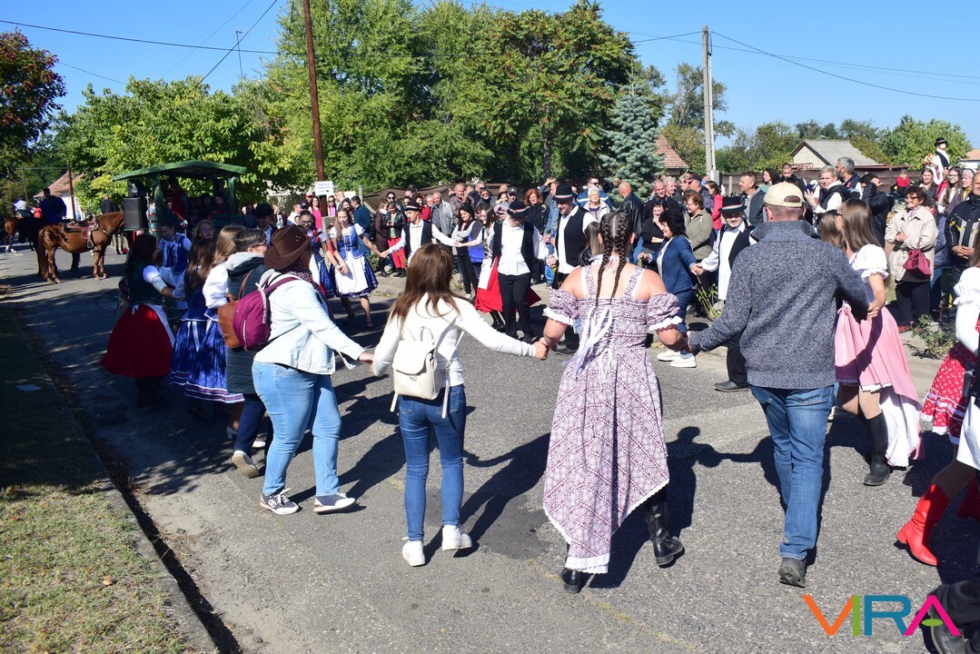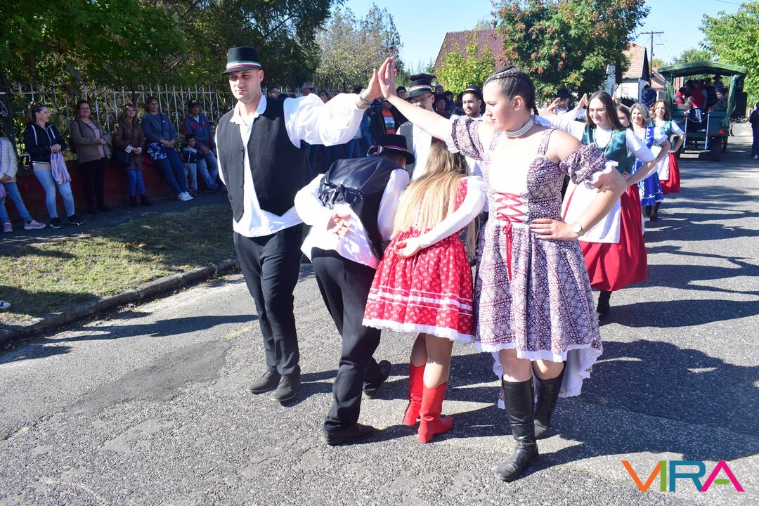 A Művelődési Ház előtti helyszínen, a helyi fiatalok népviseletbe öltözve, egy betanult koreográfia alapján táncoltak is, megidézve a régi szüreti mulatságok hangulatát. Közel 40 kocsi, fogat és sok-sok lovas vonult fel Csengőd utcáin. A menetet megállók is várták különböző helyszíneken, ahol a helyiek sok-sok finomsággal, étellel, itallal várták a felvonulókat. A szüreti felvonulást idén is, ahogyan már több éve Beke Zoltán szervezte. A zenész kocsin most is Oroszi Sándor és zenekara szolgáltatta a menethez a talpalávalót.