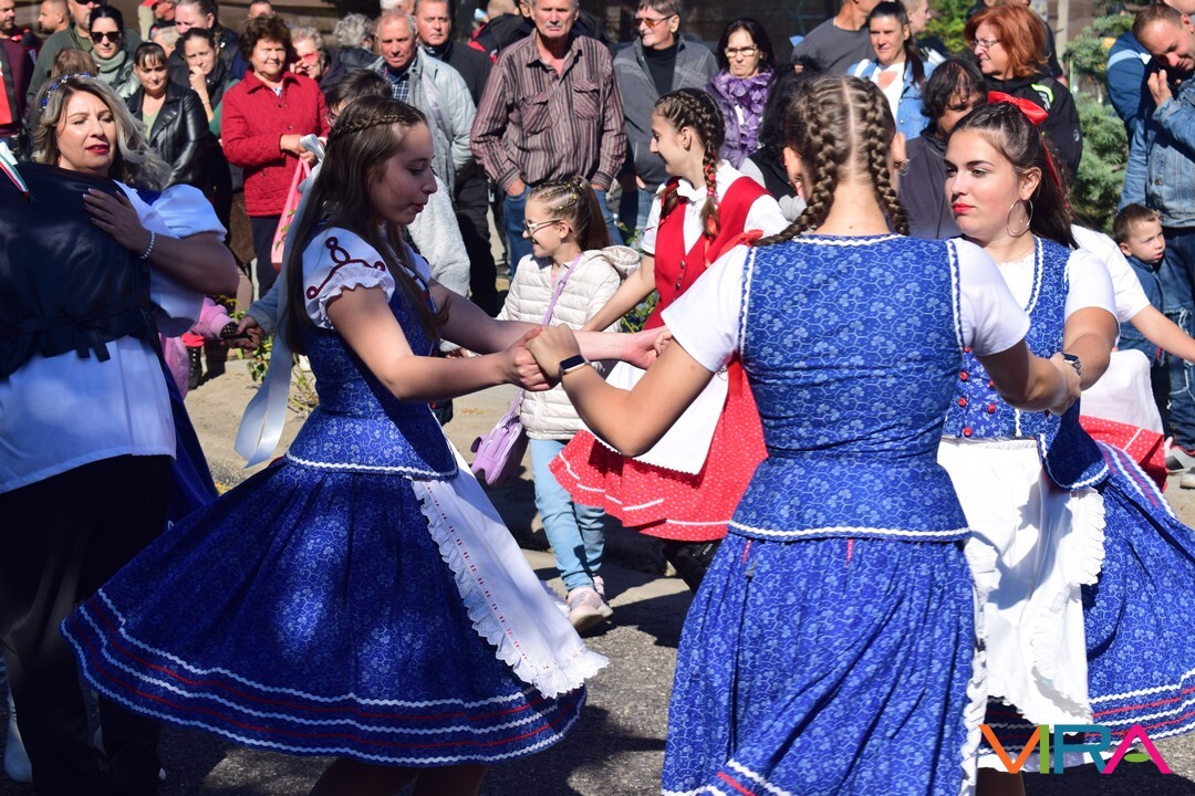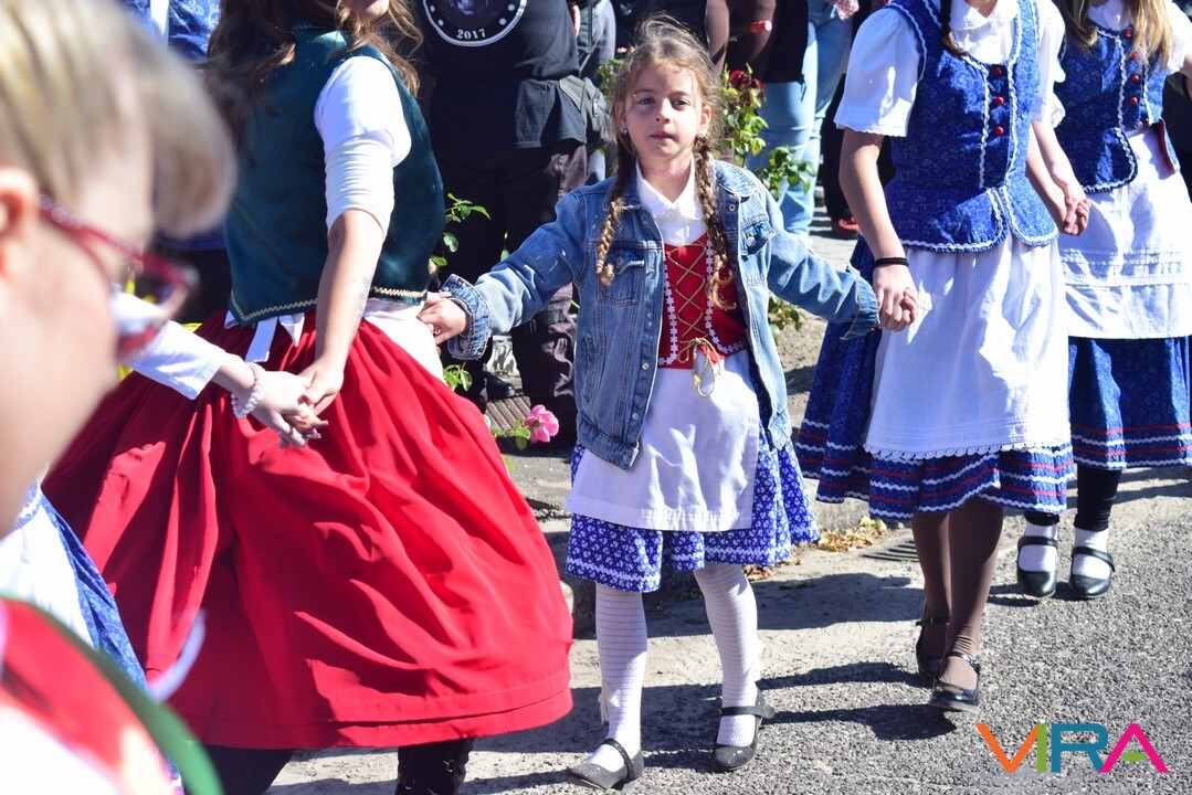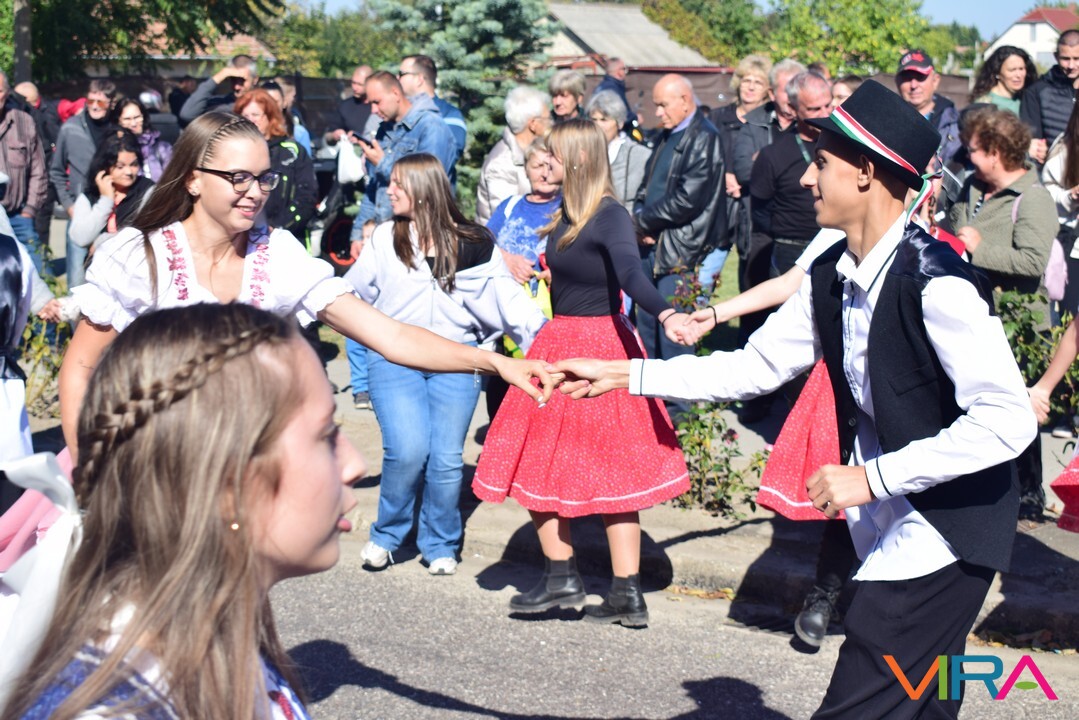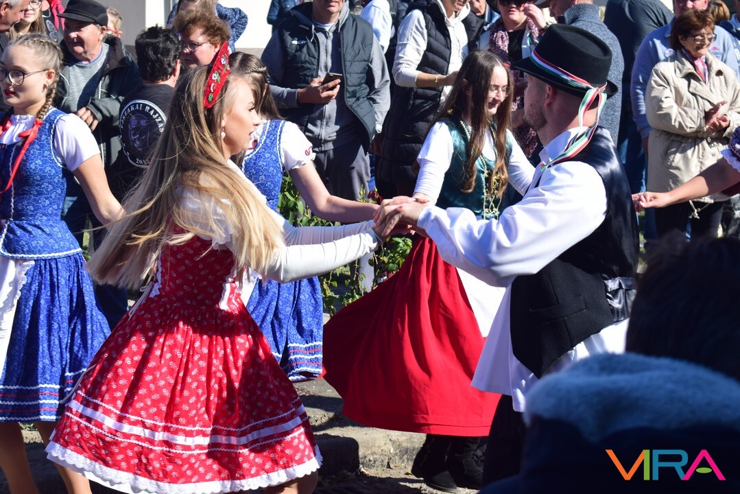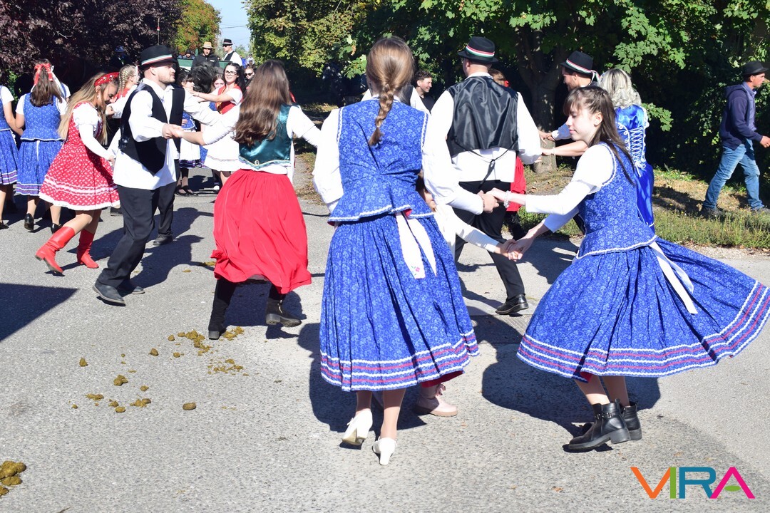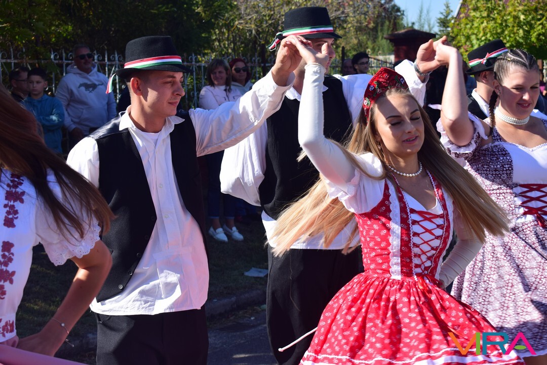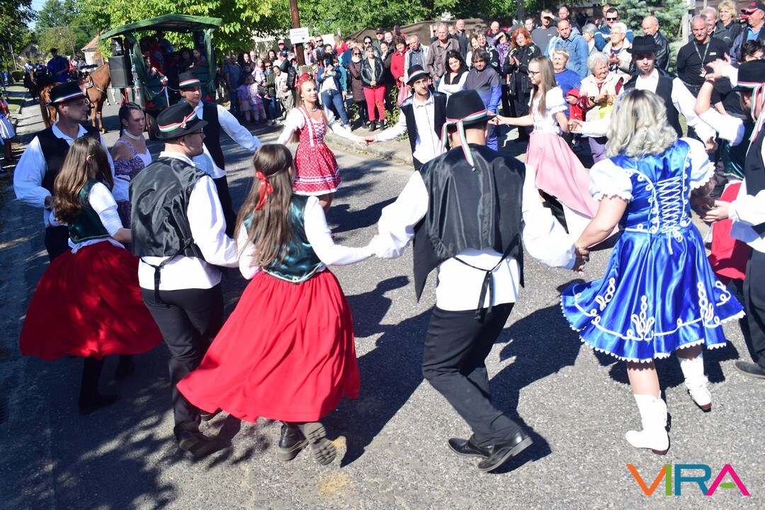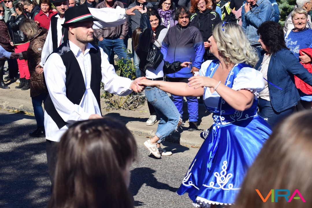 A Művelődési Ház előtti helyszínen, a helyi fiatalok népviseletbe öltözve, egy betanult koreográfia alapján táncoltak is, megidézve a régi szüreti mulatságok hangulatát. Közel 40 kocsi, fogat és sok-sok lovas vonult fel Csengőd utcáin. A menetet megállók is várták különböző helyszíneken, ahol a helyiek sok-sok finomsággal, étellel, itallal várták a felvonulókat. A szüreti felvonulást idén is, ahogyan már több éve Beke Zoltán szervezte. A zenész kocsin most is Oroszi Sándor és zenekara szolgáltatta a menethez a talpalávalót.