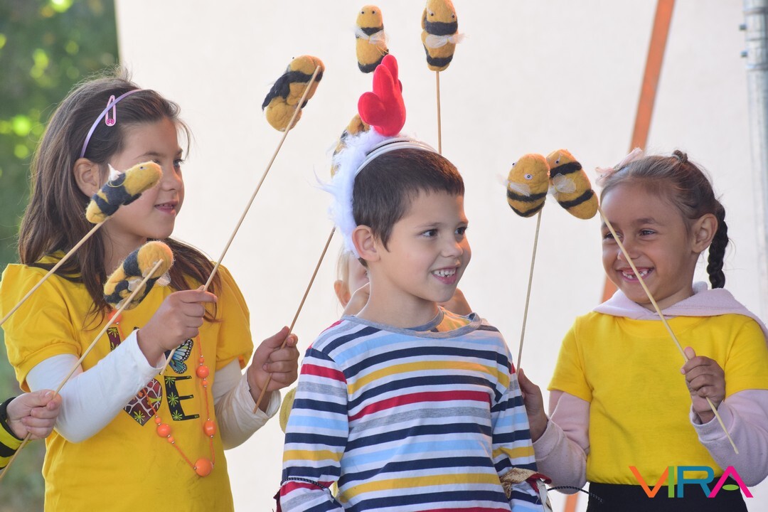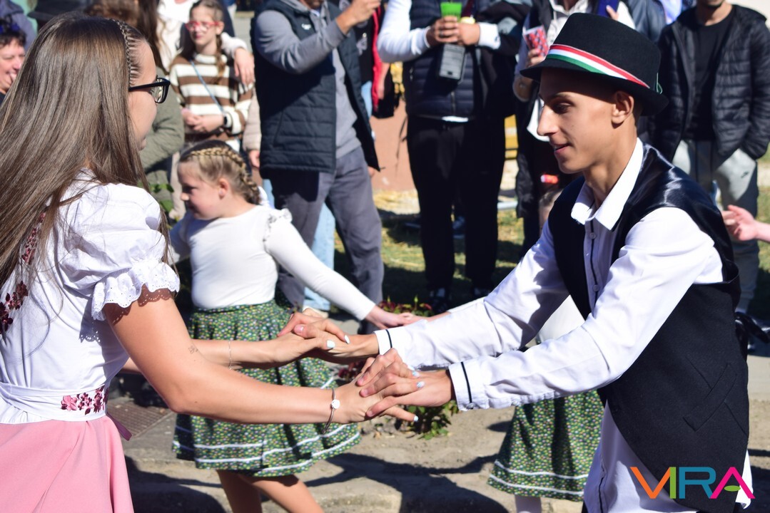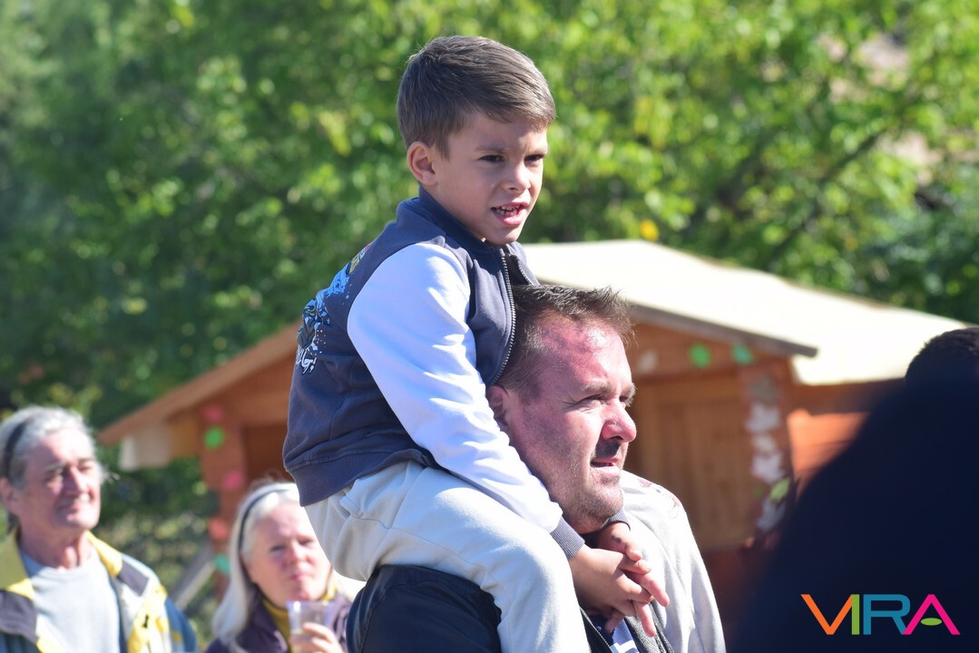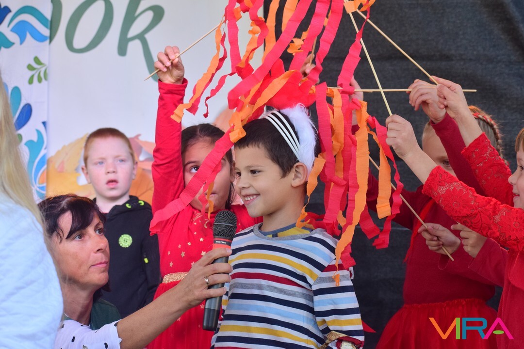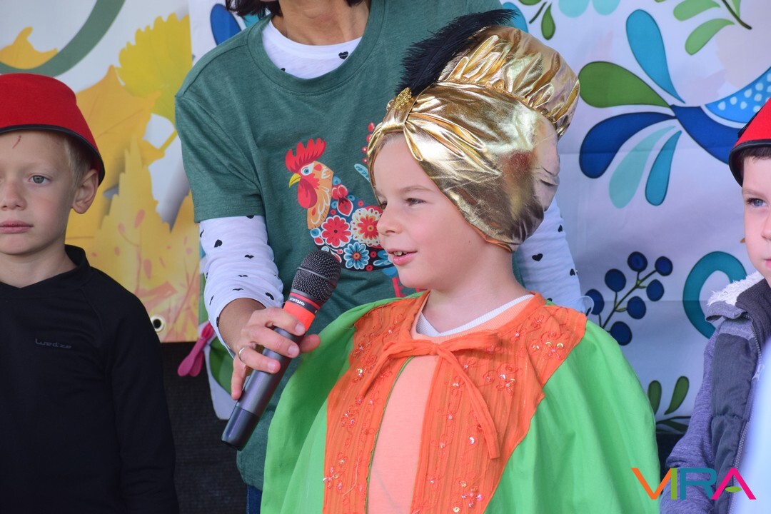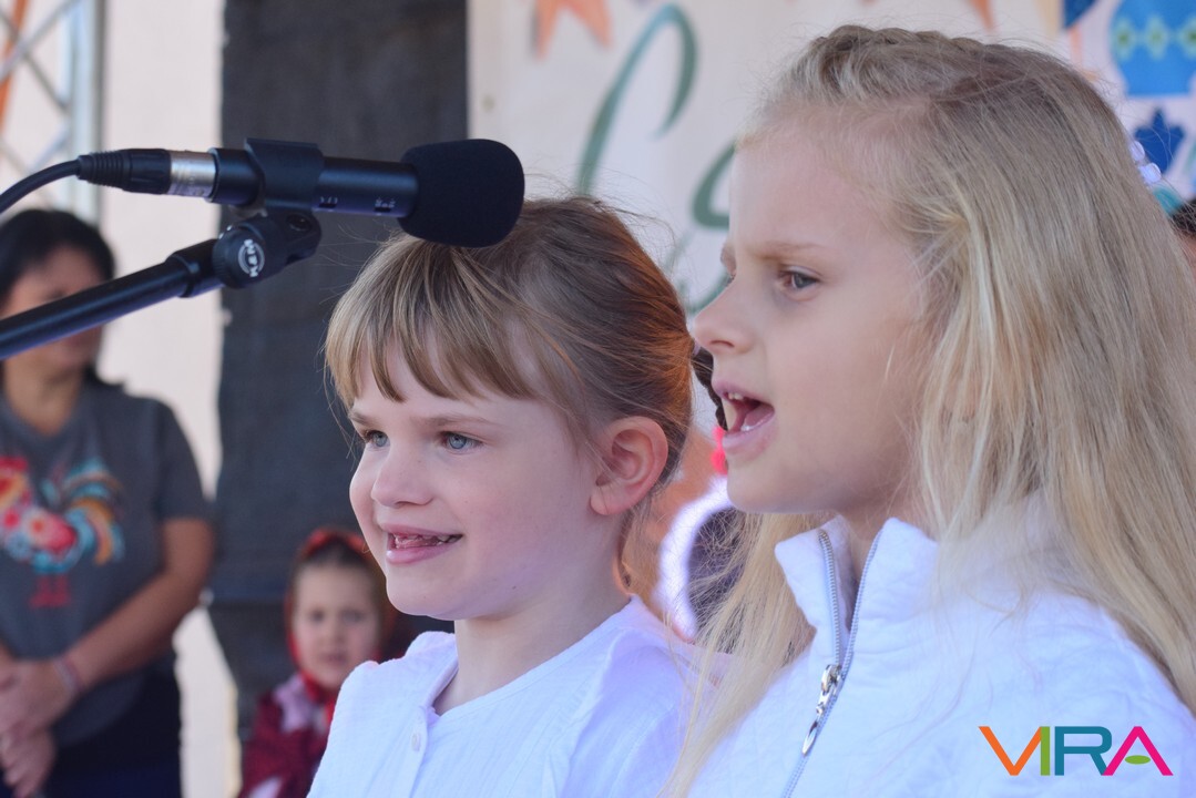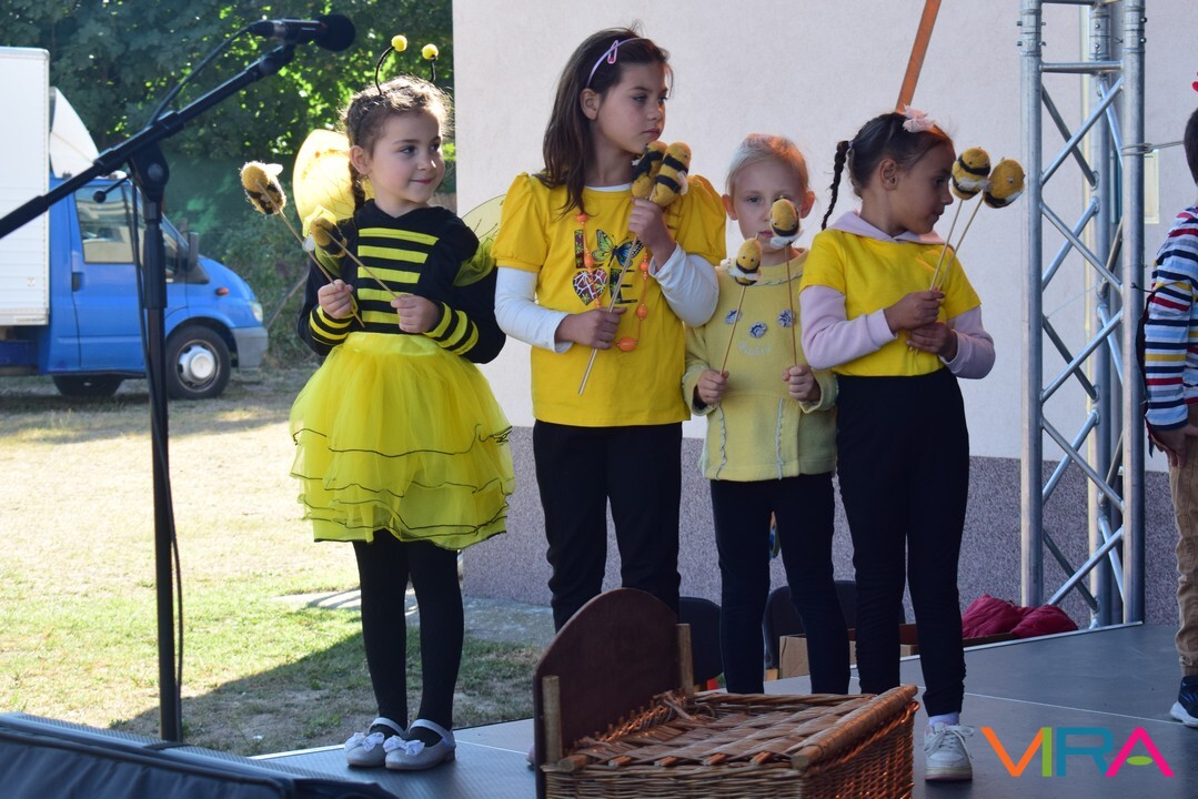 A lovas szüreti felvonulás után a nagyszínpadon folytatódtak a programok. Először a helyi óvoda nagycsoportosai léptek fel és táncos elemekkel tarkított mesét adtak elő. A Kiskakas gyémánt félkrajcárja című mesét vitték a színpadra. Őket követte a Dankó Pista Férfikórus magyar nótákkal, dalokkal. Előadásuknak idén: Kedved a jó bor jobban éleszti volt a címe.