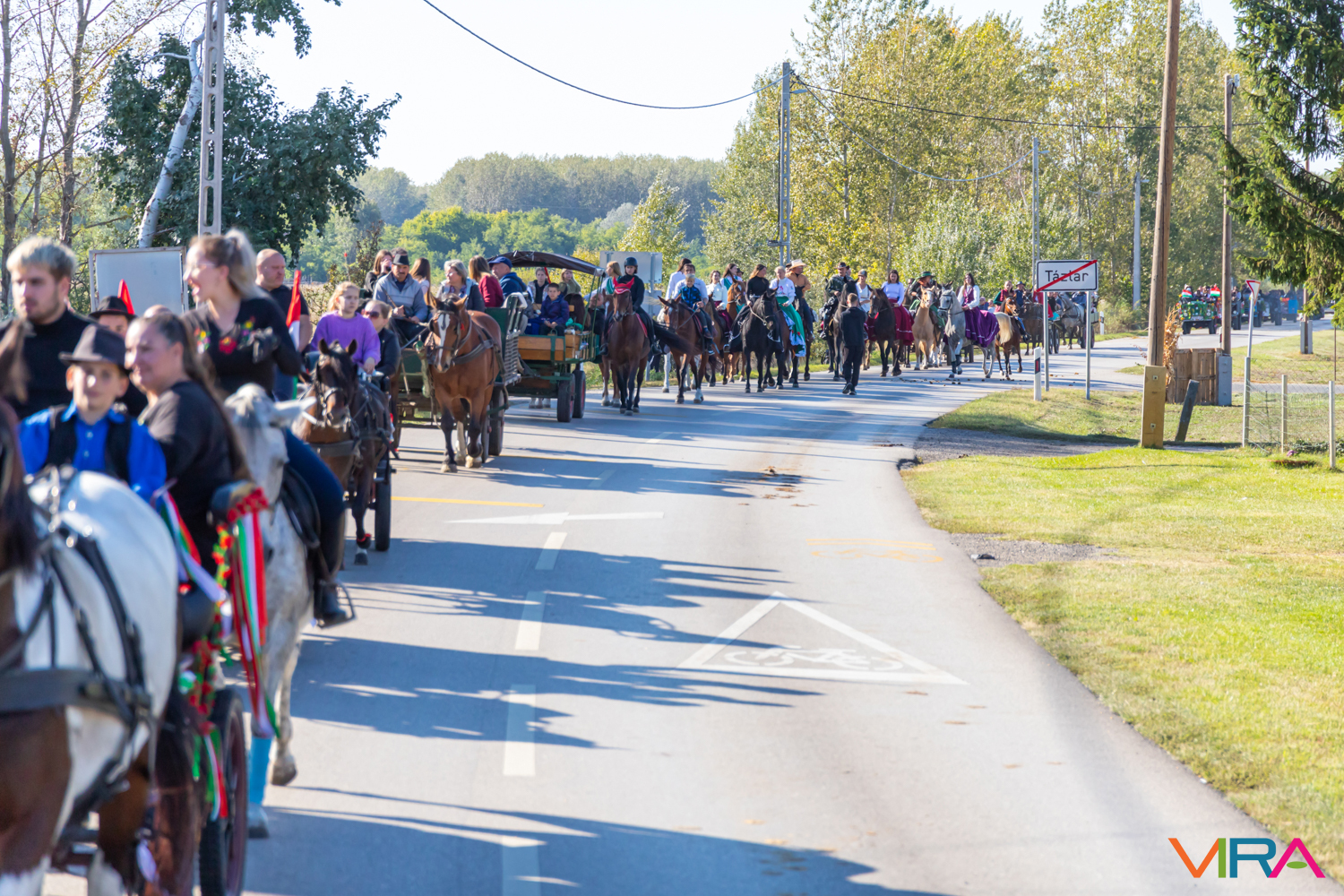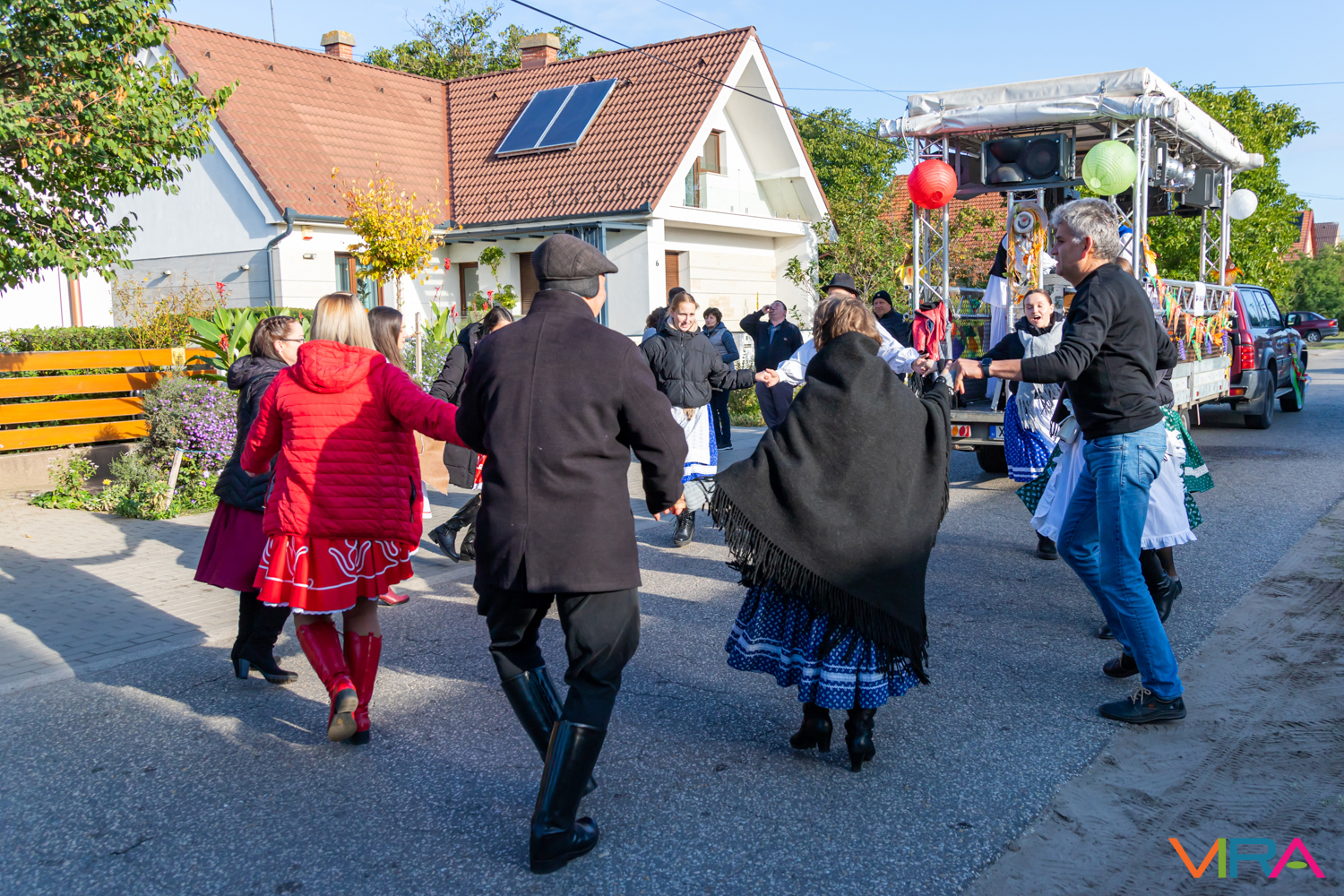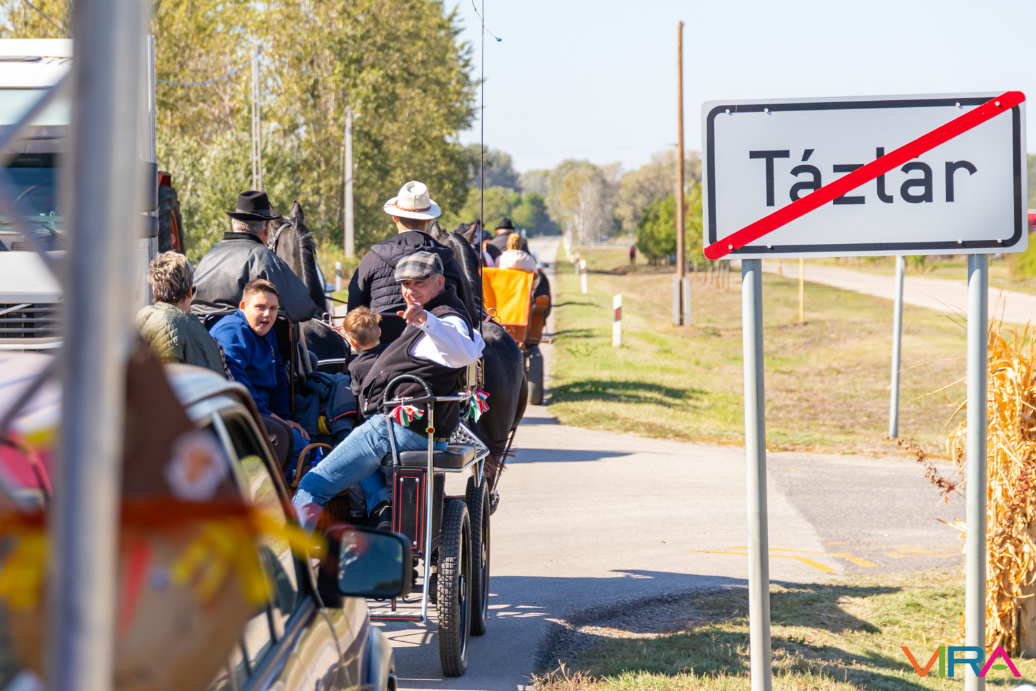 A délutáni menet látványosan kötötte össze Tázlár-Felsőtelepet és Tázlárt, hiszen hosszú sorban haladtak végig a résztvevők. A felsőtázlári indulás után a felvonulás a vásártéren ért véget, ahol újabb kínálással és vidám beszélgetésekkel zárták a napot.