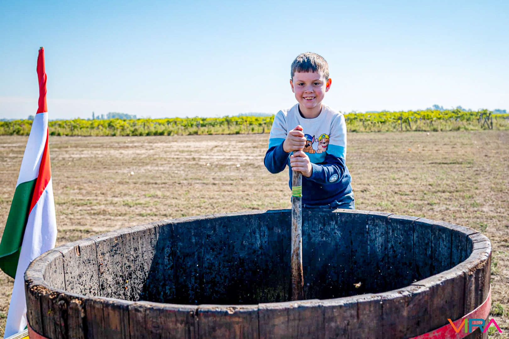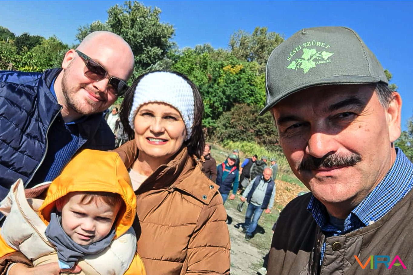 – Egy olyan esemény ez a családnak, ami ritkán adatik meg a mai világban. Hagyományos kéziszüret alkalmával együtt a négy generáció, a teljes család. A Jóisten kegyes hozzánk, gyönyörű időjárást kaptunk a mai napra. Minden korosztály jól érezheti magát, vannak, akik a régi szüretek hangulatát emlegetik fel, mások nótára zendítenek, a gyerekek élvezik a szabad életet a diófa alatt, taposhatják a szőlőt. Ritka alkalom ma már mindez.