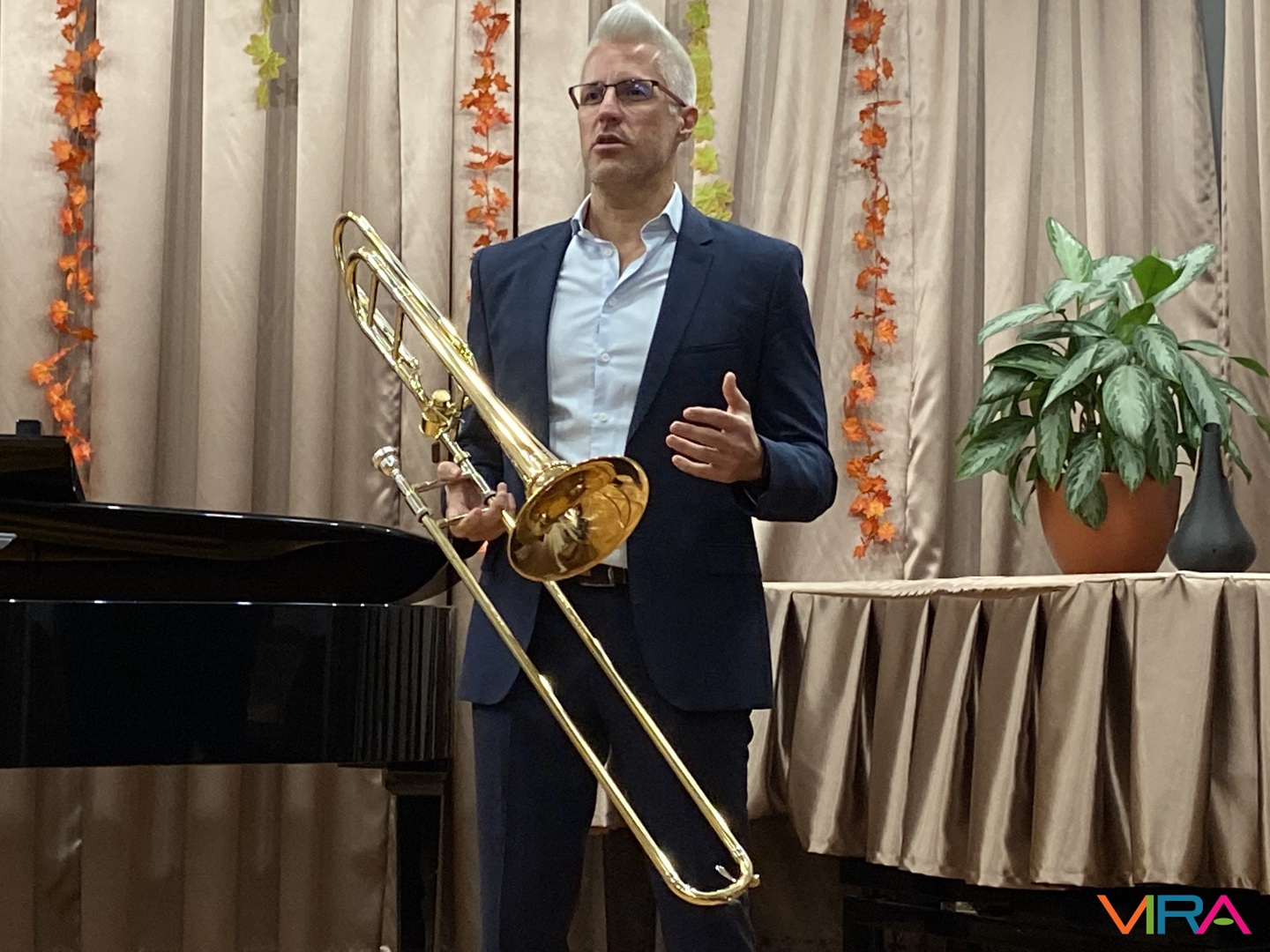 Barokk, modern és magyar kortárs zeneművek csendültek fel 2025. október 10-én, pénteken este 18 órától a Kiskőrösi SZÓ-LA-M Alapfokú Művészeti Iskola hangversenytermében. A Kamarazenei Estek sorozat „A virtuóz harsona” című programjának keretein belül Szokody Anikó zongoraművésznő és Gyivicsán György harsonaművész közös koncertjét hallgathatták meg az érdeklődők.