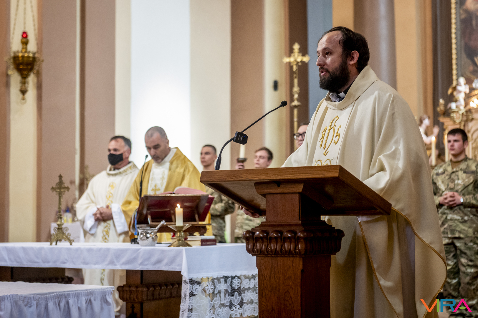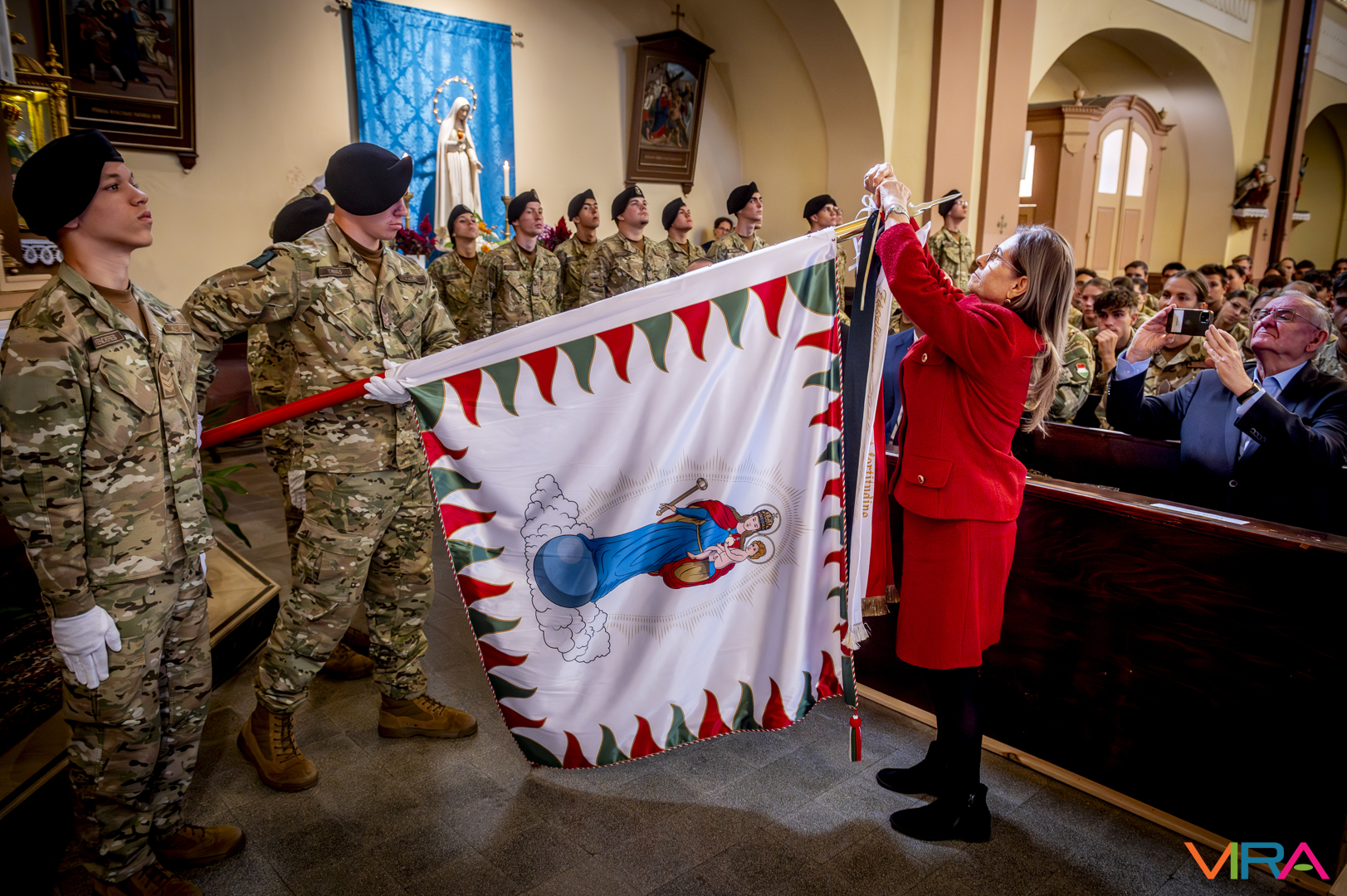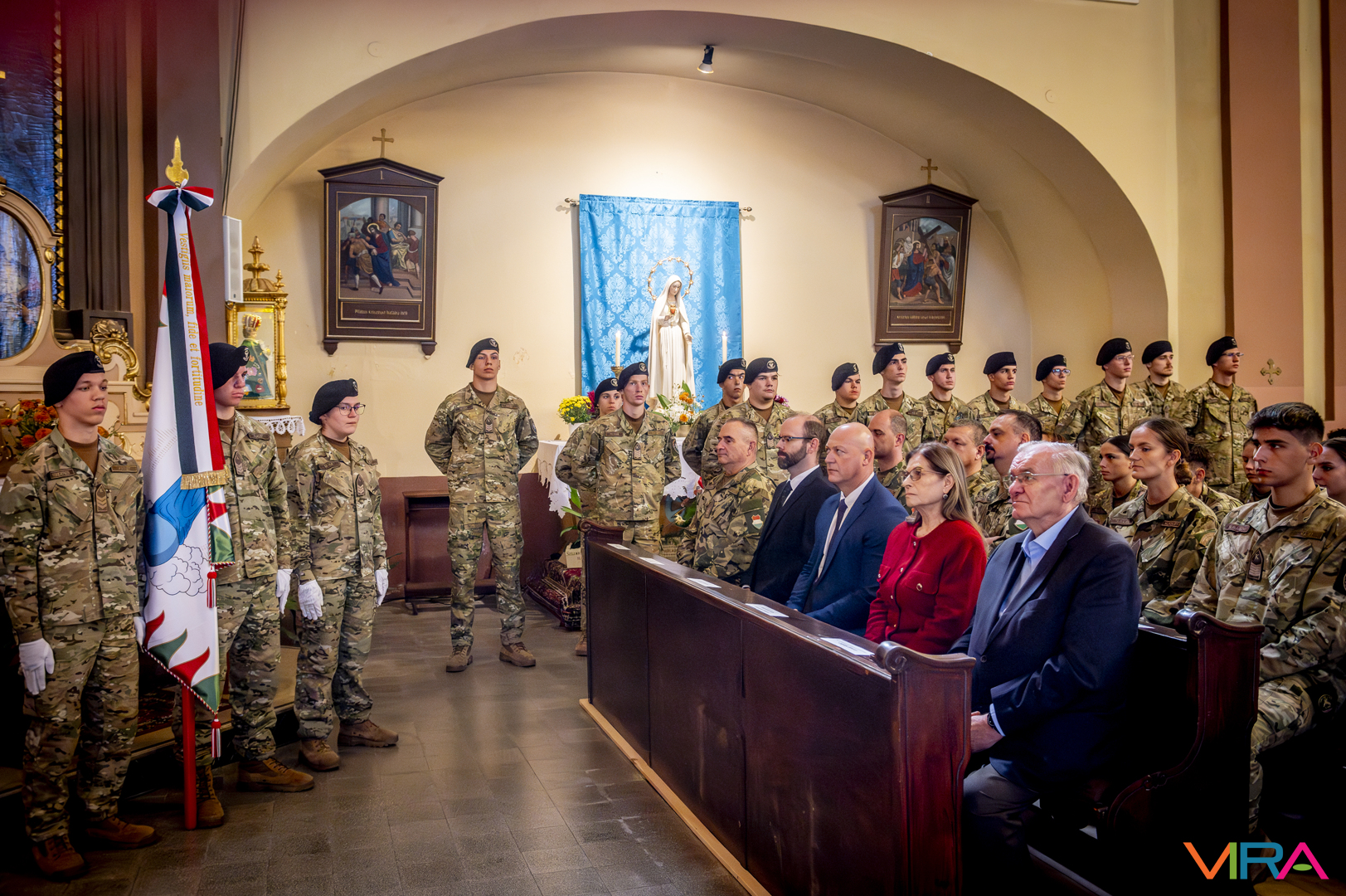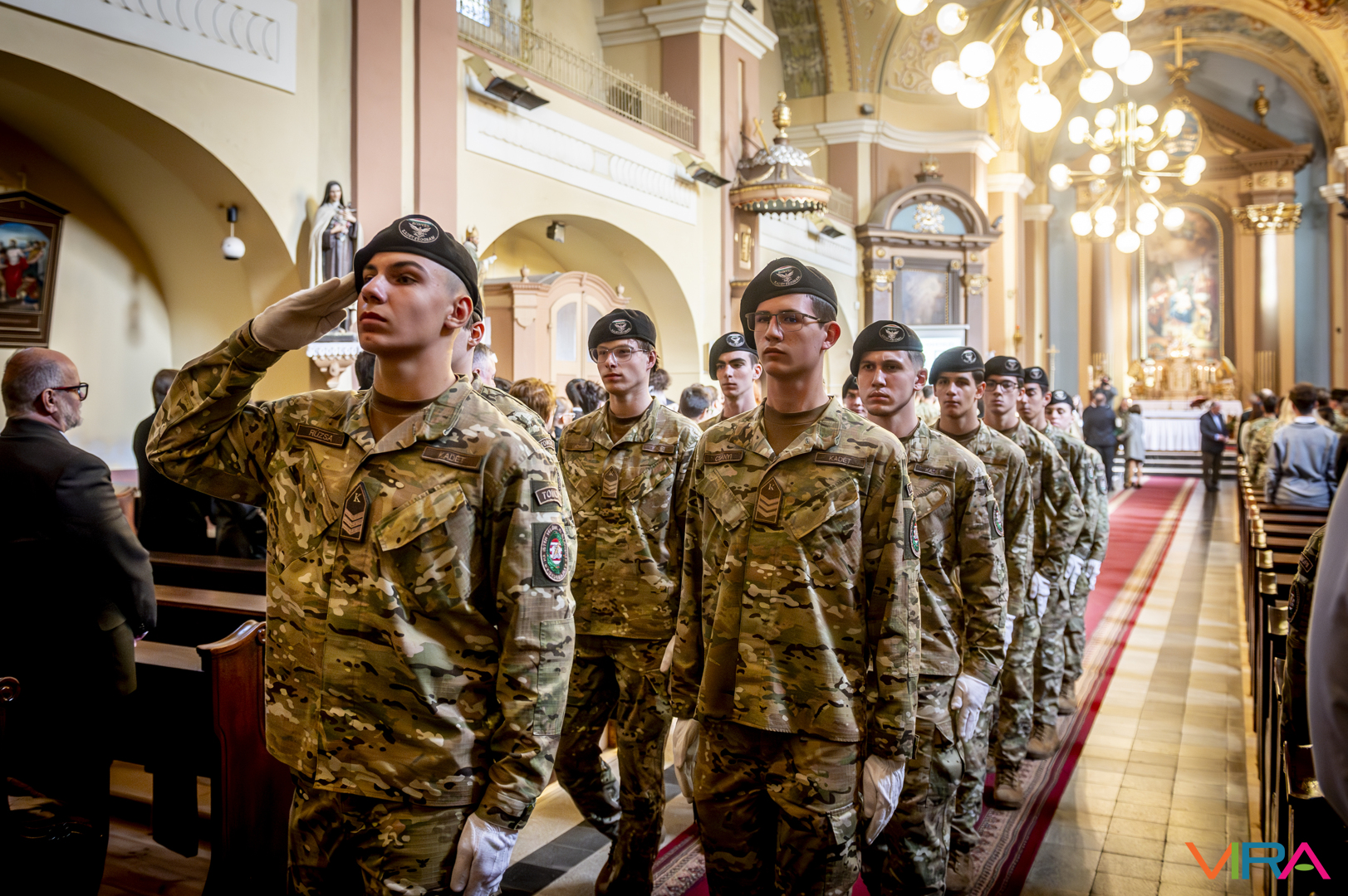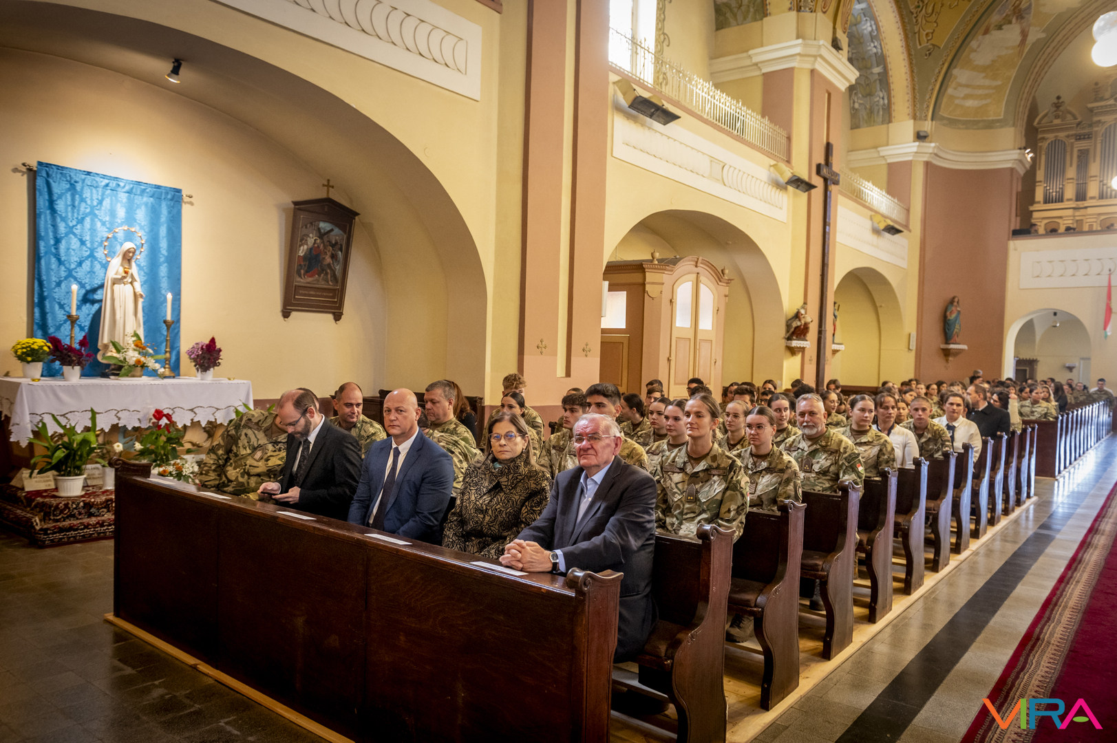 A szentmisét és a zászló megáldását Főtisztelendő Takács Tamás ezredes, a Magyar Katolikus Tábori Lelkészi Kar vezetője celebrálta. Az adományozó beszédet Főtisztelendő Kullai Attila atya mondta el, aki volt iskolalelkészként adományozta a zászlót a kadétoknak. A rendezvényen jelen volt Czifrik Ágnes, a Tomori Pál Katolikus Gimnázium, Technikum és Kollégium főigazgatója, Huszár Ferenc ezredes, a Magyar Honvédség Dombay Miksa 4. Területvédelmi Ezred parancsnoka, valamint Gramantik Zoltán, a Honvédelmi Minisztérium Honvédelmi Oktatási, Kulturális és Tudományszervező Főosztályának osztályvezetője.