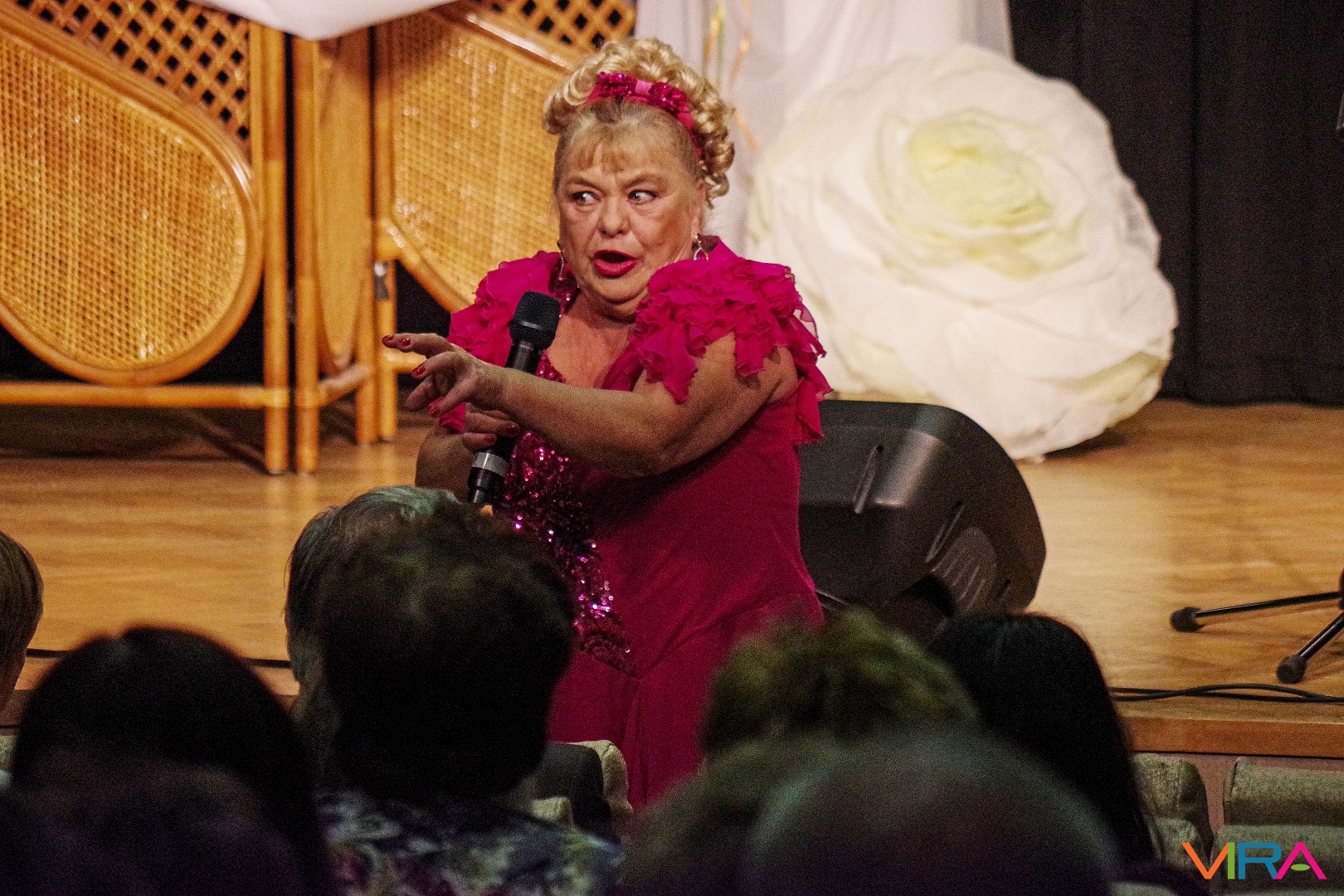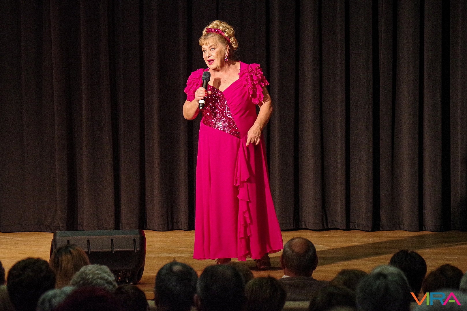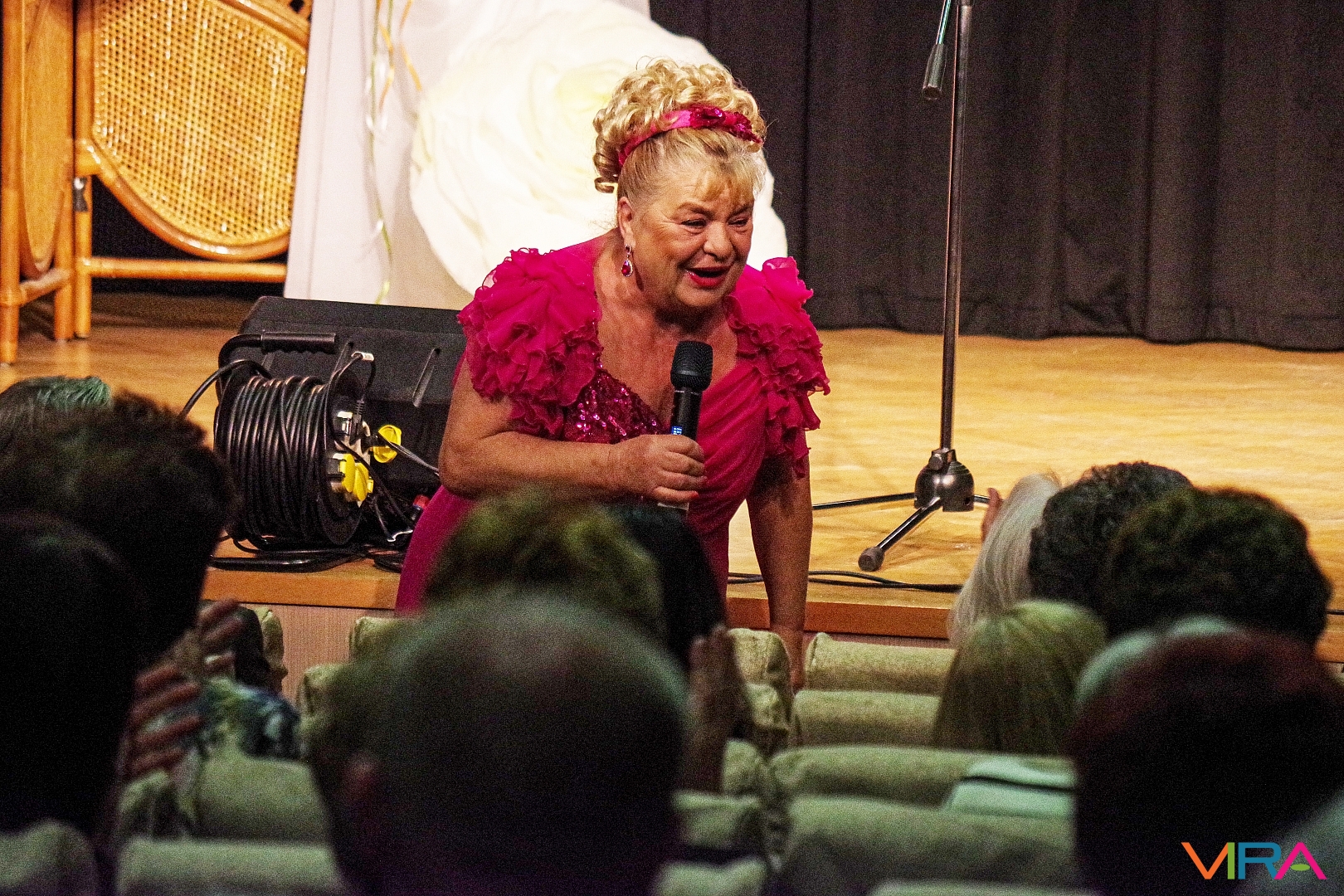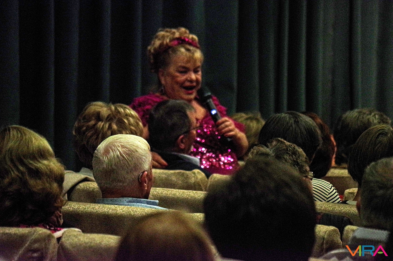 Vidám pillanata volt az estnek, amikor Oszvald Marika lejött a színpadról és a széksorok mellett sétálva énekelt, bevonva a közönséget is.