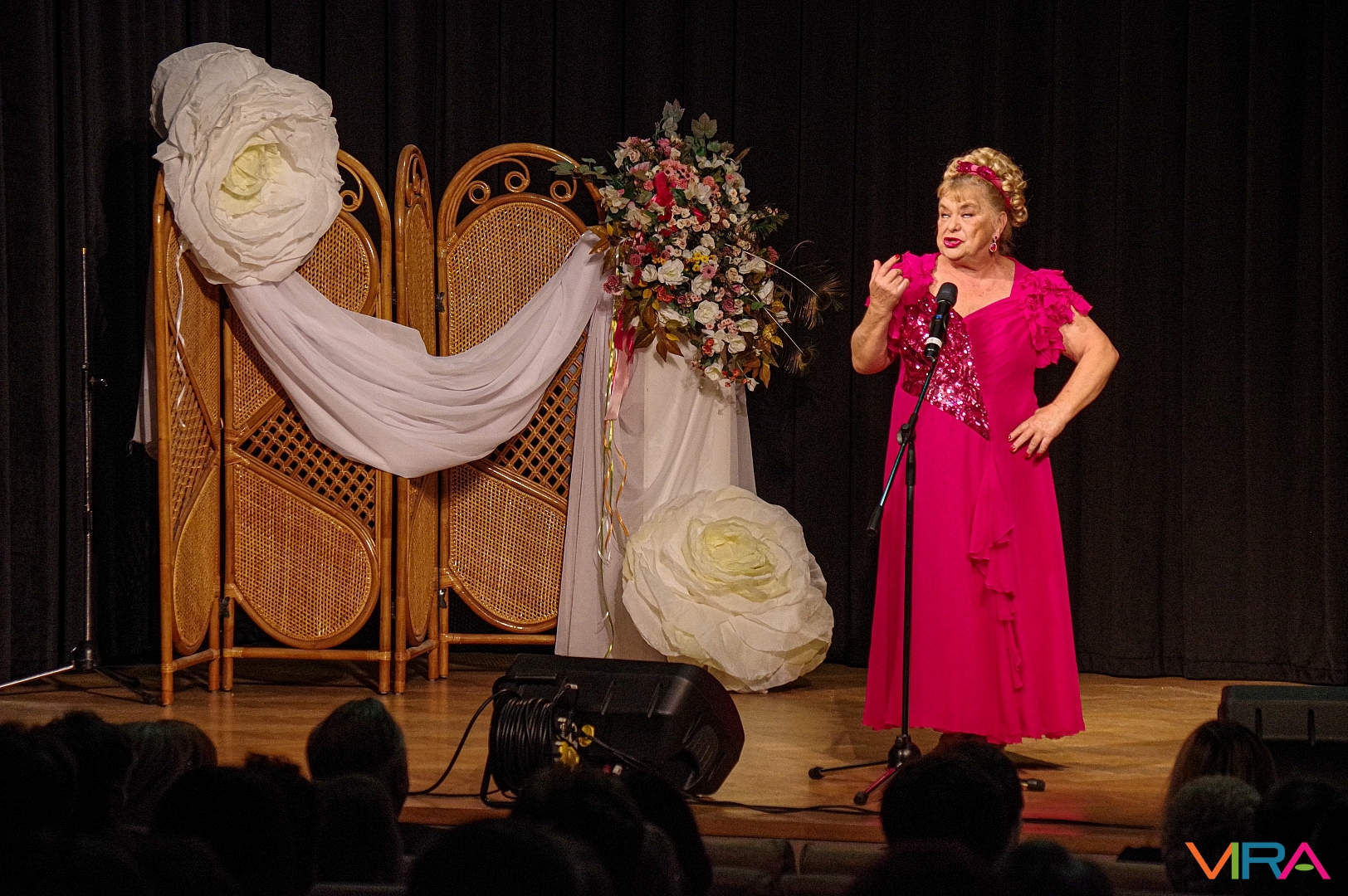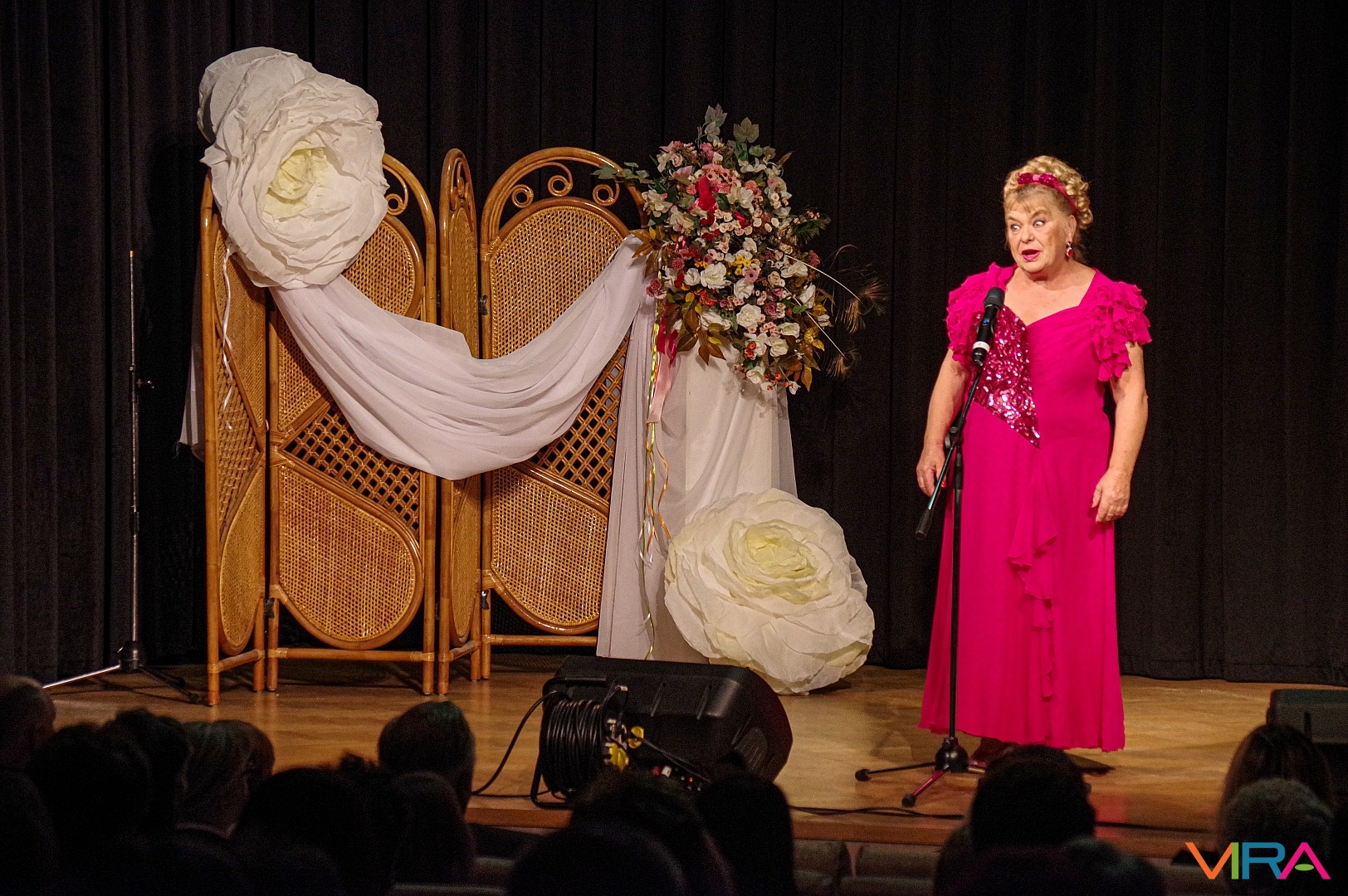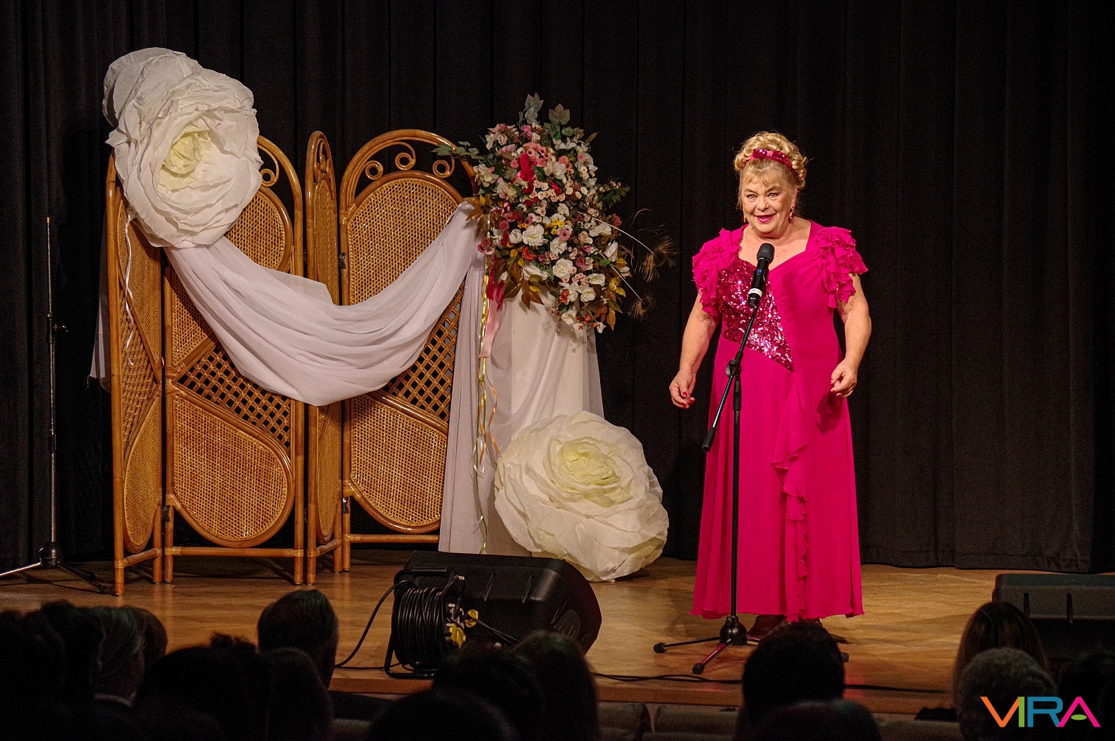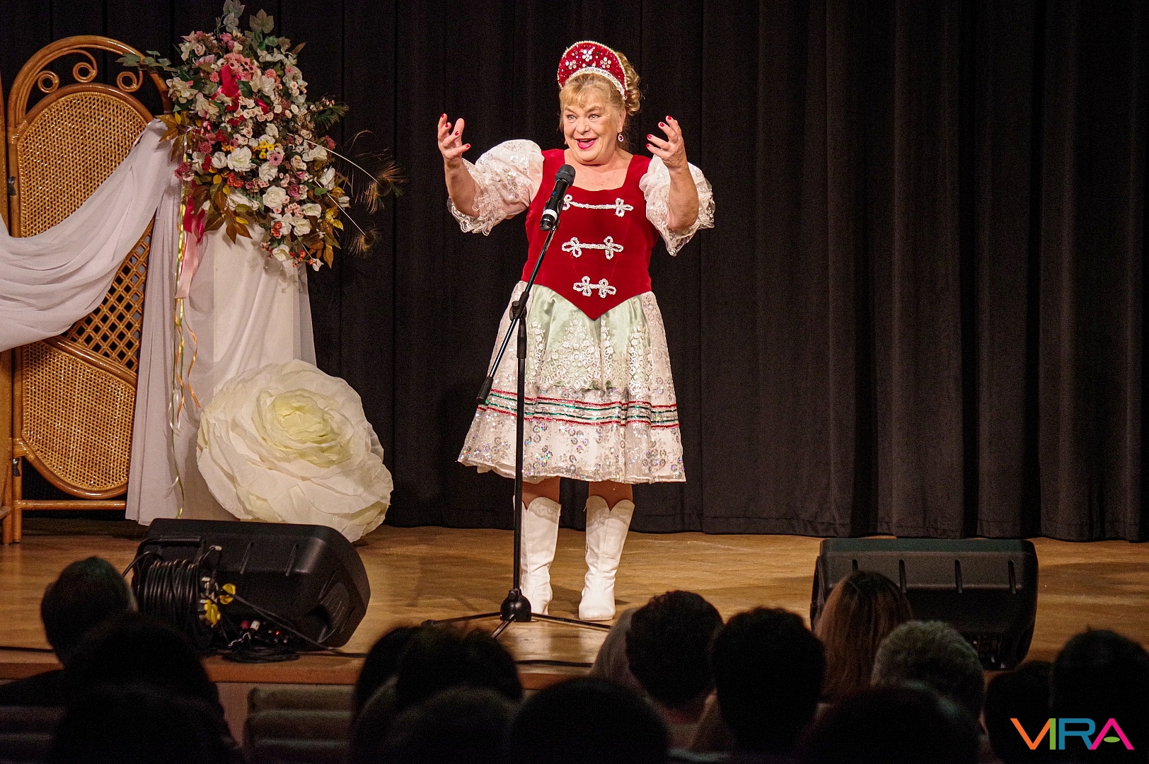 Vidám pillanata volt az estnek, amikor Oszvald Marika lejött a színpadról és a széksorok mellett sétálva énekelt, bevonva a közönséget is.