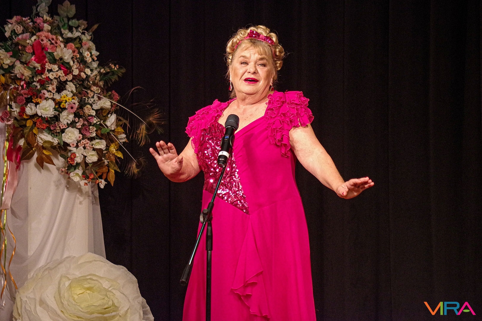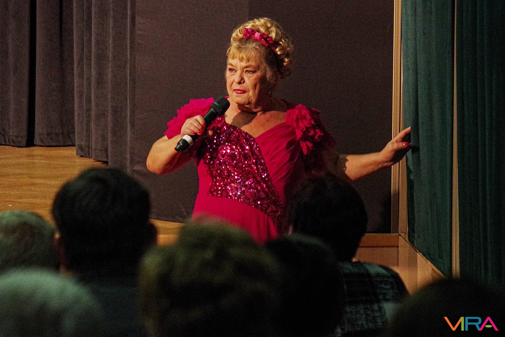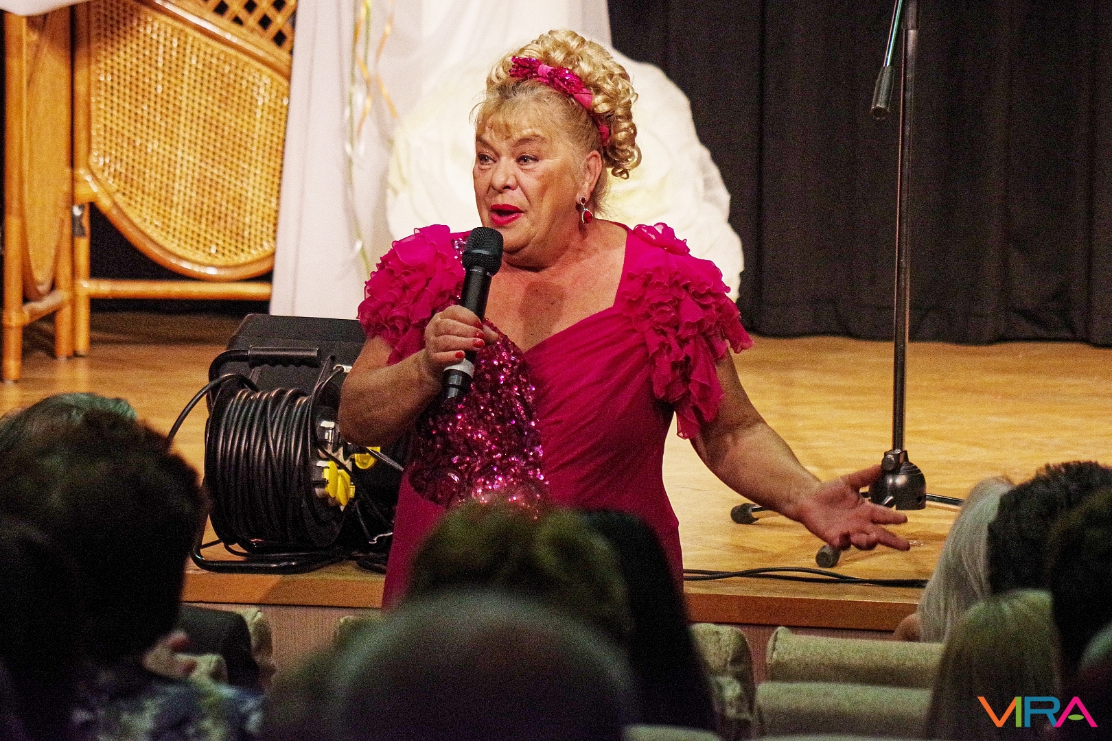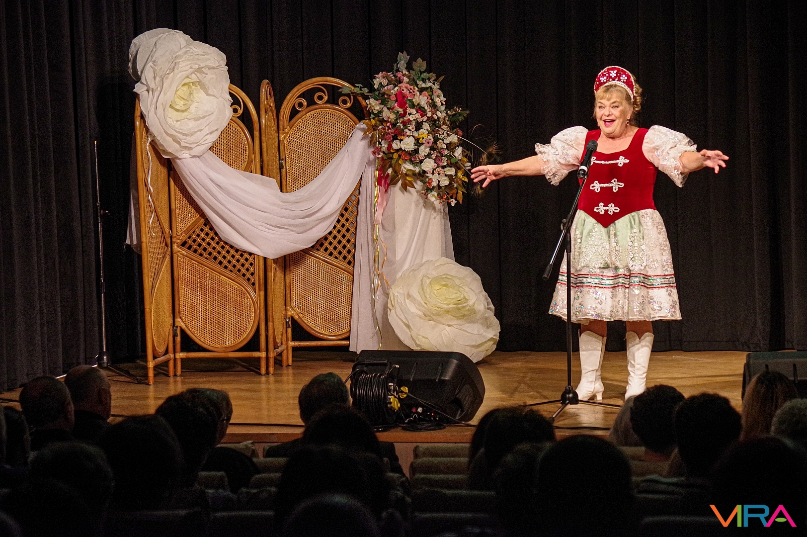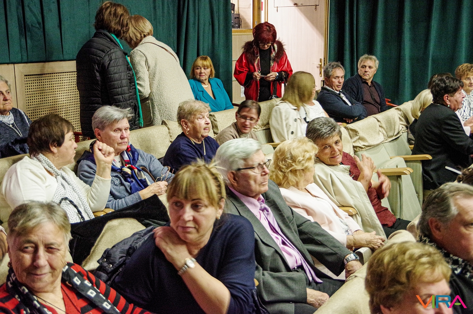 Vidám pillanata volt az estnek, amikor Oszvald Marika lejött a színpadról és a széksorok mellett sétálva énekelt, bevonva a közönséget is.