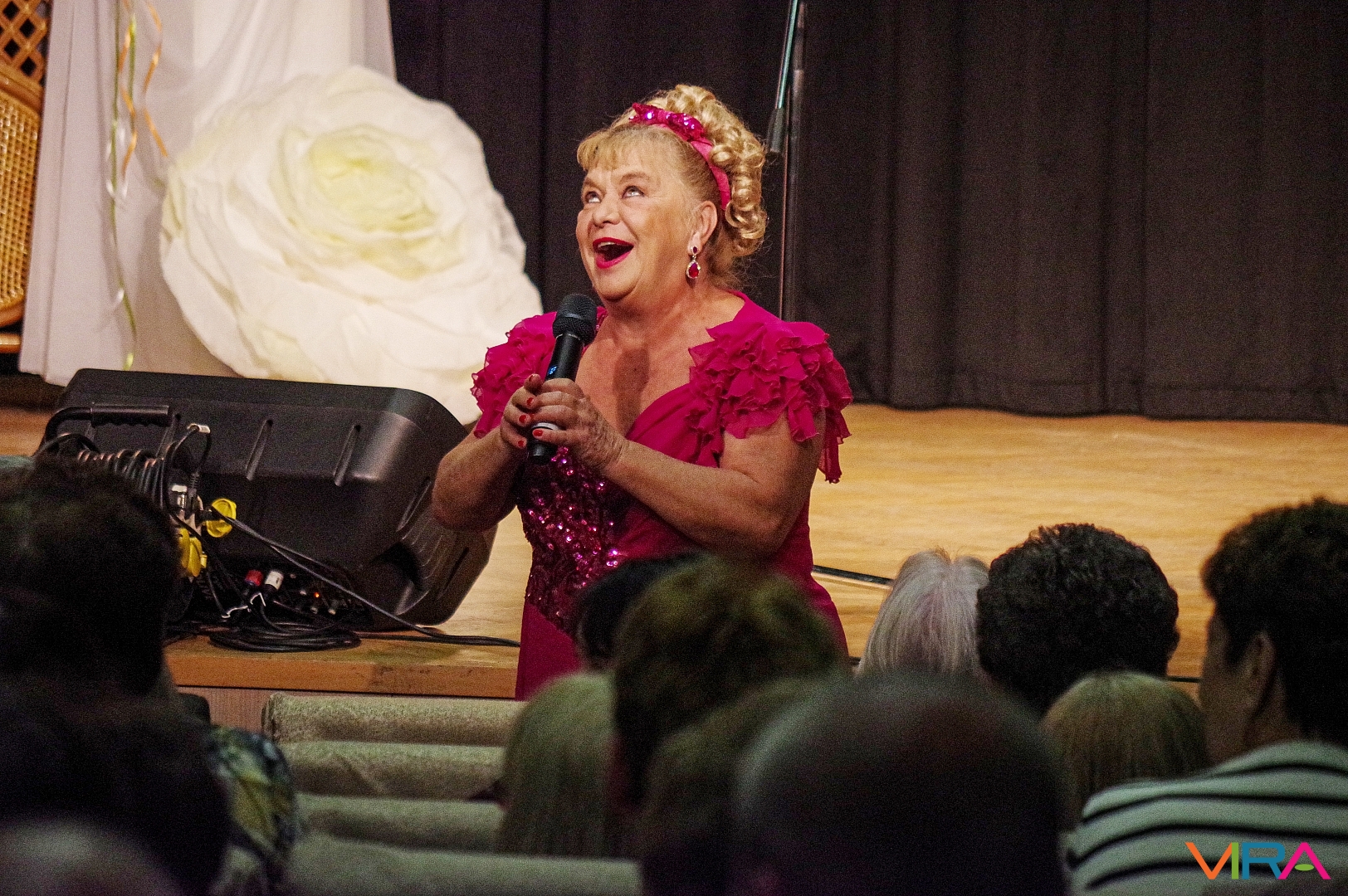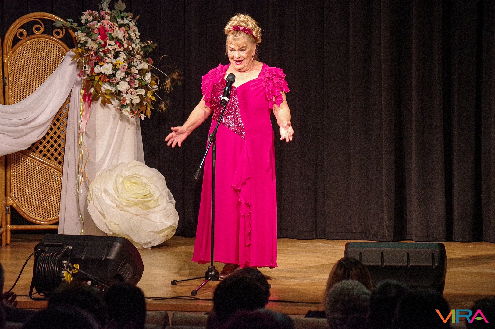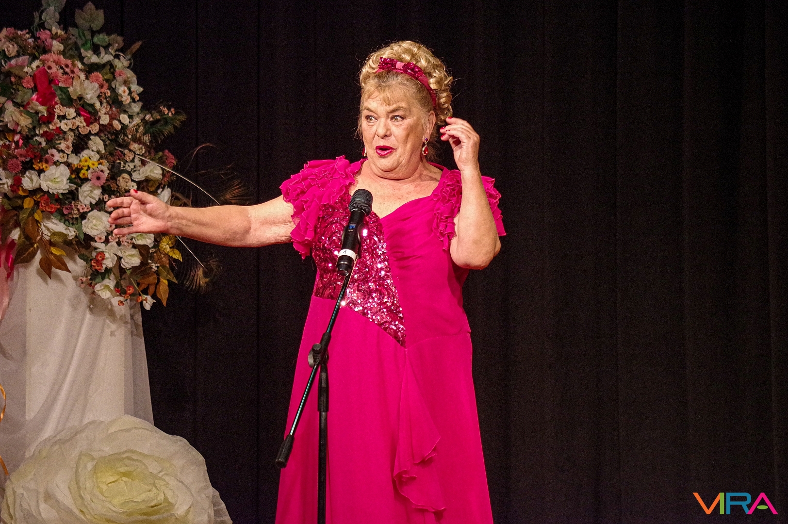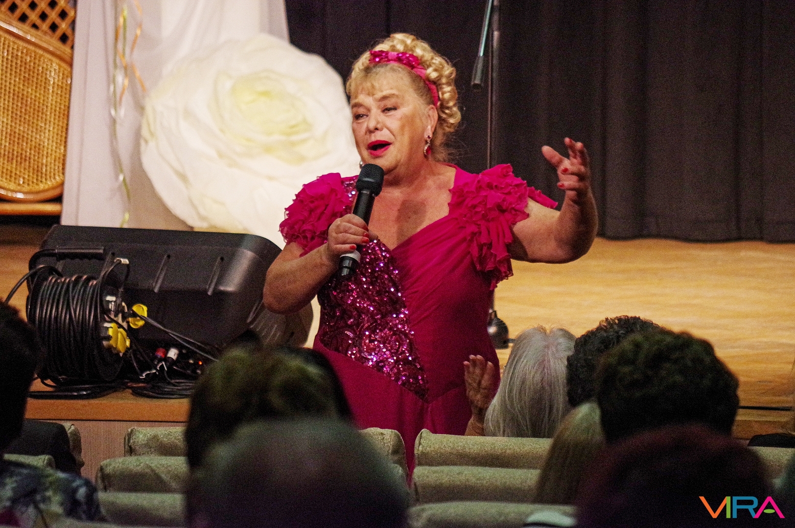Vidám pillanata volt az estnek, amikor Oszvald Marika lejött a színpadról és a széksorok mellett sétálva énekelt, bevonva a közönséget is.