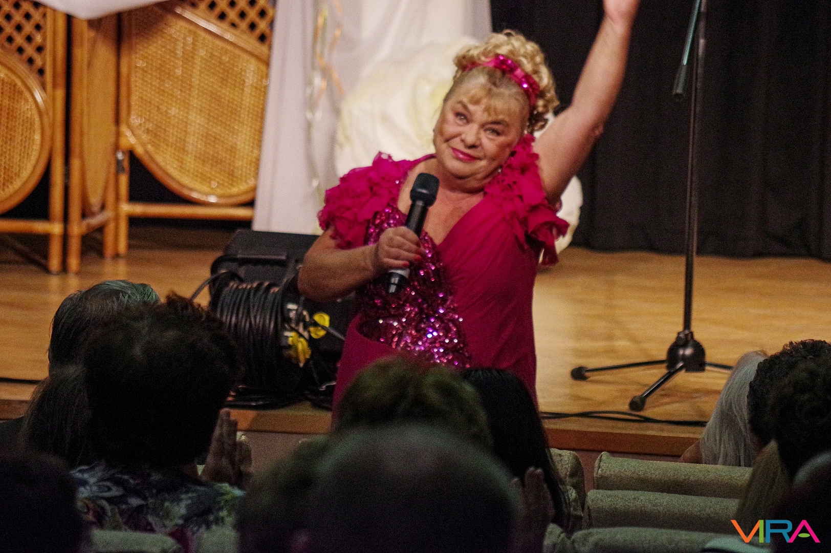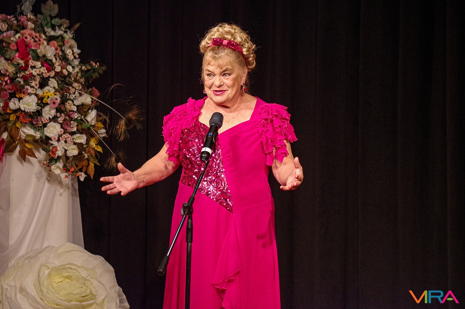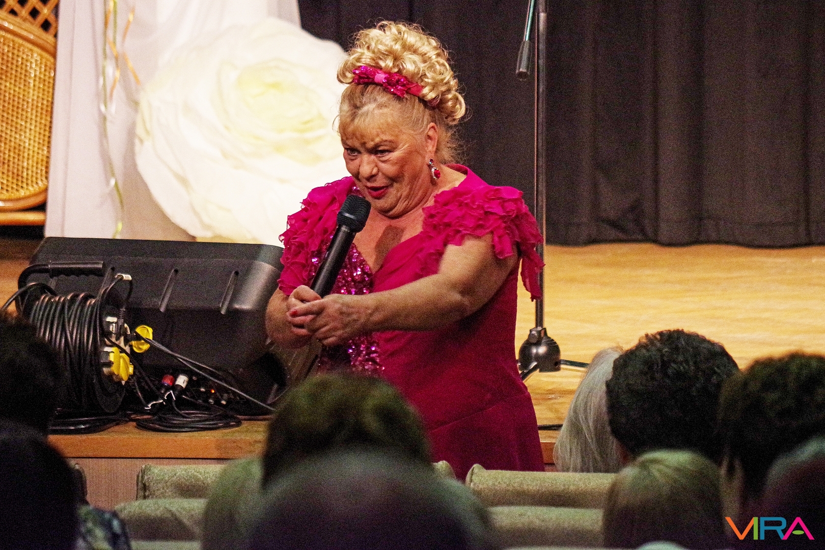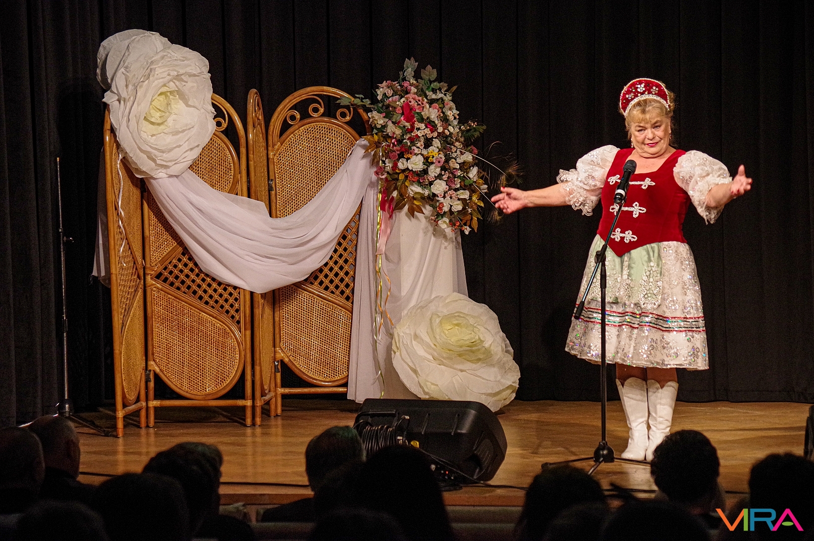Vidám pillanata volt az estnek, amikor Oszvald Marika lejött a színpadról és a széksorok mellett sétálva énekelt, bevonva a közönséget is.
