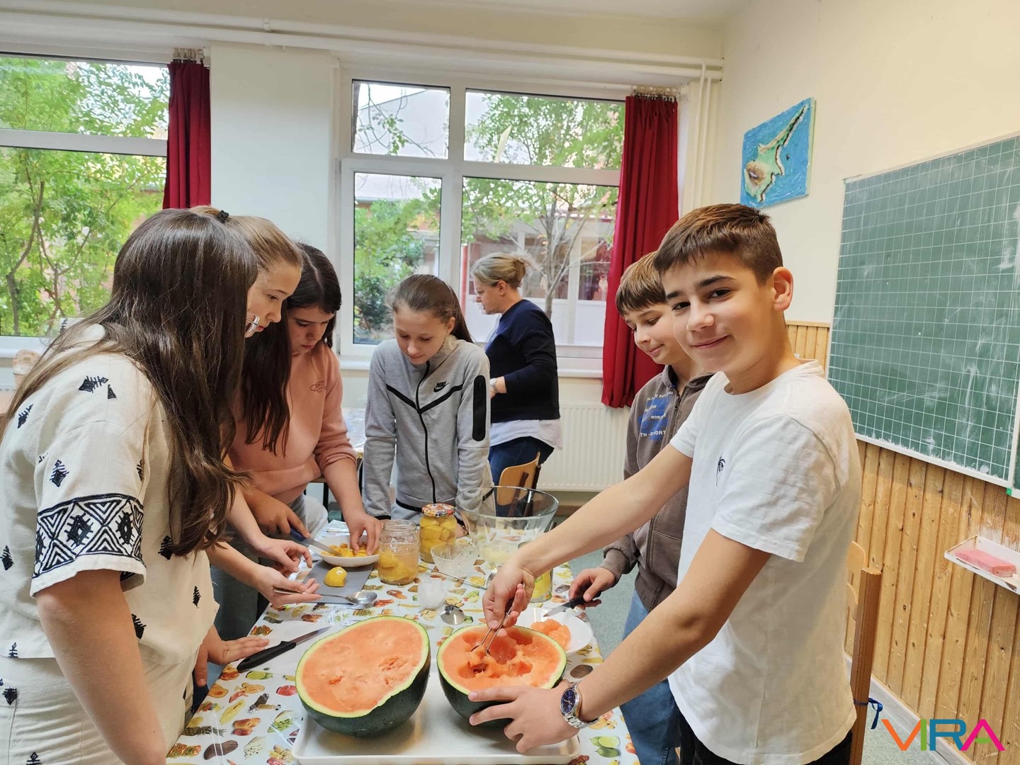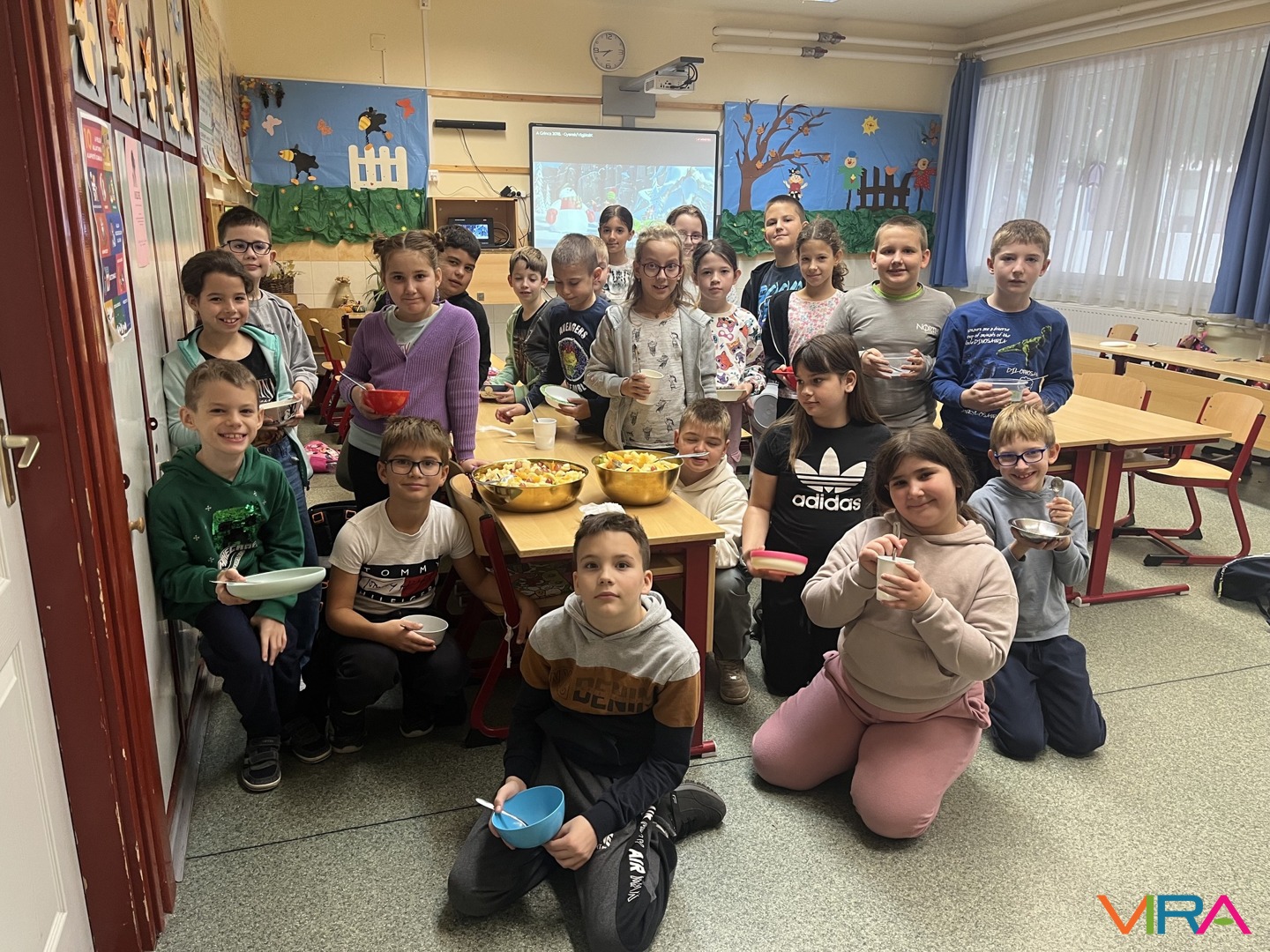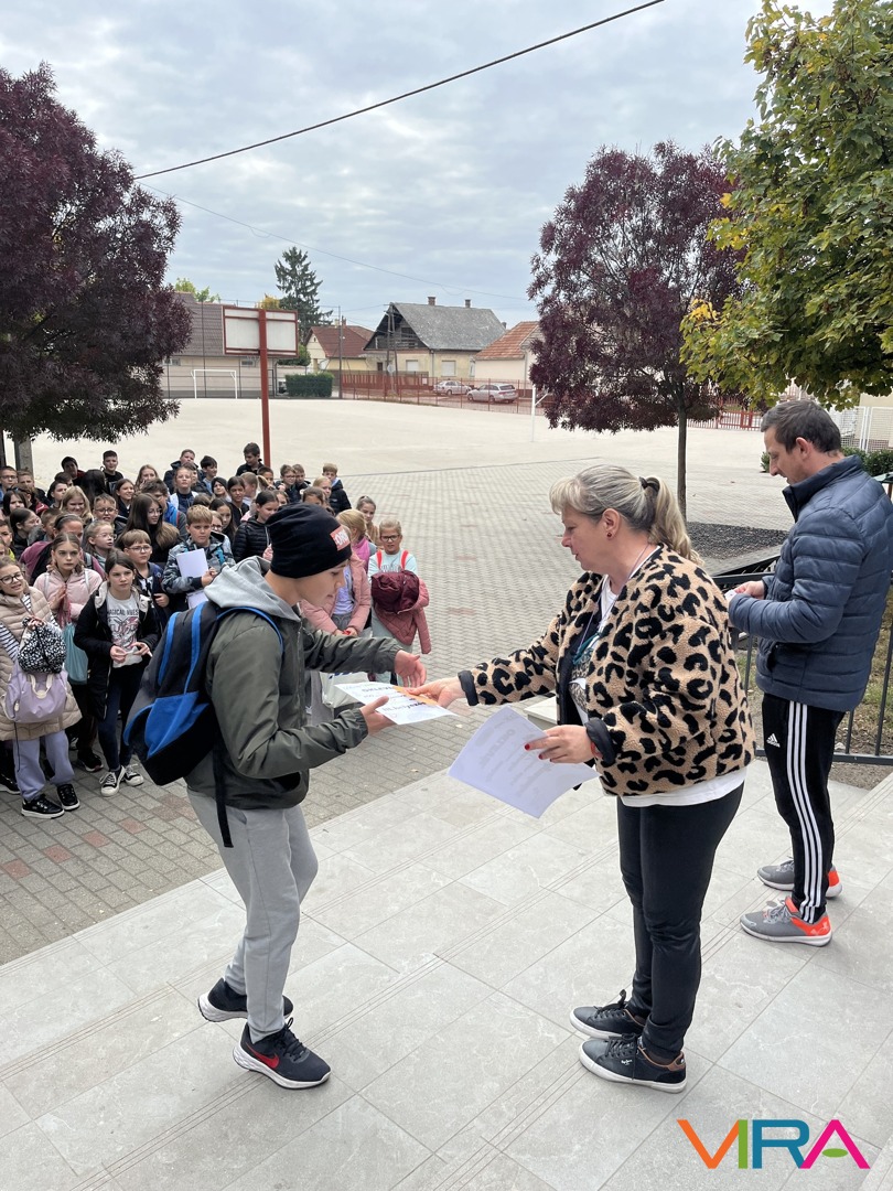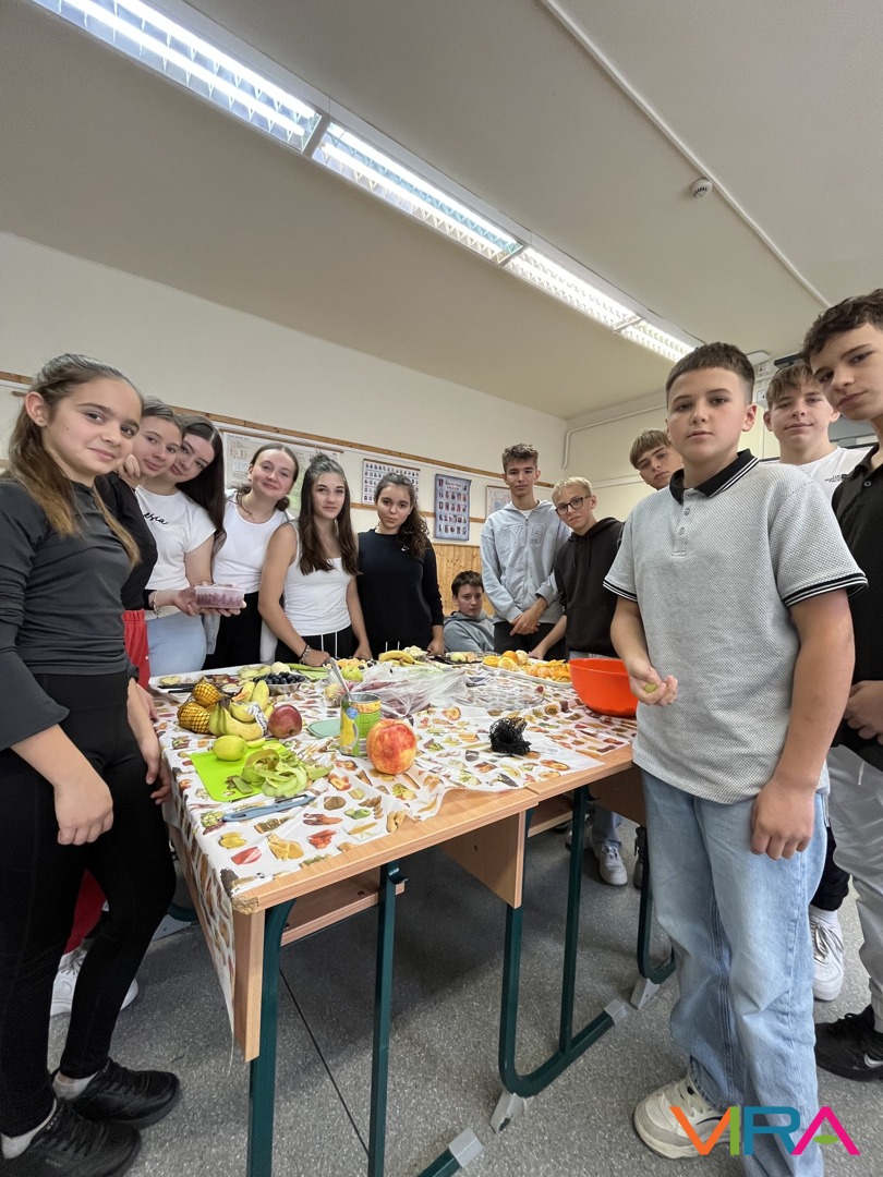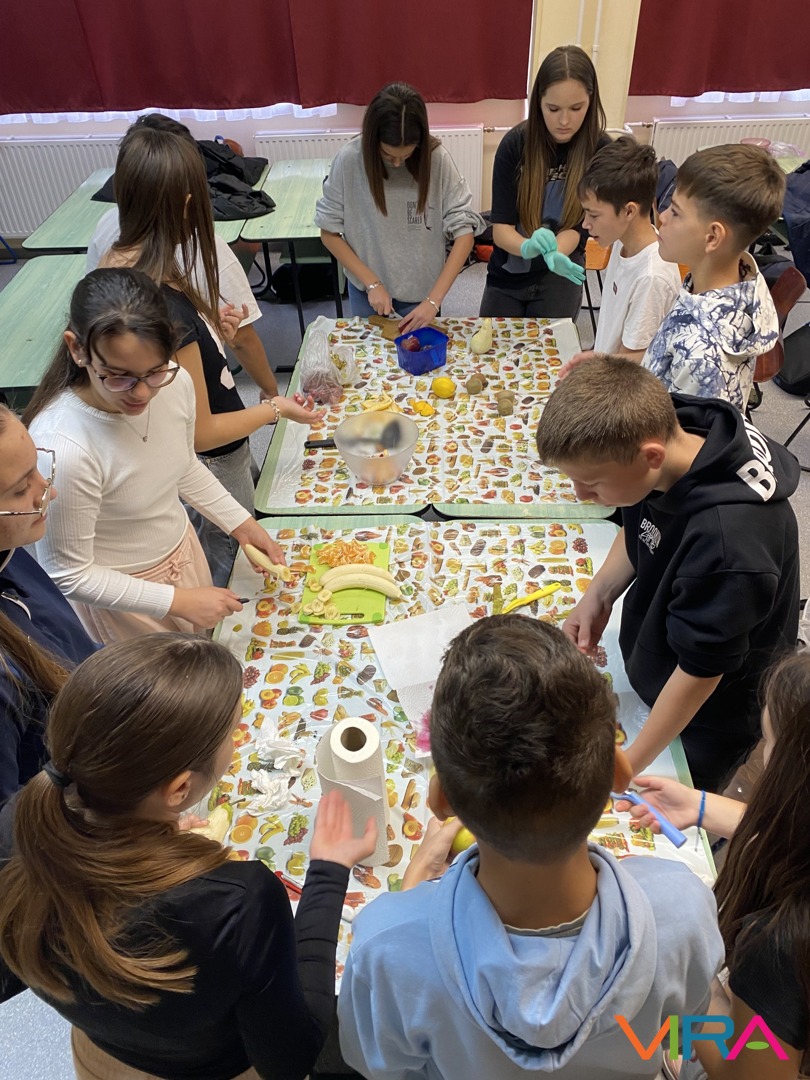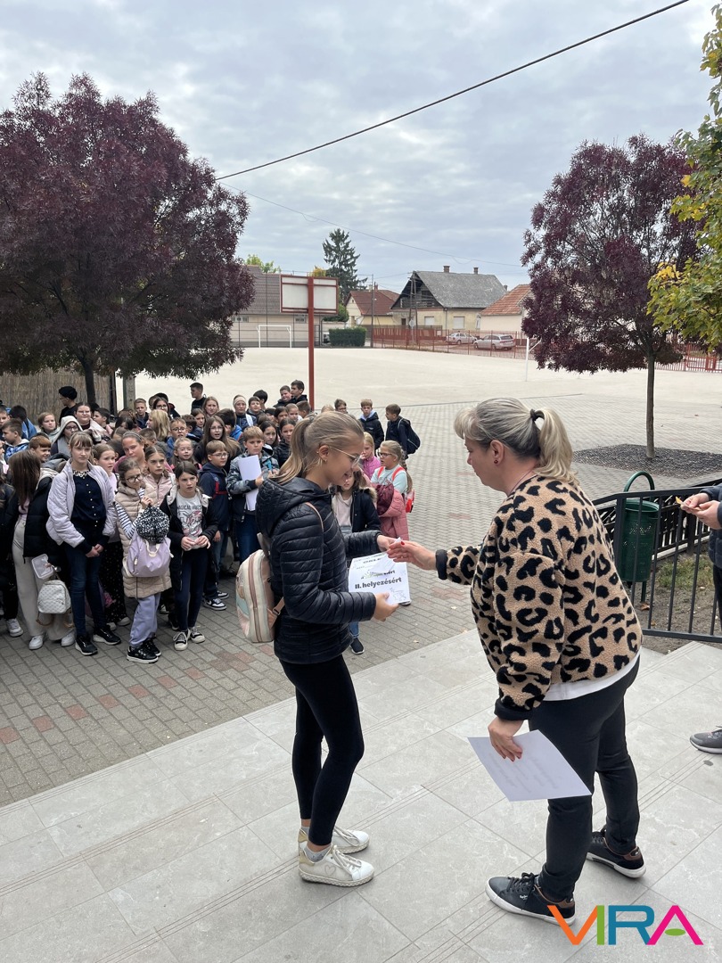A felső tagozatos diákok többállomásos osztályversenyen vettek részt, ahol játékos feladatok, vidám kihívások és közös élmények várták őket. A nevetés, a találékonyság és az összefogás végigkísérte a napot, mely egy közösen elkészített gyümölcssaláta elfogyasztásával zárult.