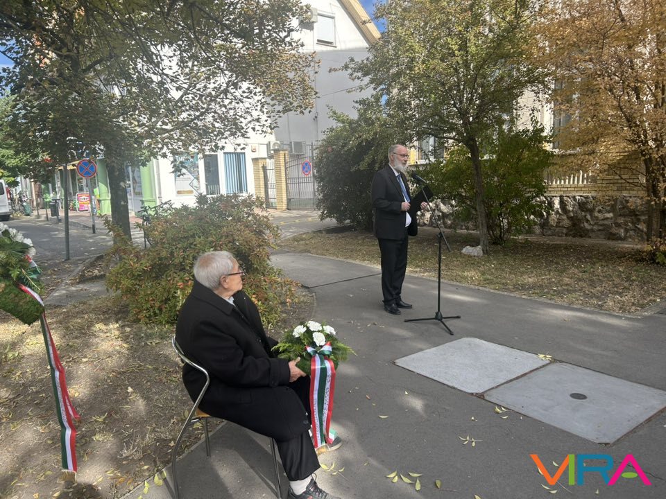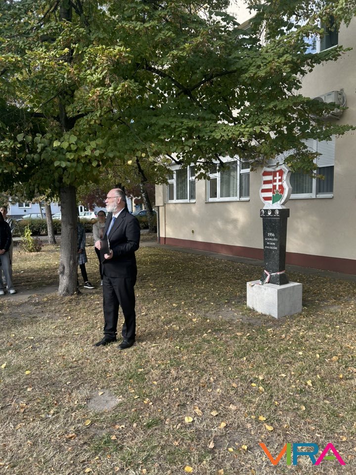 Ezután átvonultak a Suba György által adományozott emlékműhöz, ahol Fodor Tamás emlékezett a forradalom diákáldozataira, majd itt is elhelyezték az emlékezés virágait.