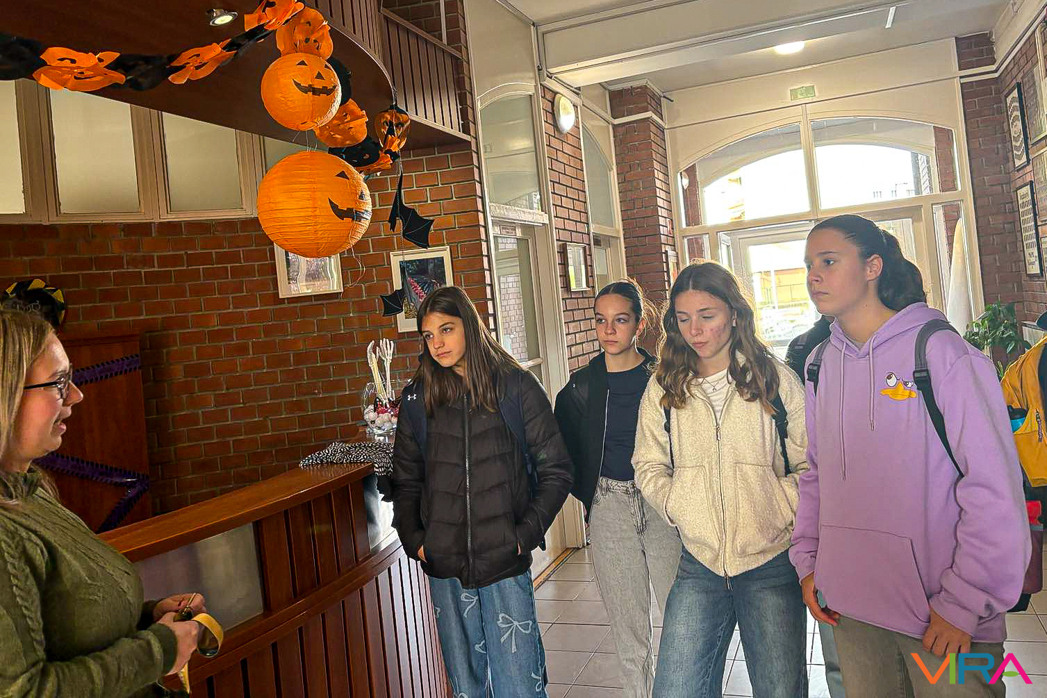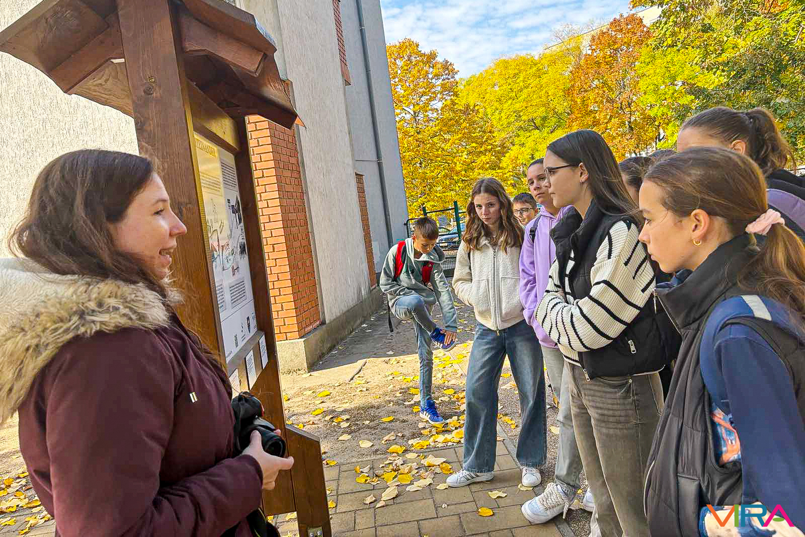 A KEVI tanulói közül az angol nyelvet tanulók Fodorné Faragó Krisztina osztályfőnök vezetésével megtekintették Baja városközpontját és nevezetességeit. Az iskola német nyelvet tanuló diákjai Tüske Bernadett vezetésével az MNÁMK mindennapjaiban nyerhettek betekintést.
