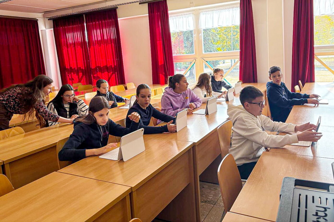 A program során a vendégeket az MNÁMK tanárai és diákjai nagy szeretettel fogadták. A nap közös ismerkedő játékkal kezdődött, majd a kiskőrösi gyerekek bejárhatták az iskola modern épületét, tantermeit és sportlétesítményeit. A diákok különösen érdeklődve hallgatták a bemutatót az intézmény kétnyelvű oktatásáról, valamint azokról a nemzetközi kapcsolatokról, amelyek révén az MNÁMK tanulói rendszeresen vehetnek részt cserediák-programokon Németországban.