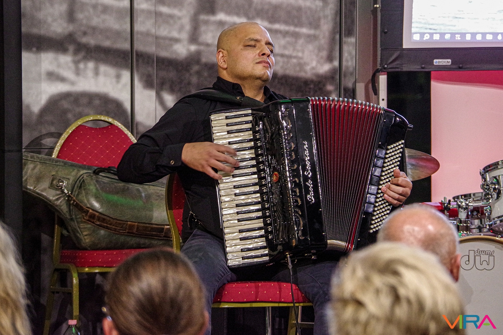 A vendég fellépőről Balogh Józsefről tudni kell, hogy néhány évvel ezelőtt Szürkeverebek Jazzbandája egyik tagja, Baranyai János hallotta őt Kiskunhalason fellépni és ezt követően döntöttek úgy, hogy amint alkalom lesz rá, akkor elhívják Kiskőrösre is. Az előadónak van kötődése is a térséghez, hiszen a közeli Szakmár településén nevelkedett és élt. Zenét tanult és már fiatal korában elkezdett harmonikával foglalkozni. Elmondása szerint nyolc éves lehetett, amikor megkapta élete első hangszerét. A zenei szakma virtuóz előadóművészként jellemzi, aki egyetlen hangszeren, egyéni előadásmóddal képes nagy hatást elérni – ezt Kiskőrösön is bemutatta.