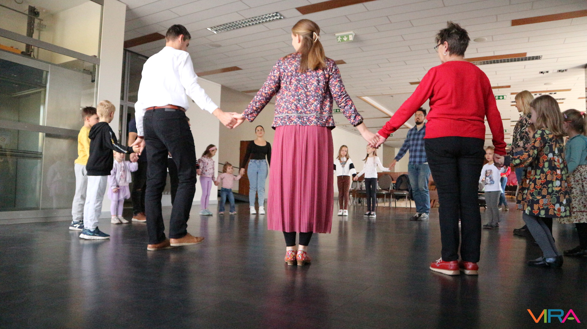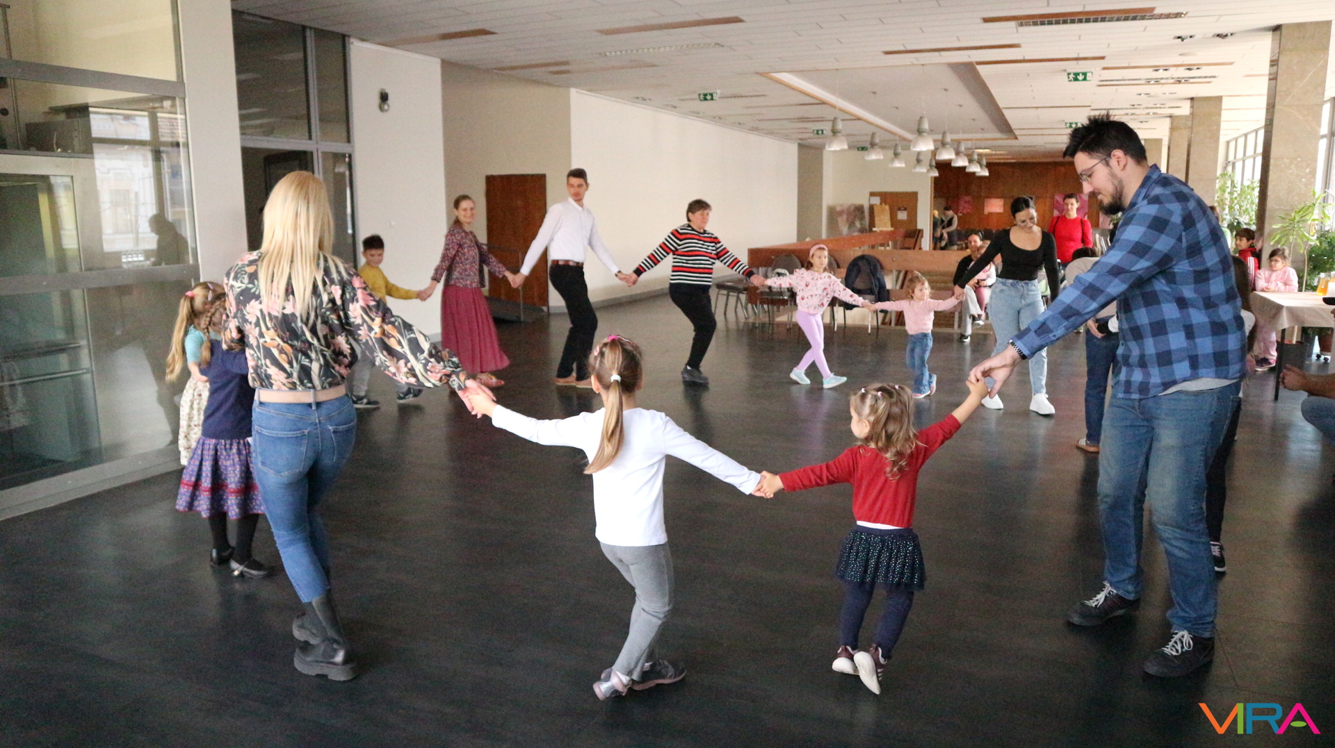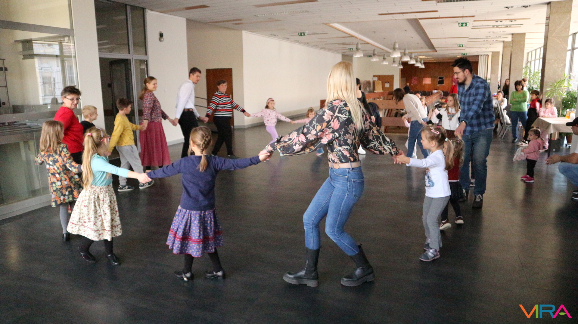 Az első program 10 órától kezdődött, az „Aprók tánca”, amit Bőtös Barnabás és Bőtös-Kürtösi Lilla tartott. A vidám táncos foglalkozás a legkisebbeket és szüleiket is aktívan bevonta a közös élménybe. A jókedvű résztvevők Polgári és Dunántúli ugrós táncokat jártak. A hangulatot egy tréfás játék tette még vidámabbá: a zene megállásakor mindenkinek új párt kellett keresnie, és aki egyedül maradt, annak egy söprűvel kellett tovább táncolnia a táncparketten. A program végén a gyerekek és szüleik egy táncos vonattal indultak útnak, egyenesen Meseország felé.