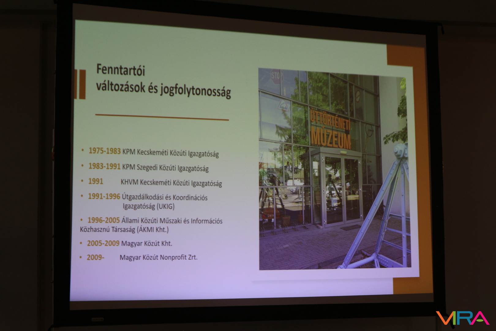 A délelőtti program a kávészünetet követően egy imázsfilm levetítésével folytatódott, majd a „Magyar Műszaki és Közlekedési Múzeum és a kiskőrösi Úttörténeti Múzeum kapcsolatáról” mesélt Domonkos Csaba, Ipari Örökség Főosztályvezető, MMKM.