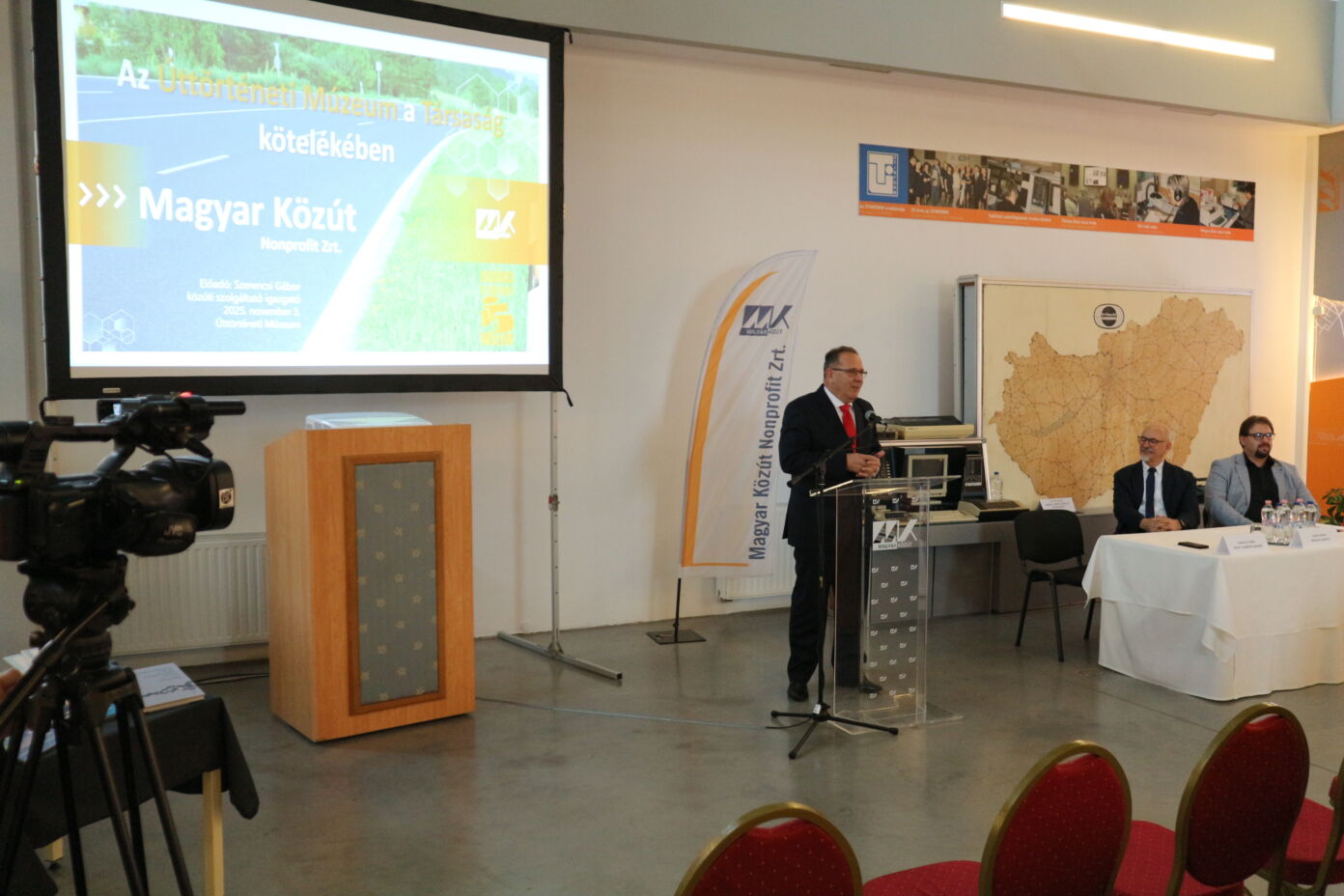A délelőtti programot közös ebéd zárta, amely lehetőséget adott a személyes találkozásokra, szakmai eszmecserére és a jubileum közös megünneplésére. Méltó módon emlékeztek meg az Úttörténeti Múzeum fél évszázados munkájáról, amely 1975 óta gyűjti, őrzi és mutatja be a magyar közlekedés- és úttörténet kincseit.