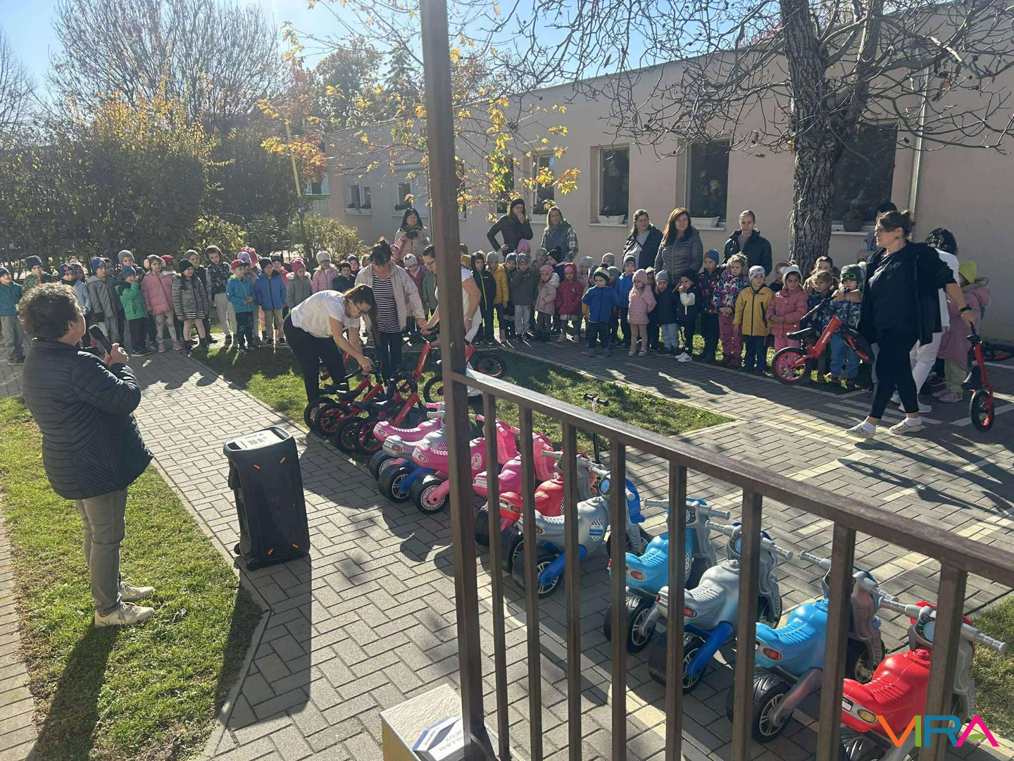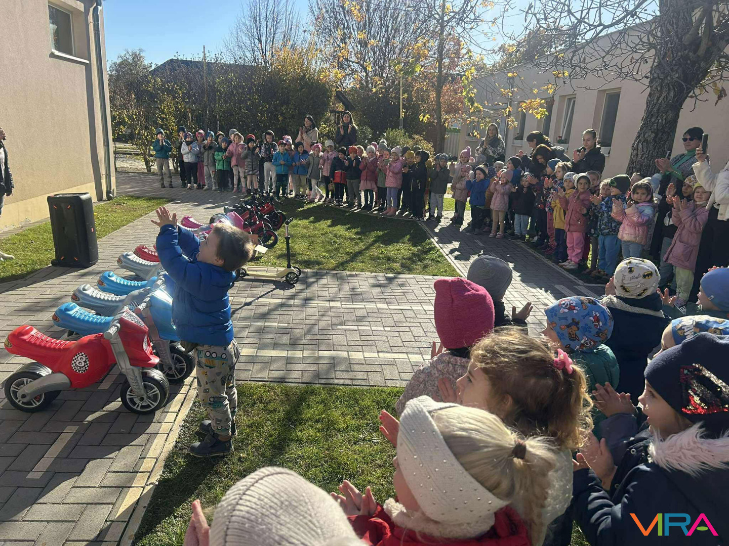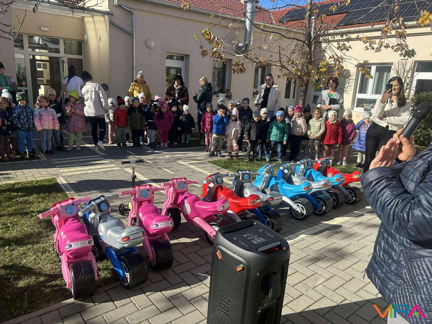 Az új futóbiciklik, motorok és rollerek a kis ovisok mindennapjait teszik még színesebbé és mozgalmasabbá. Az eszközöket helyi üzletből, jelentős árengedménnyel sikerült beszerezni, amiért az óvoda nagyon hálás. A játékok november 4-én kerültek átadásra, amikor a gyerekek birtokba vehették az új eszközöket. Ezek nem csak a mozgásfejlesztésüket szolgálják, hanem a közösségi élményeket is erősítik.