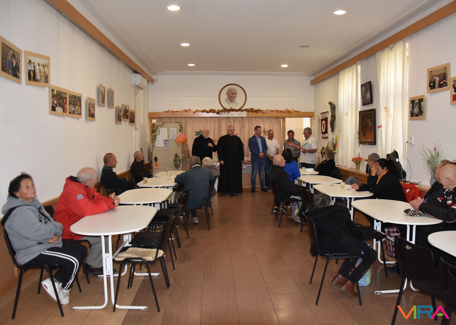 A szeretetvendégségre idén november 6-án került sor, melynek alkalmával száztíz adag csirkepörkölt rotyogott a Wojtyla Ház udvari bográcsában.