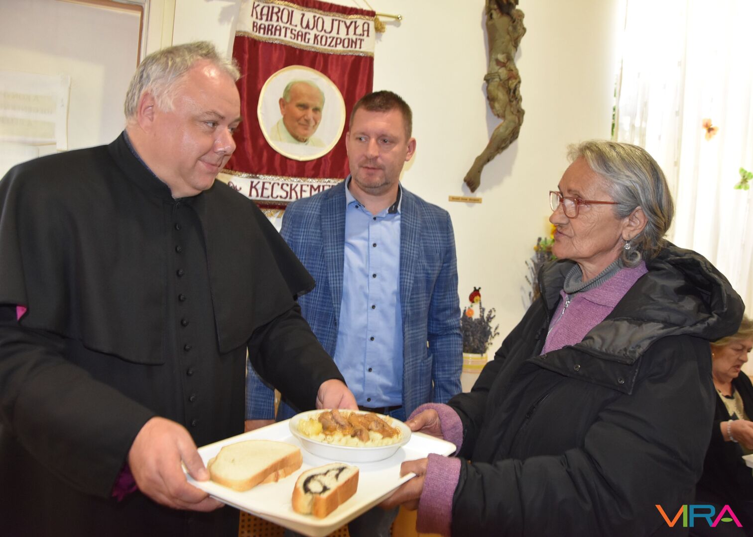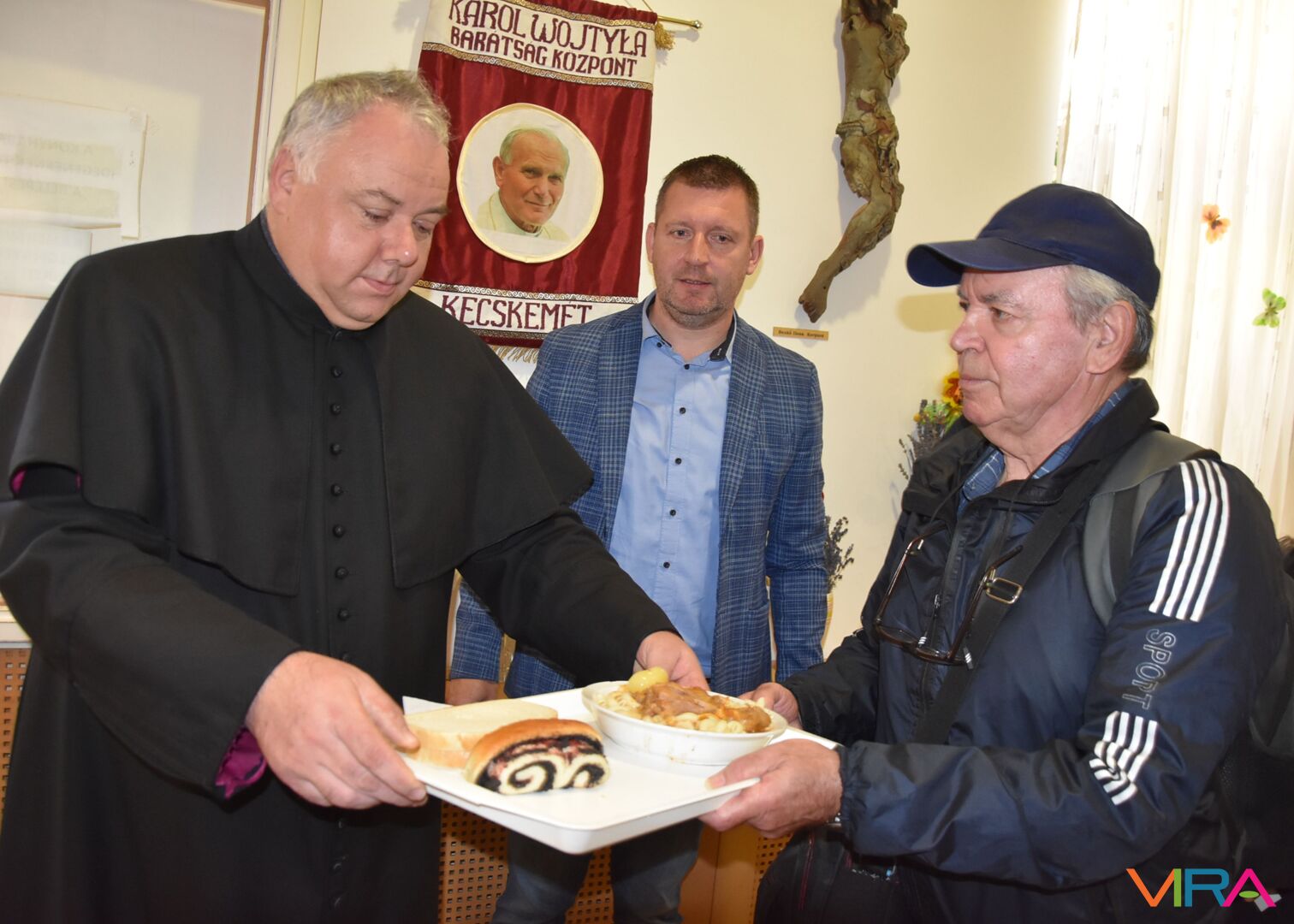 A keceli II. János Pál Katolikus Általános Iskola és Óvoda küldöttsége egy-egy tányér meleg étellel juttatta kifejezésre a tanintézet pedagógusainak és diákságának gondoskodó szeretetét csütörtökön a kecskeméti Wojtyla Barátság Központ népkonyháján.