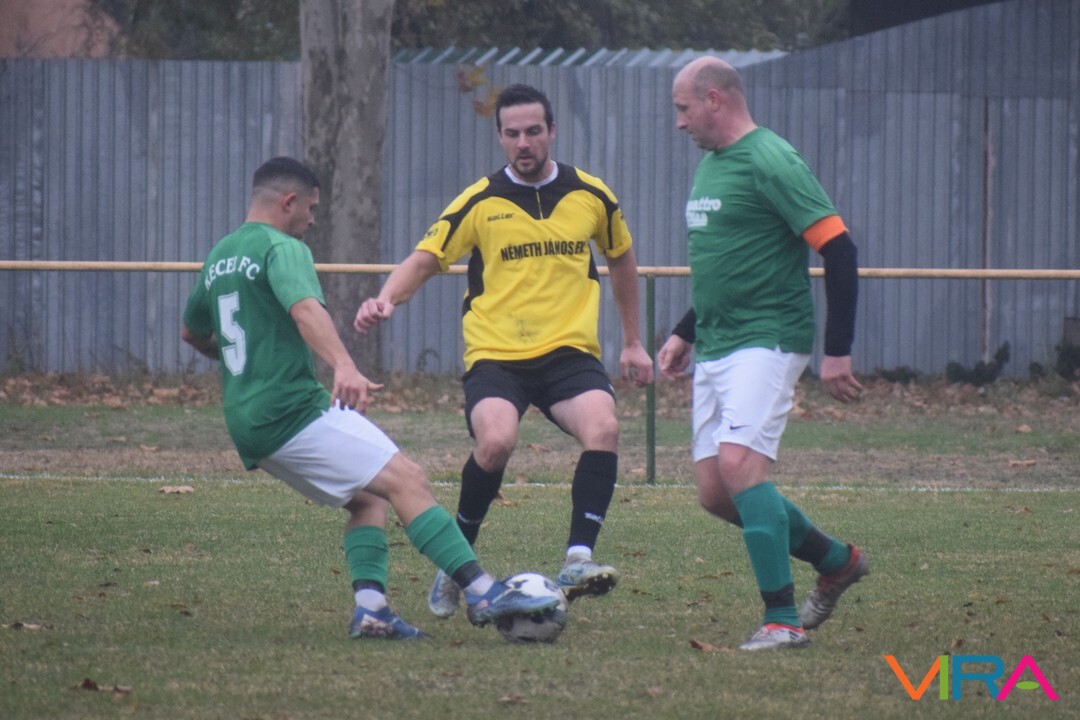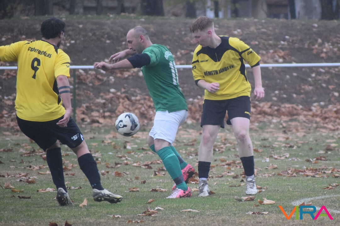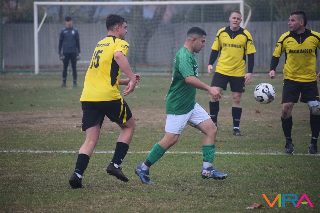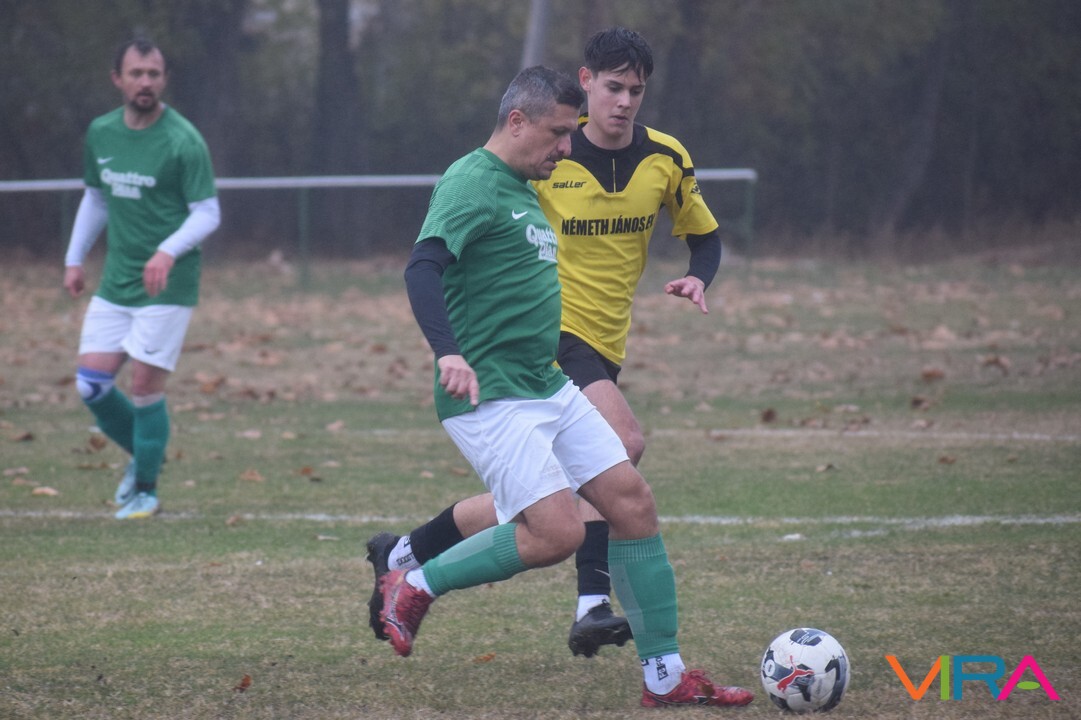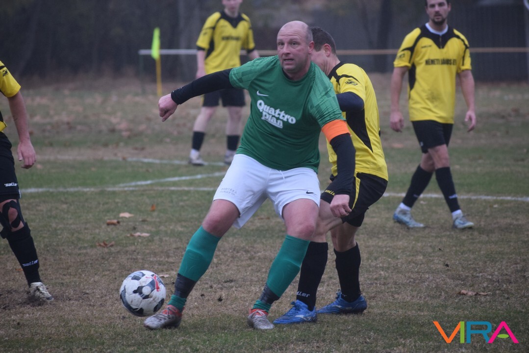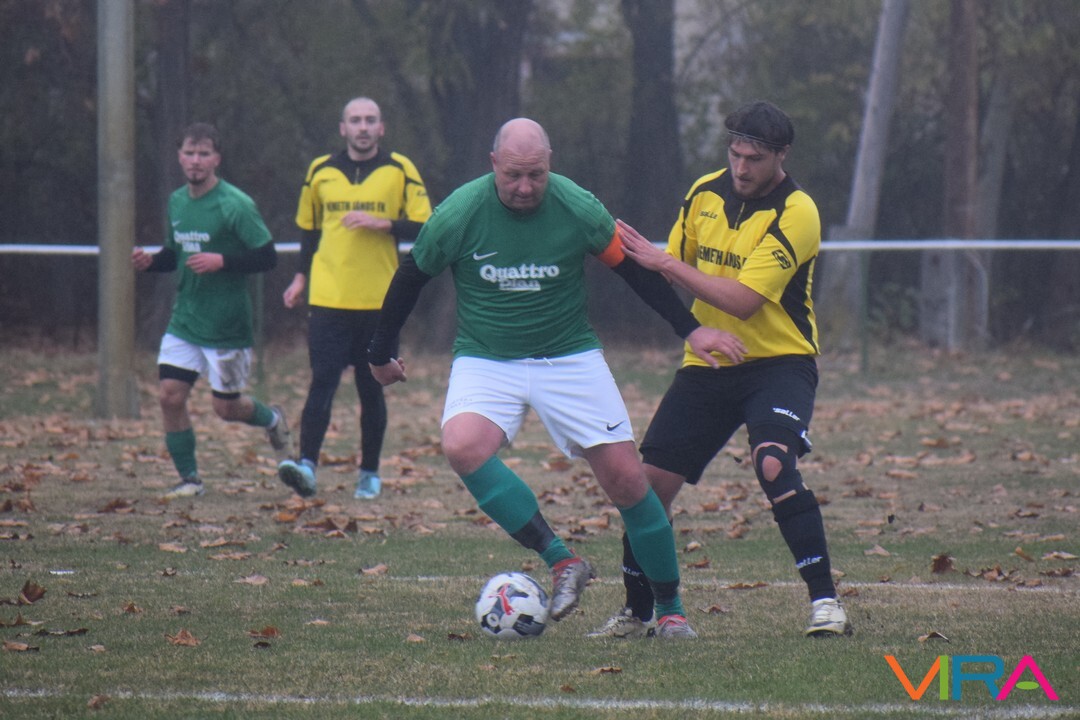 A közép csoport góllövőlistáját vezető Kővári Csabát igyekeznek megállítani a vendégek