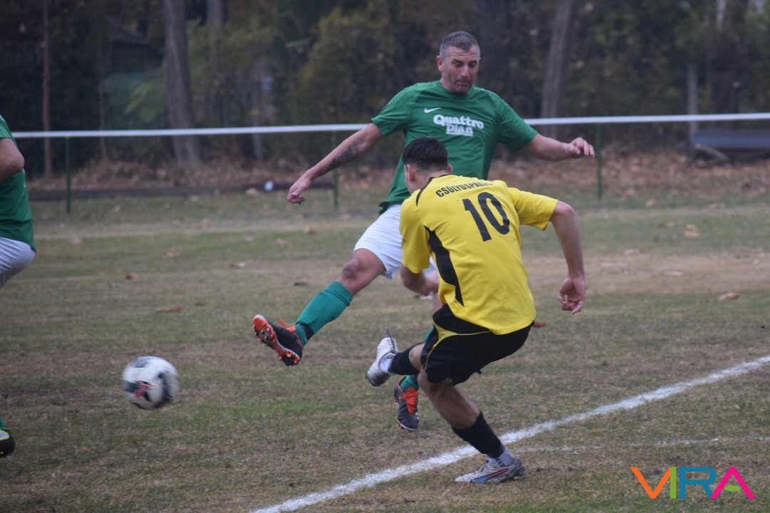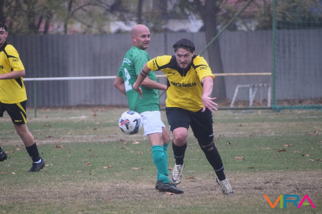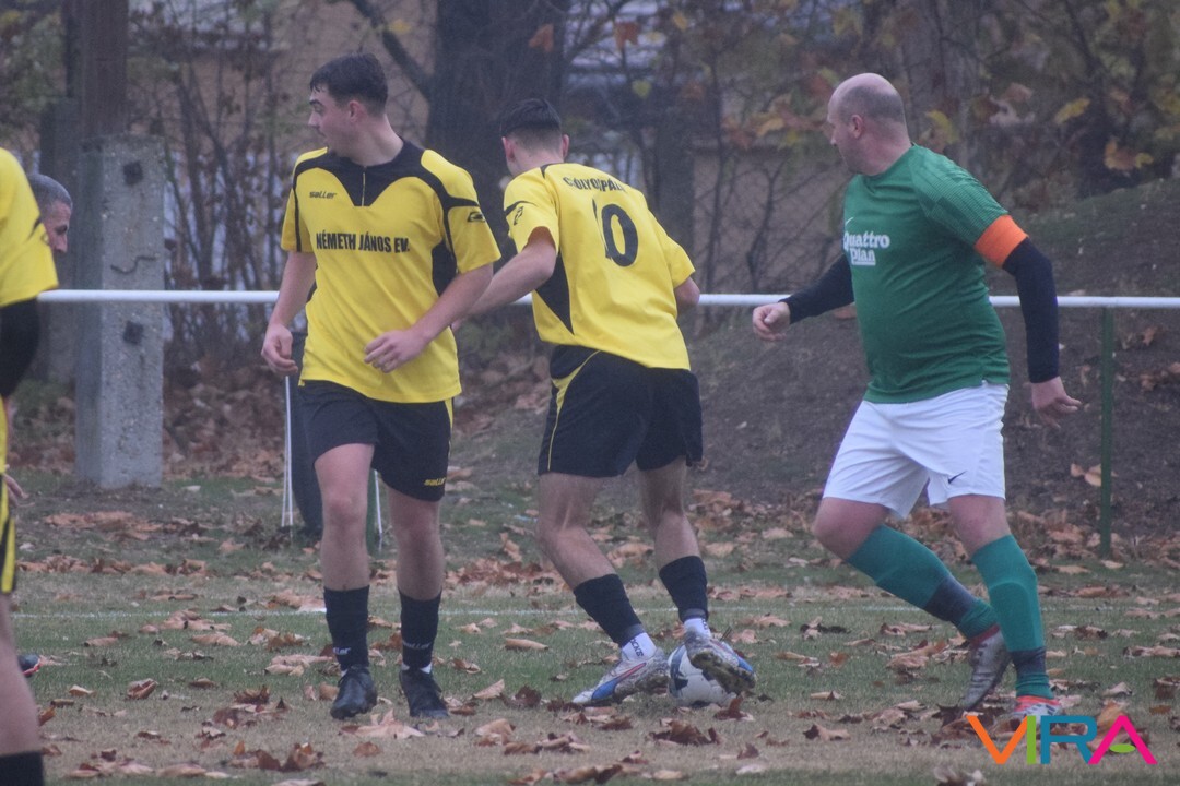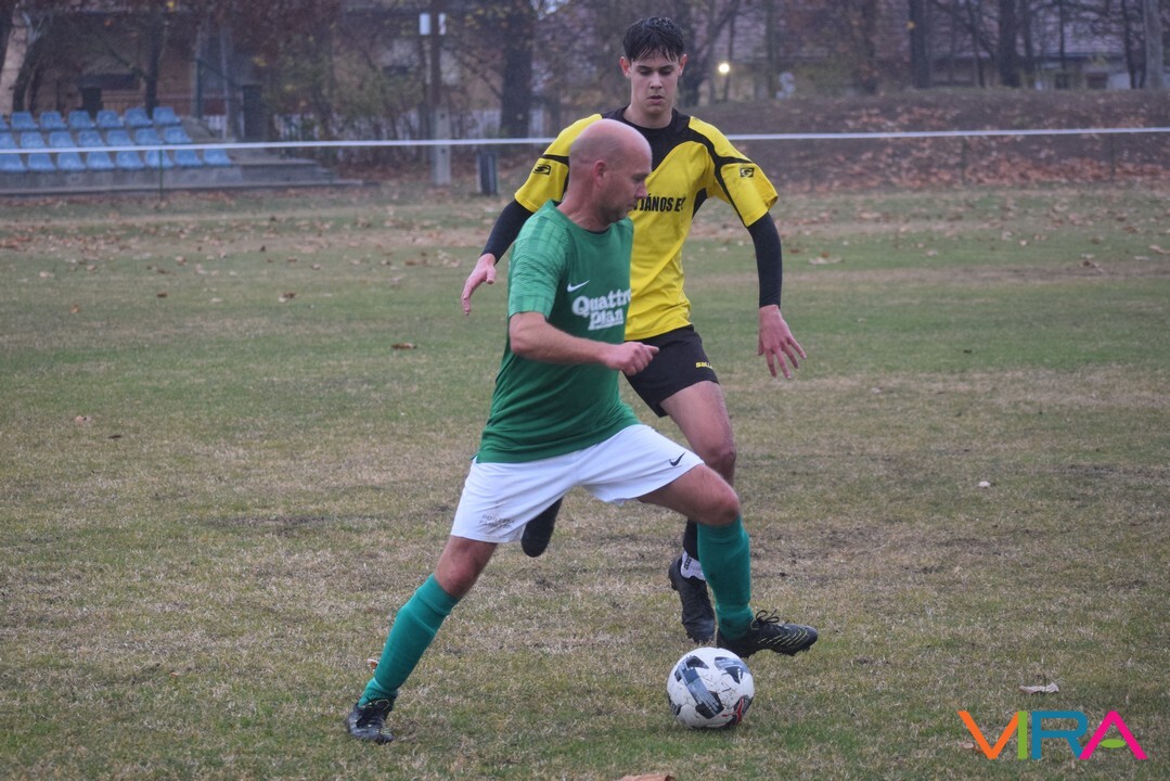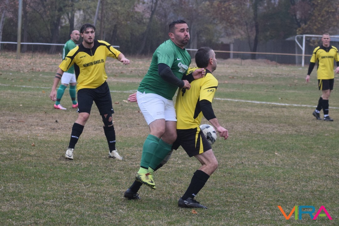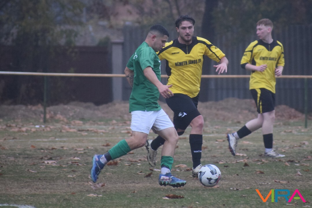 A közép csoport góllövőlistáját vezető Kővári Csabát igyekeznek megállítani a vendégek