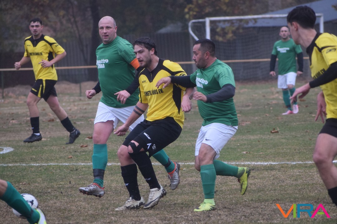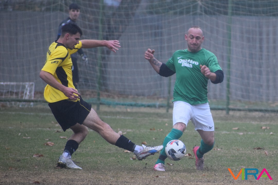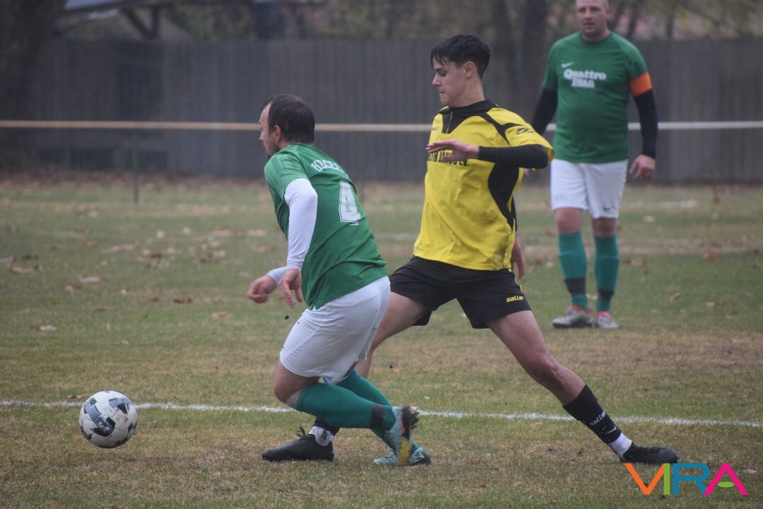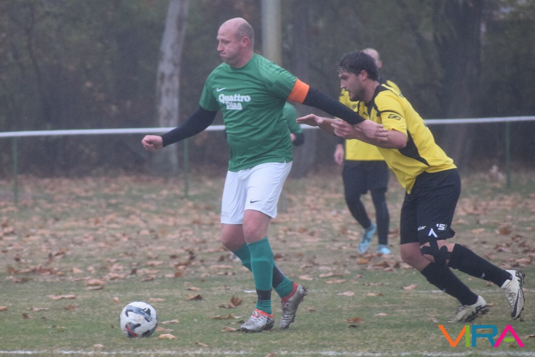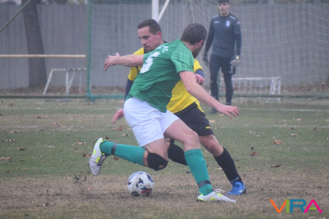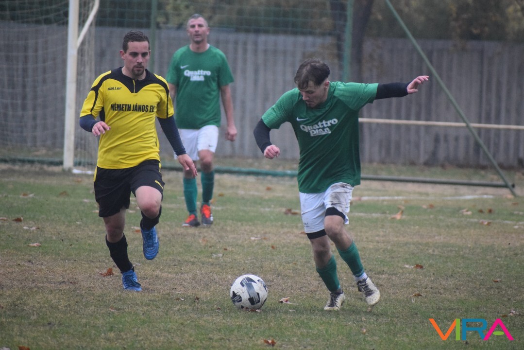 A közép csoport góllövőlistáját vezető Kővári Csabát igyekeznek megállítani a vendégek