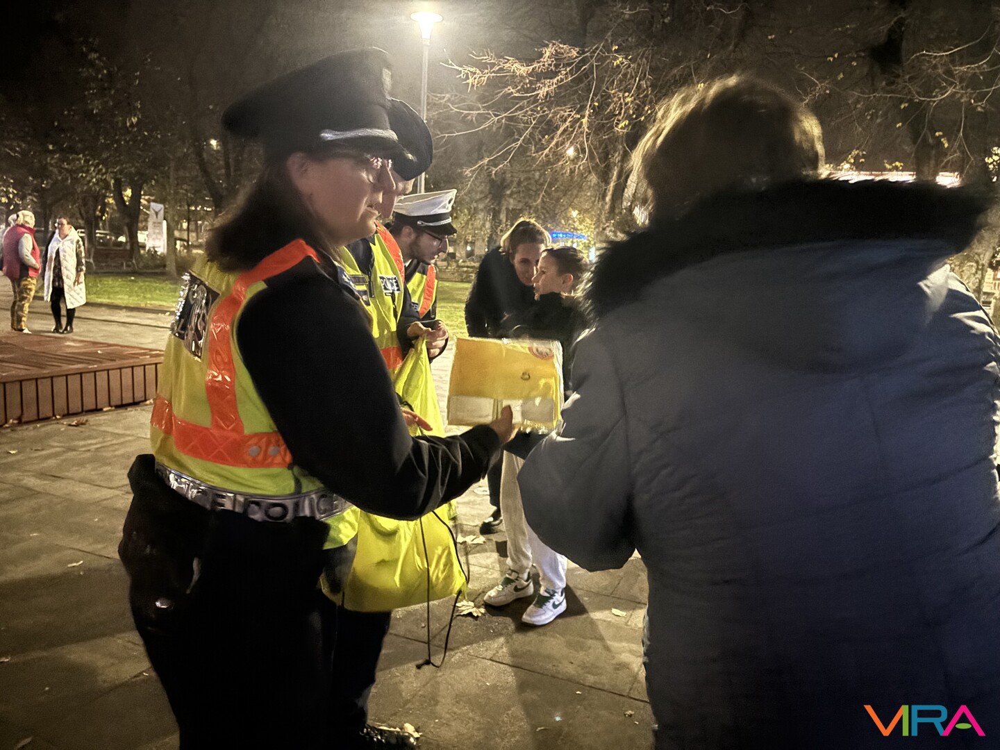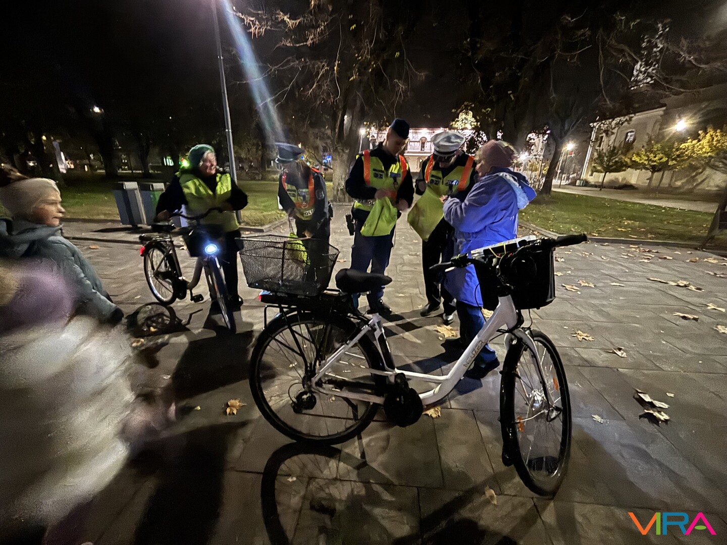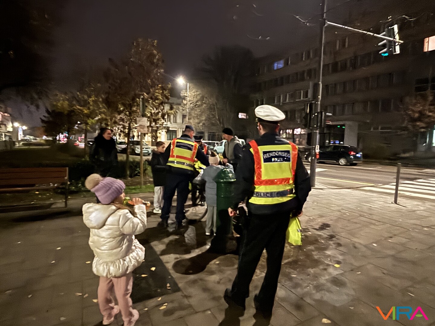 A rendőrök lámpákat, láthatósági mellényeket, fényvisszaverős karkötőket és kulcstartókat osztottak, a BEM EGYLET tagjai pedig csokit és kedves idézeteket ajándékoztak a bringásoknak – hogy az este mosollyal érjen véget.