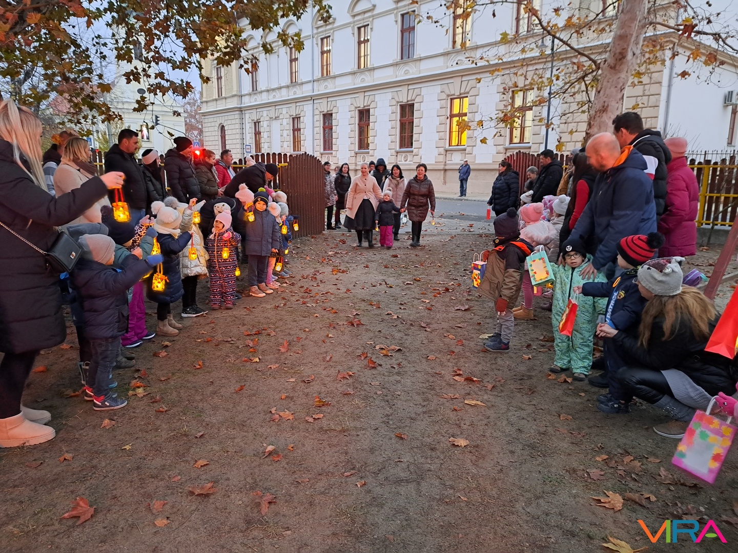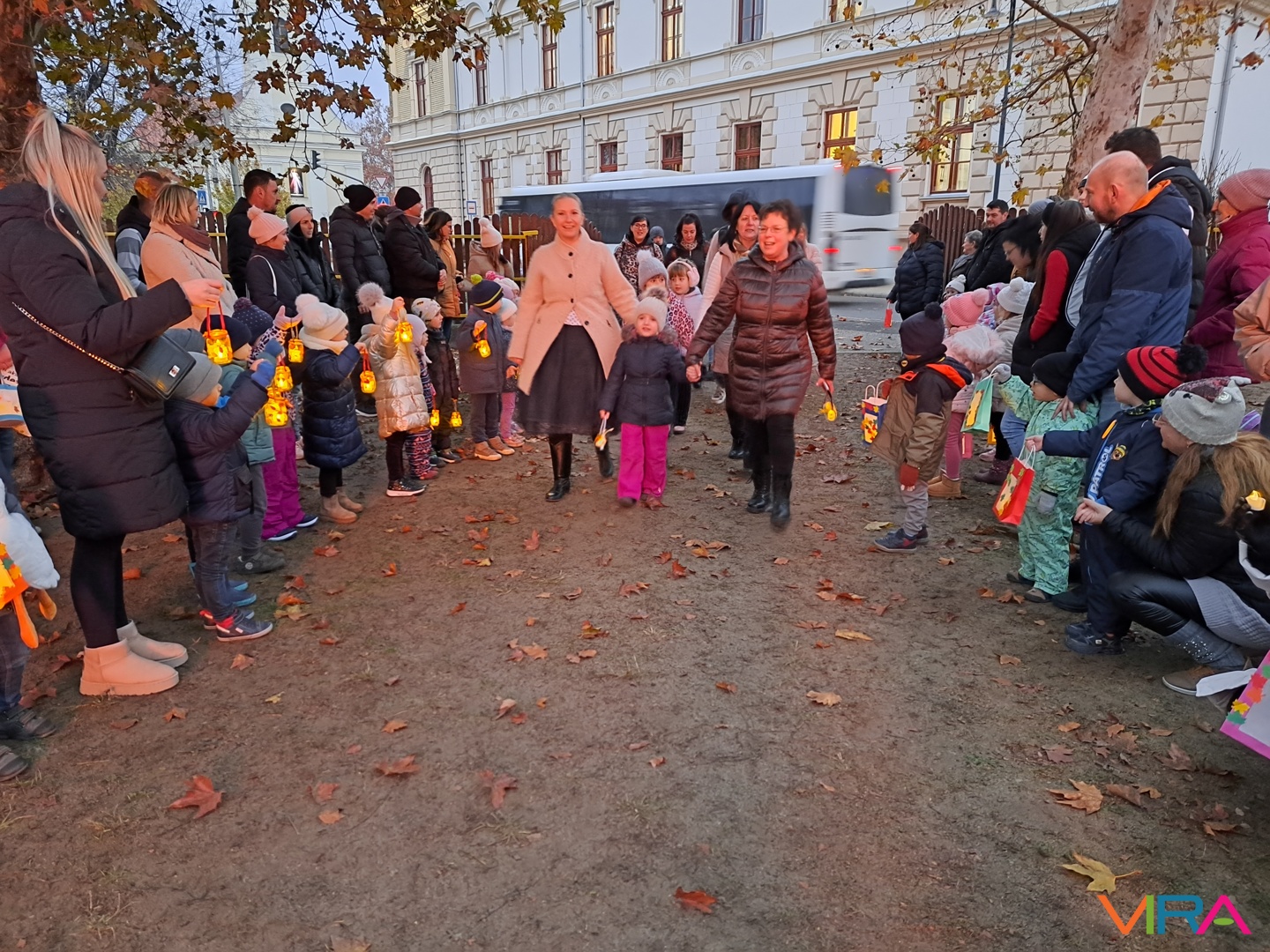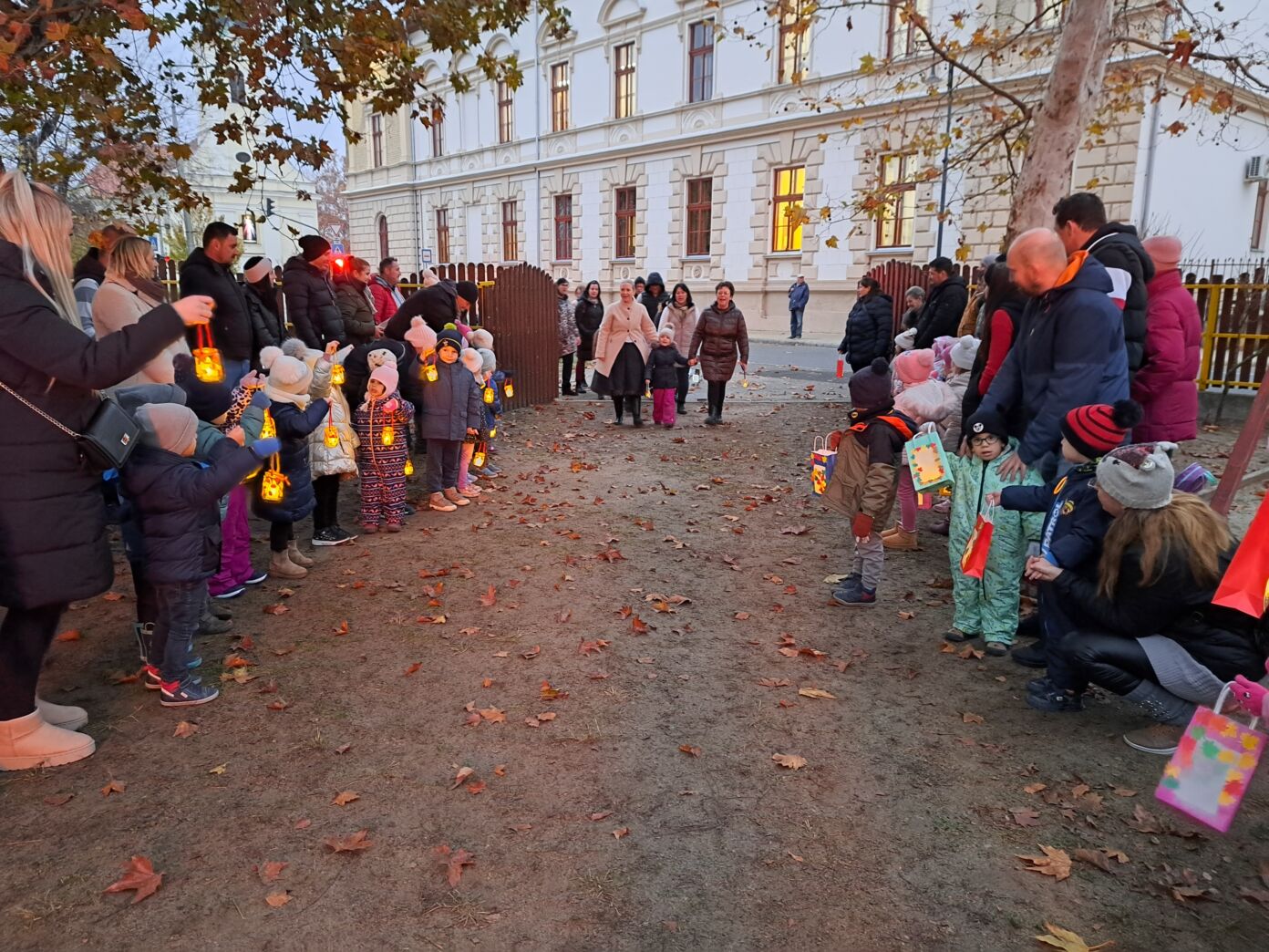 Hagyományaink közül a legtöbbet megtartottuk: volt tábortűz, népzene tánccal, libazsíros kenyér teával és forralt borral, lámpás felvonulás énekszóval. Most is meghívtuk a tavalyi nagycsoportosainkat, akik ma már az első osztály padjaiban ülnek. Újdonság is akadt: a rendezvényt megelőző napokban az Önkormányzati Hivatal dolgozóit és a képviselőtestületi tagokat élőszóban, zenés mondókás meghívóval csalogatta a Kisvirág csoport, ami nagy sikert aratott. A vonulás útvonala is változott, így kikerültük a forgalmas városközpontot, biztonságosabbá téve az utat. Meghívtuk a velünk együttműködő segítő szakembereket, és szeretettel vártuk vissza a volt kollégáinkat, akik a kezdetekben kitalálták, megszervezték és elindították ezt a hagyományt. Öröm volt velük találkozni, felidézni a régi időket!