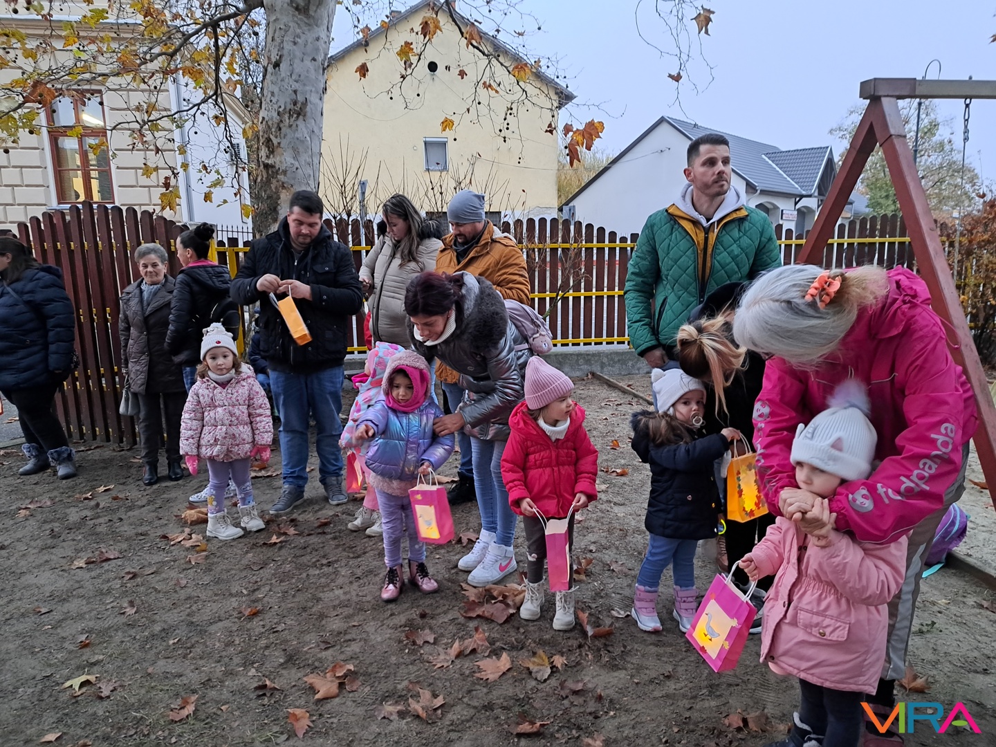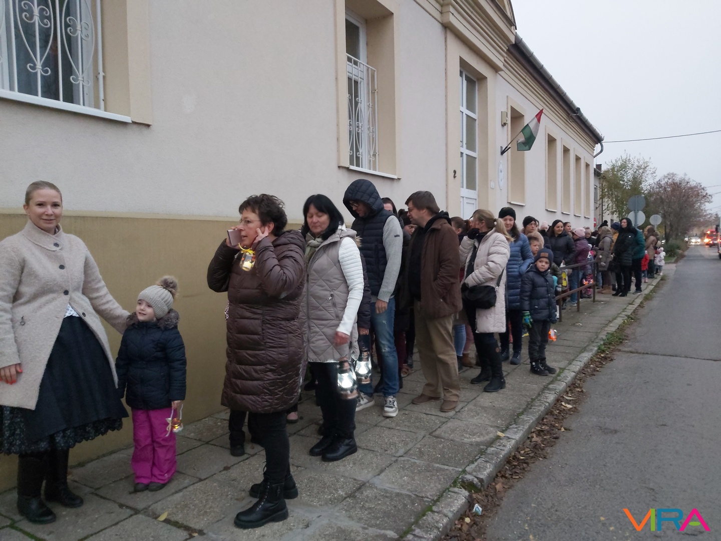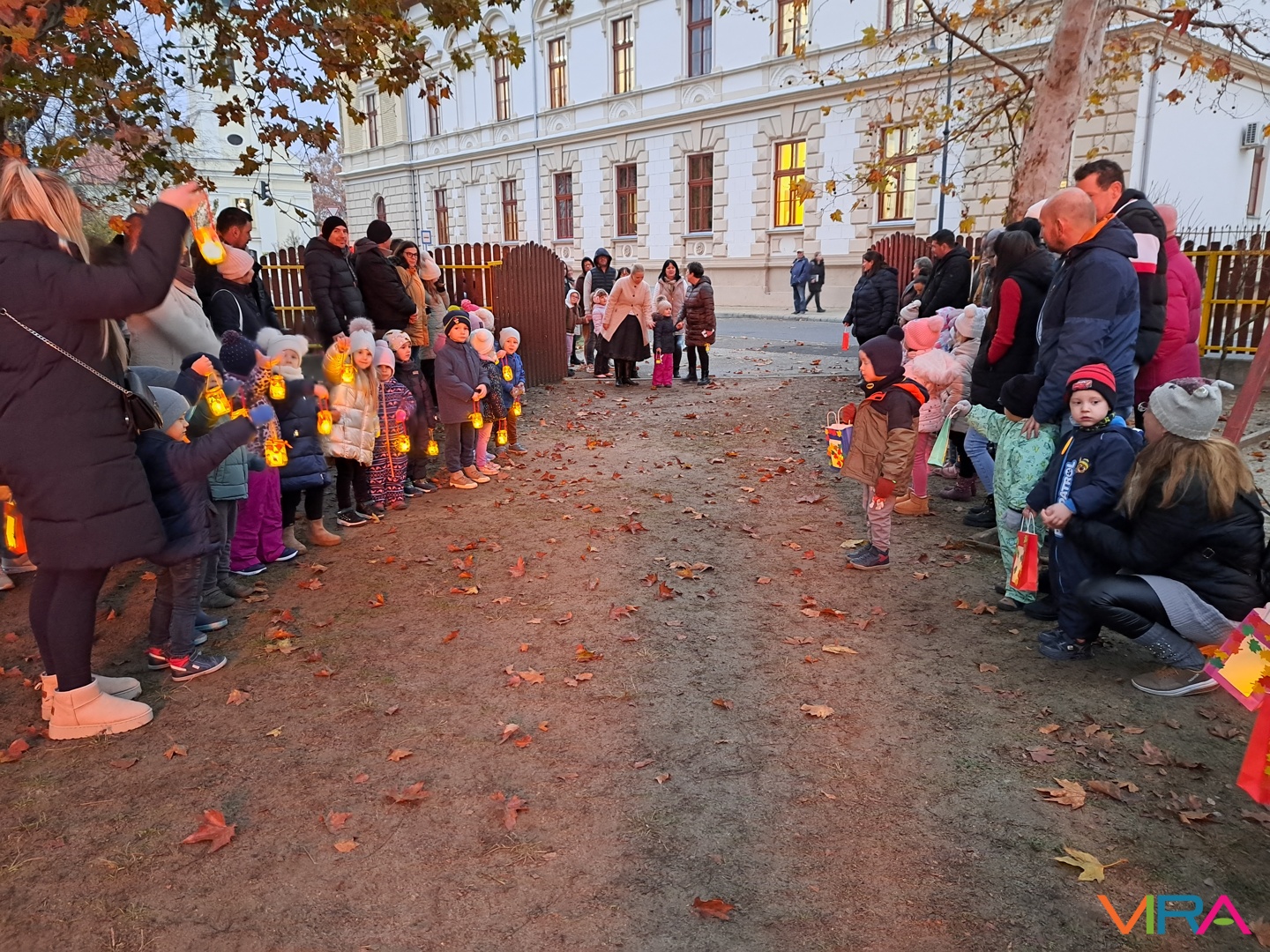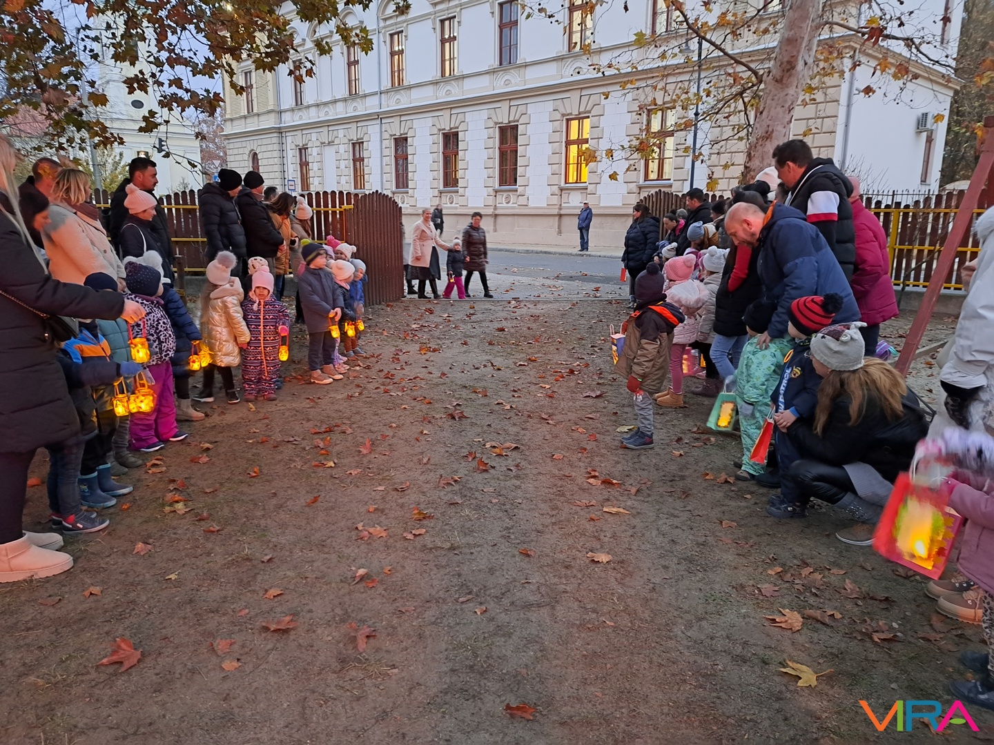 Hagyományaink közül a legtöbbet megtartottuk: volt tábortűz, népzene tánccal, libazsíros kenyér teával és forralt borral, lámpás felvonulás énekszóval. Most is meghívtuk a tavalyi nagycsoportosainkat, akik ma már az első osztály padjaiban ülnek. Újdonság is akadt: a rendezvényt megelőző napokban az Önkormányzati Hivatal dolgozóit és a képviselőtestületi tagokat élőszóban, zenés mondókás meghívóval csalogatta a Kisvirág csoport, ami nagy sikert aratott. A vonulás útvonala is változott, így kikerültük a forgalmas városközpontot, biztonságosabbá téve az utat. Meghívtuk a velünk együttműködő segítő szakembereket, és szeretettel vártuk vissza a volt kollégáinkat, akik a kezdetekben kitalálták, megszervezték és elindították ezt a hagyományt. Öröm volt velük találkozni, felidézni a régi időket!