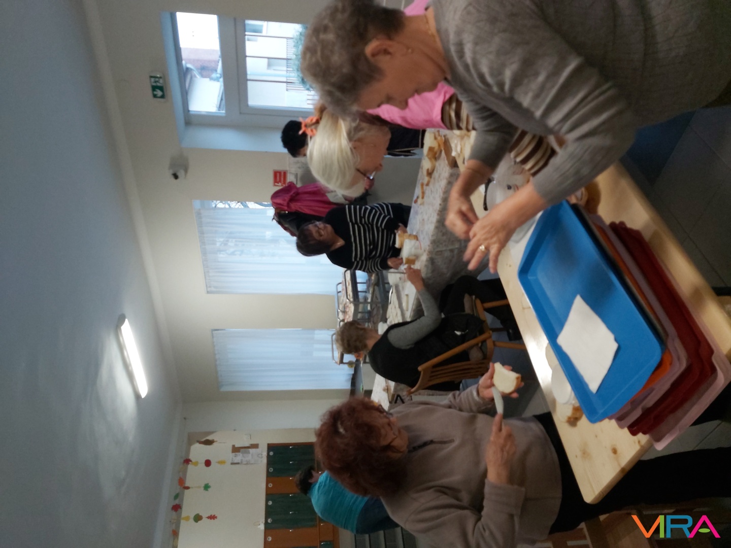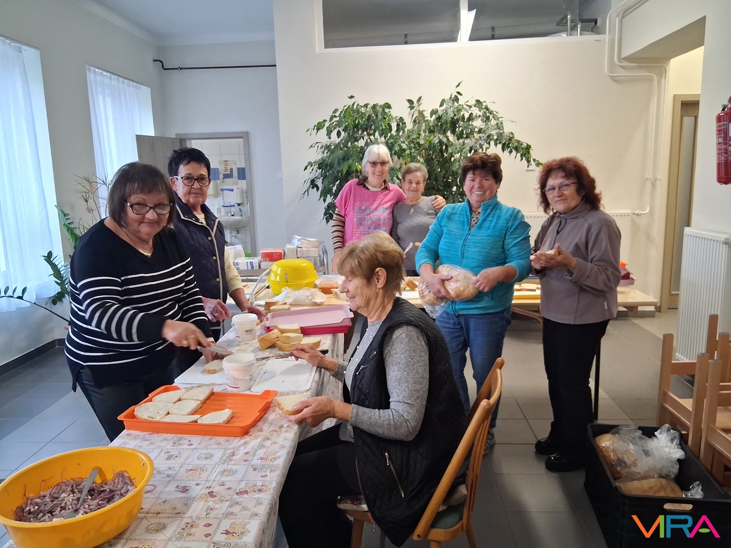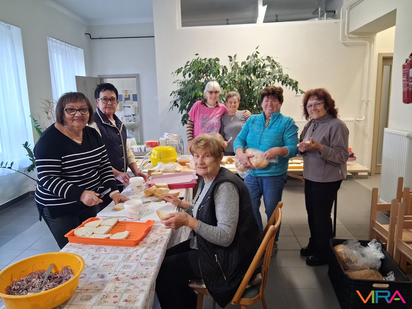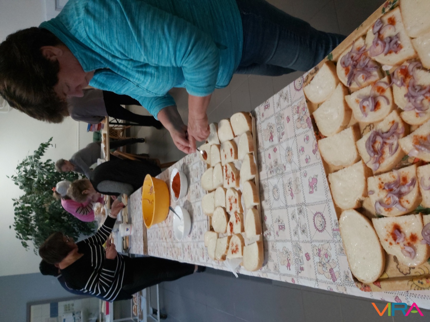 A közös mondókázás, éneklés és táncolás után jólesett a finom hagymás zsíros-kenyér, az