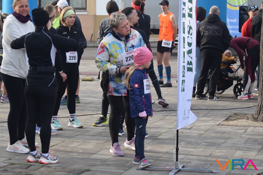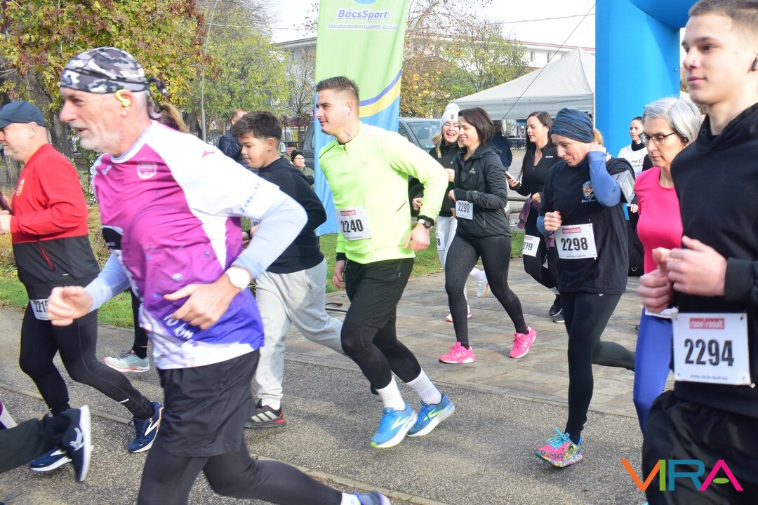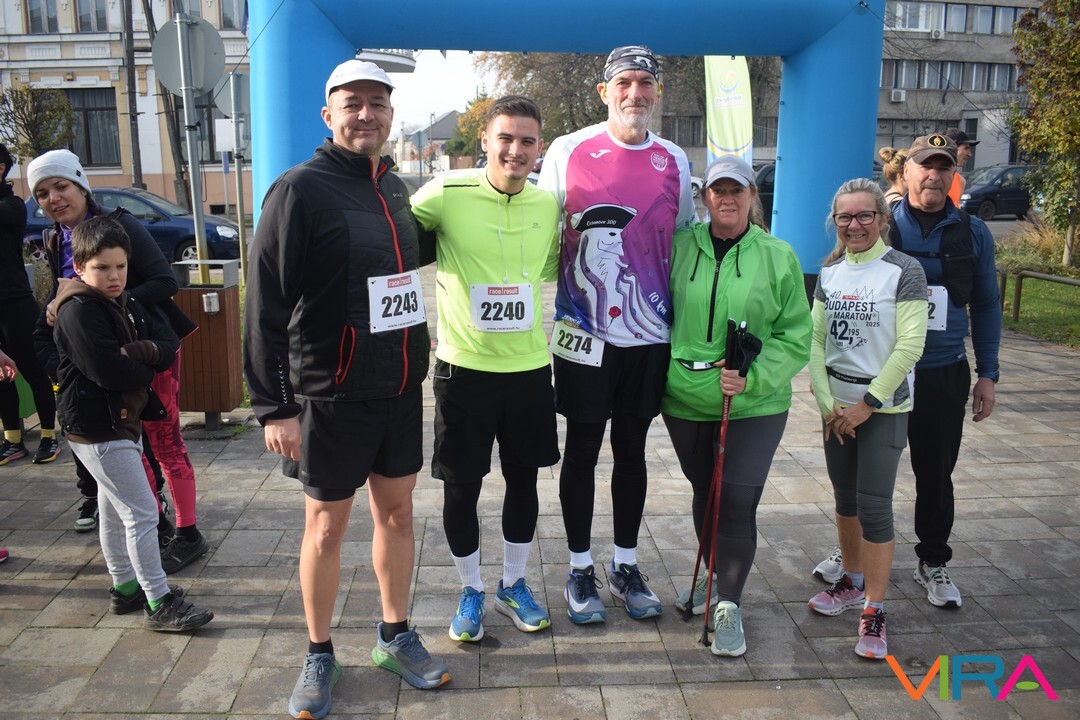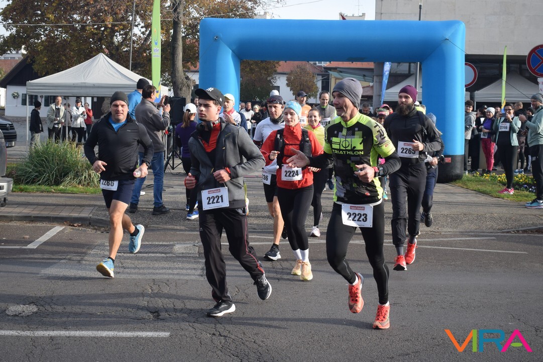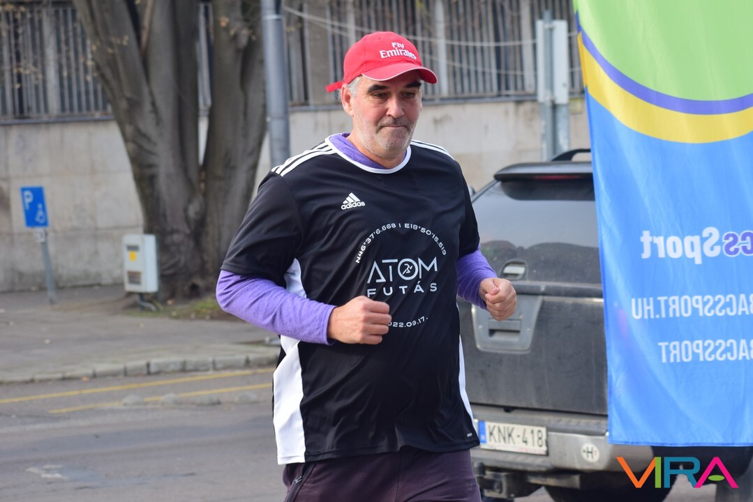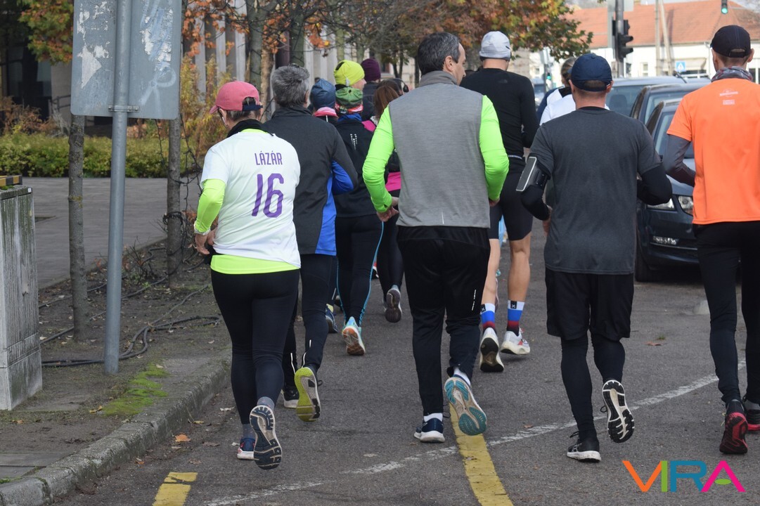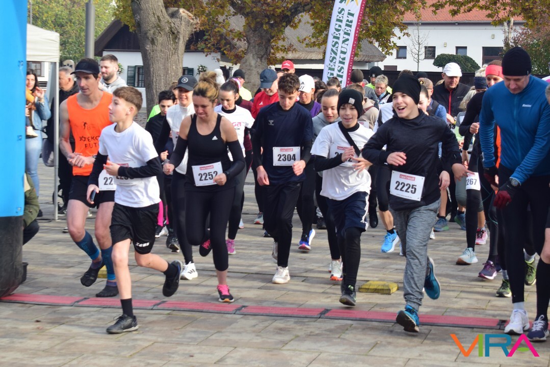 Míg a túrázók folyamatosan indultak a kiválasztott távjukra. Addig a futók már szorgosan melegítettek a Petőfi Sándor Művelődési Központ előtti rajtterületen. A futóverseny útvonala a már jól megszokott volt: