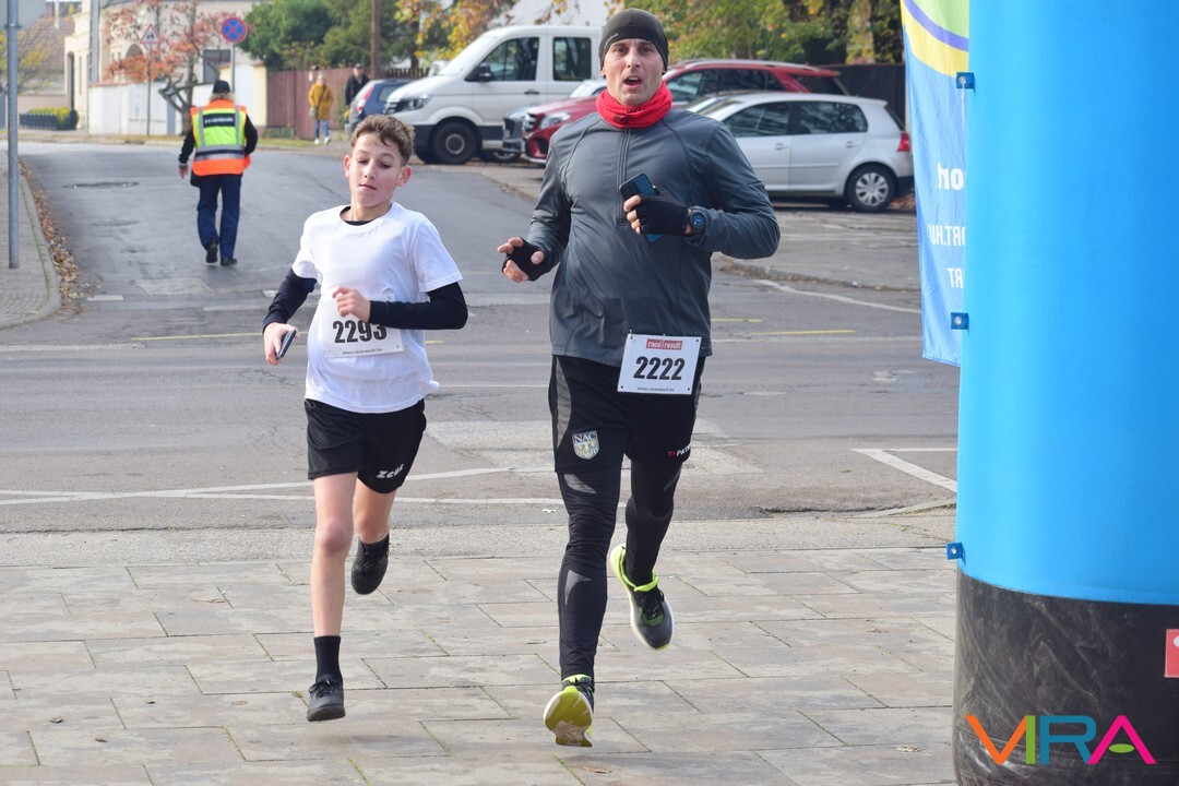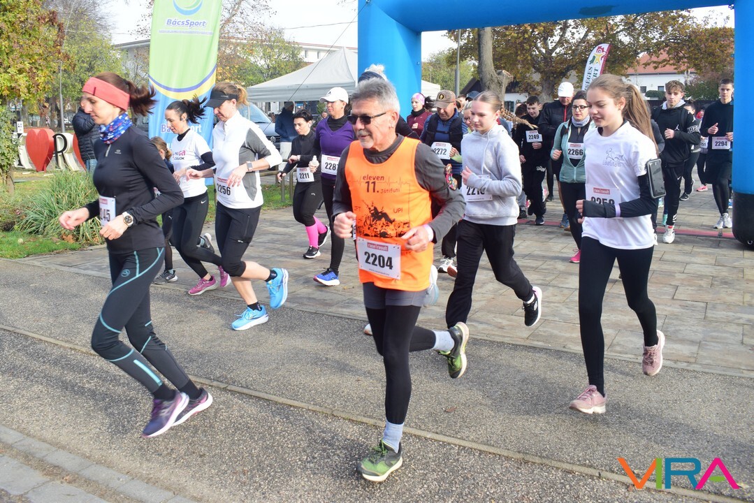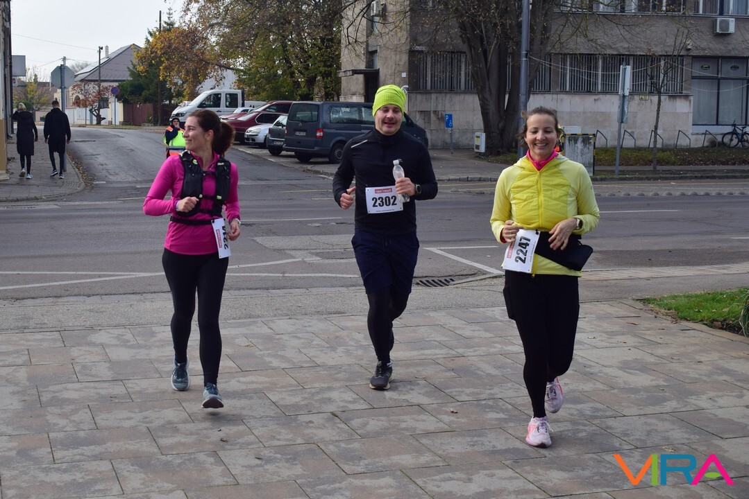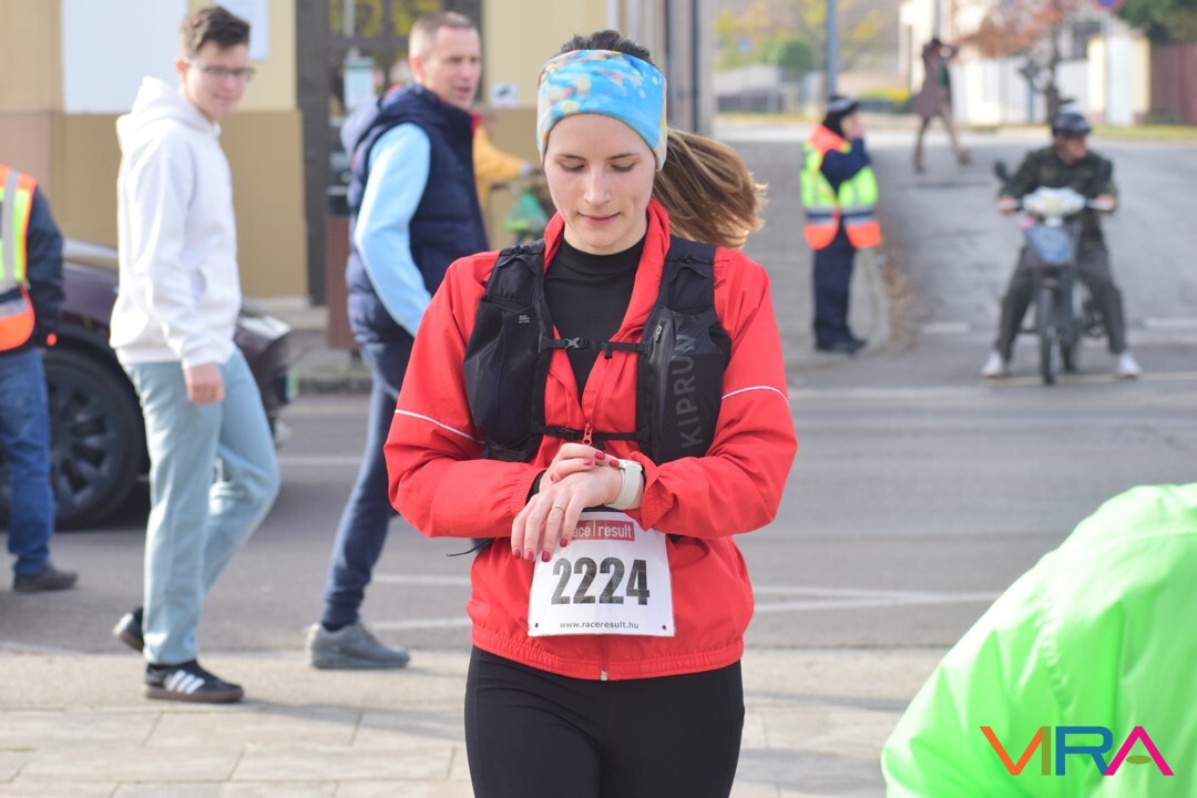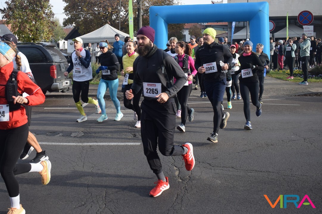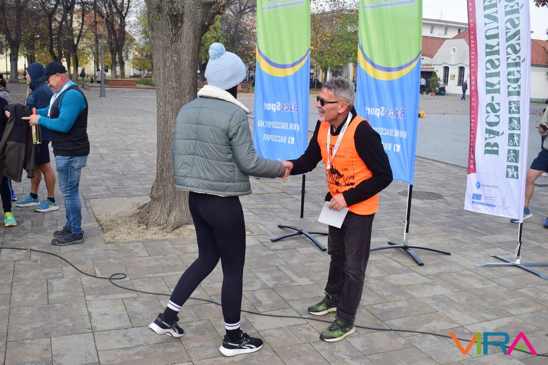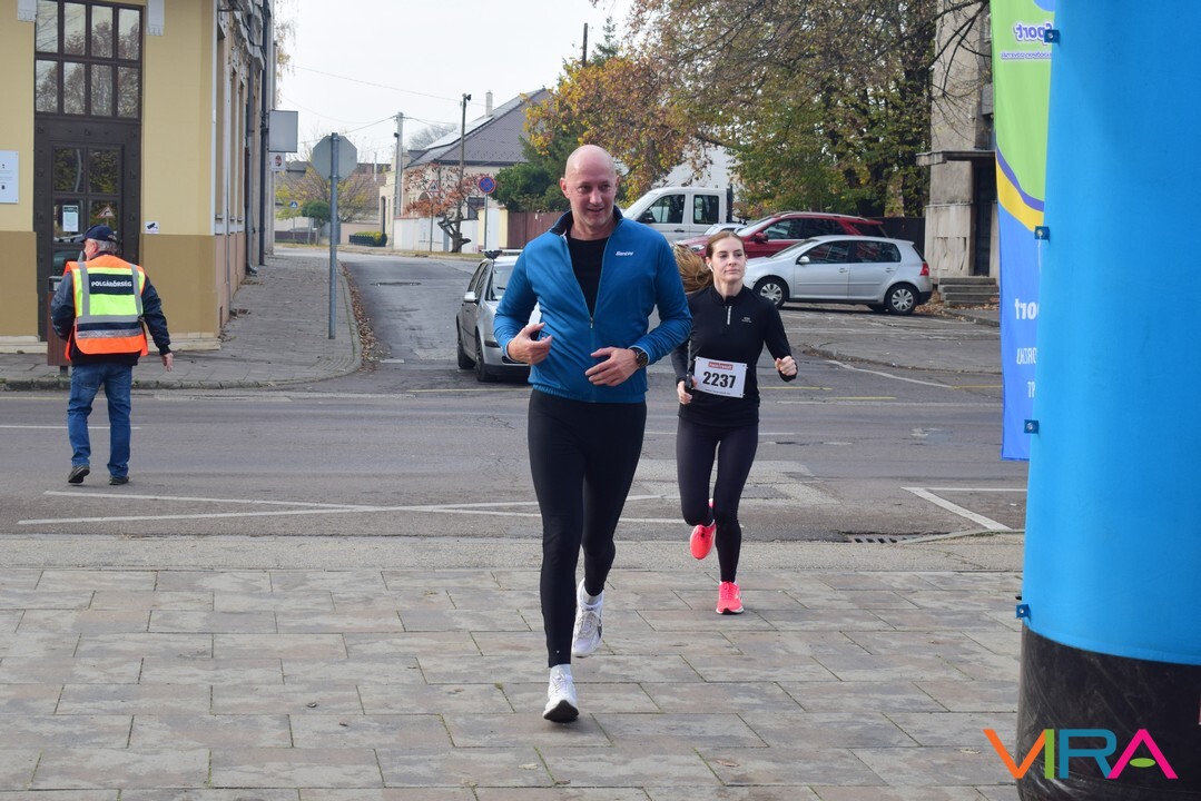 Míg a túrázók folyamatosan indultak a kiválasztott távjukra. Addig a futók már szorgosan melegítettek a Petőfi Sándor Művelődési Központ előtti rajtterületen. A futóverseny útvonala a már jól megszokott volt:
