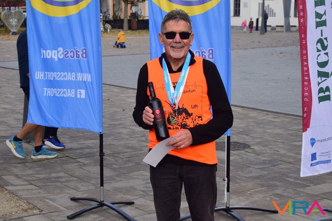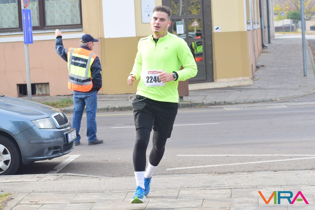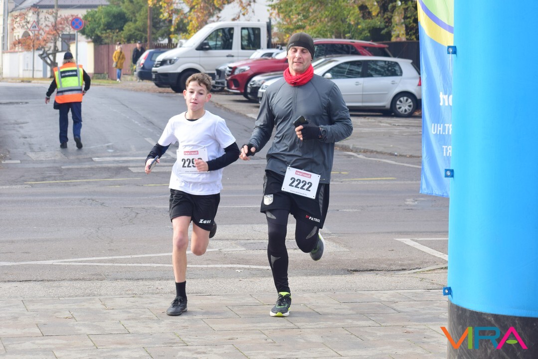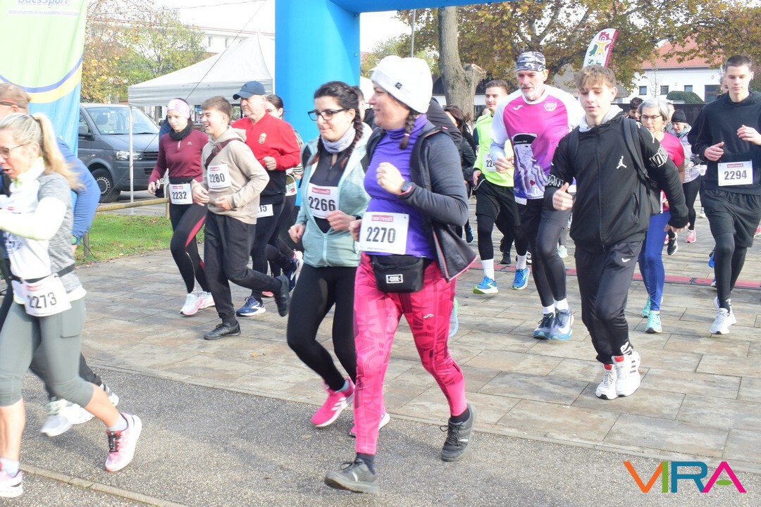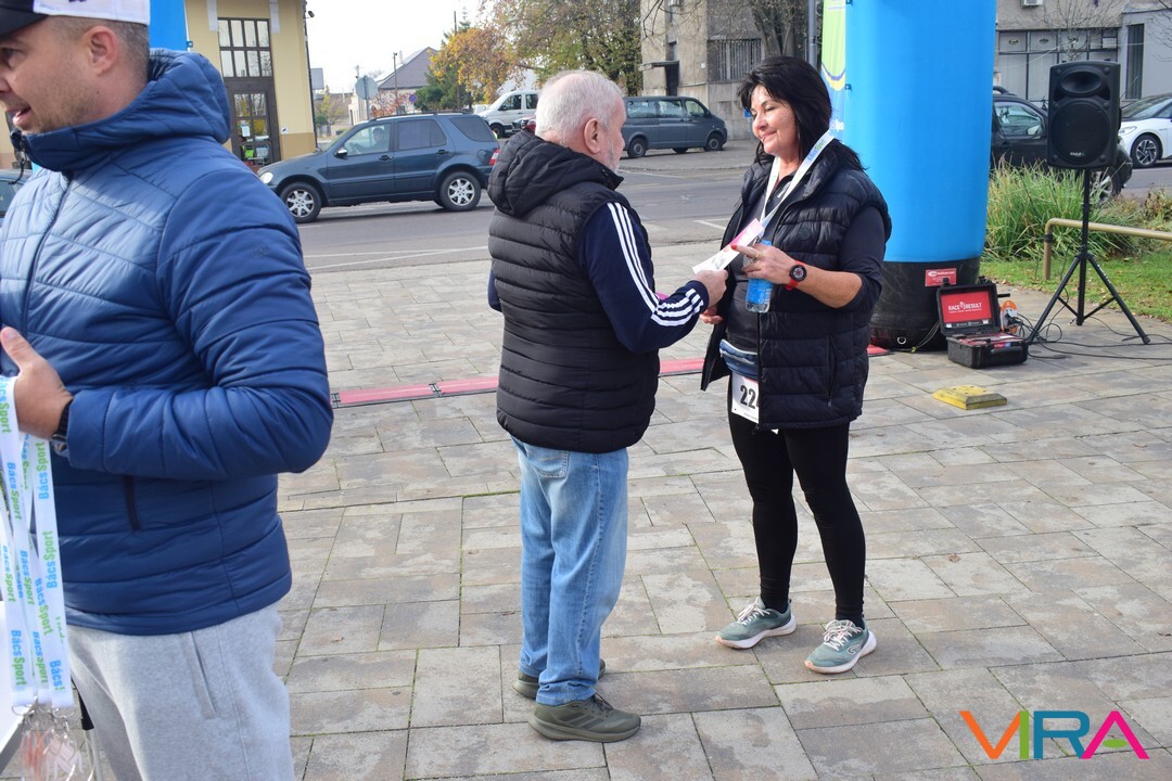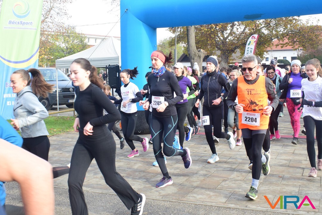 Míg a túrázók folyamatosan indultak a kiválasztott távjukra. Addig a futók már szorgosan melegítettek a Petőfi Sándor Művelődési Központ előtti rajtterületen. A futóverseny útvonala a már jól megszokott volt: