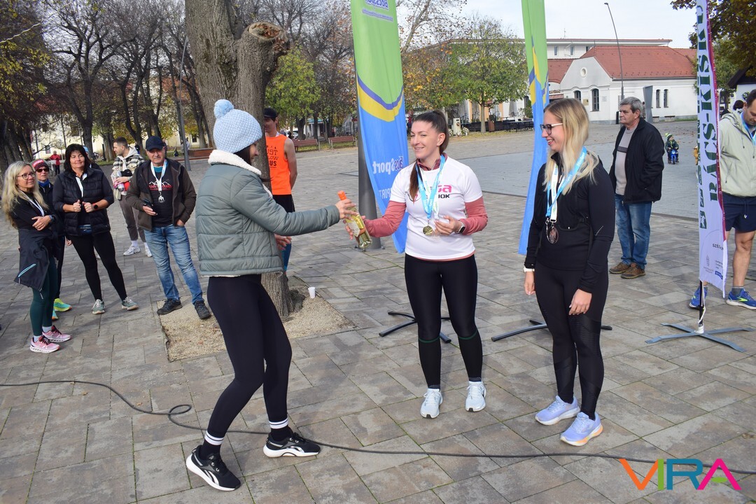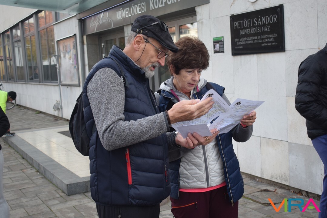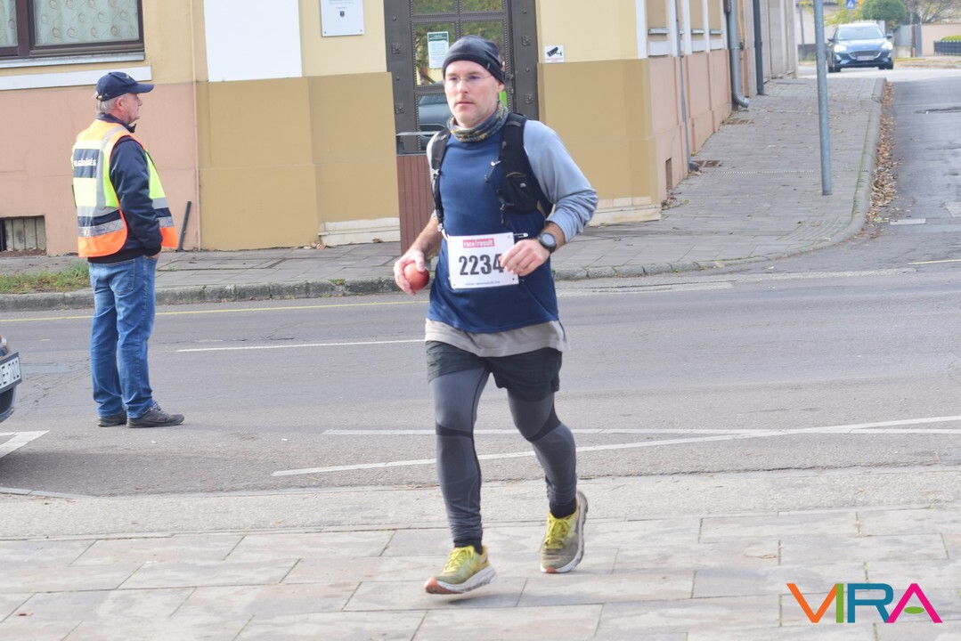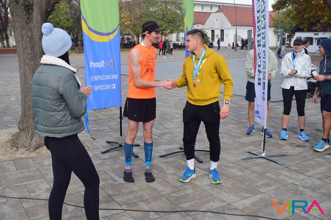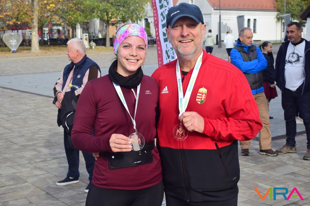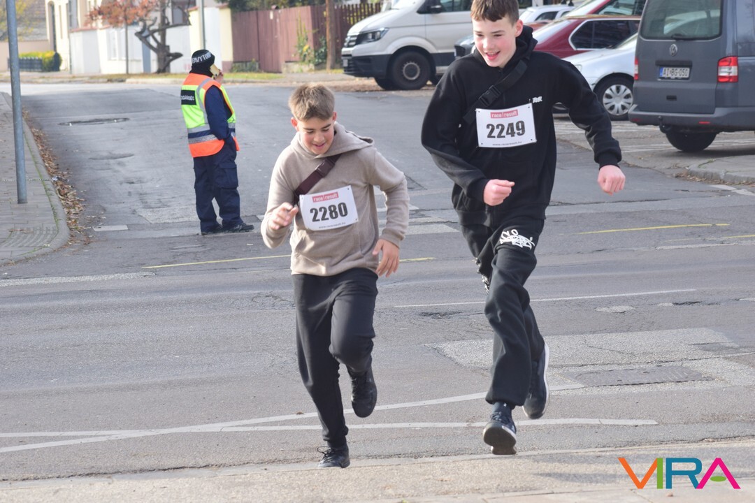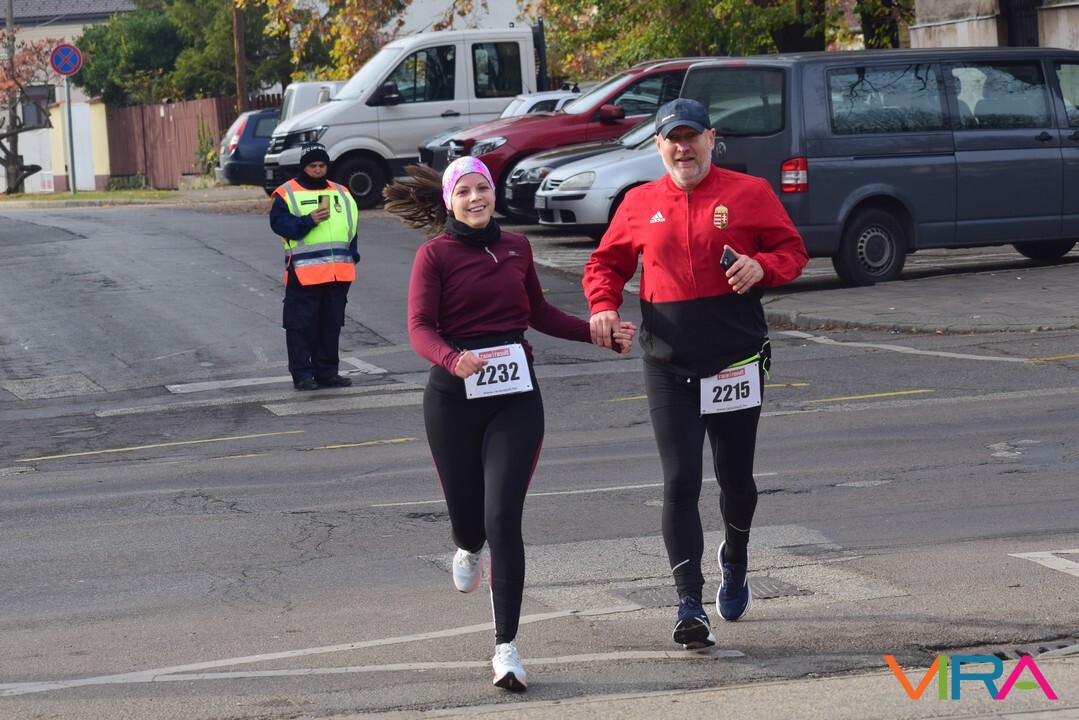 Míg a túrázók folyamatosan indultak a kiválasztott távjukra. Addig a futók már szorgosan melegítettek a Petőfi Sándor Művelődési Központ előtti rajtterületen. A futóverseny útvonala a már jól megszokott volt: