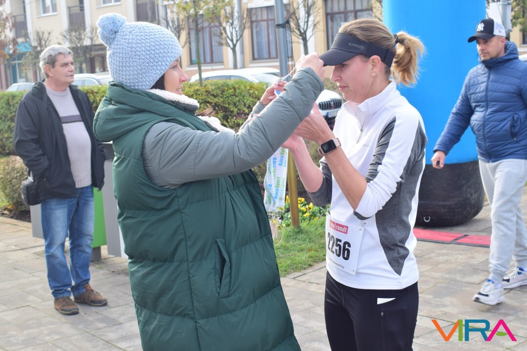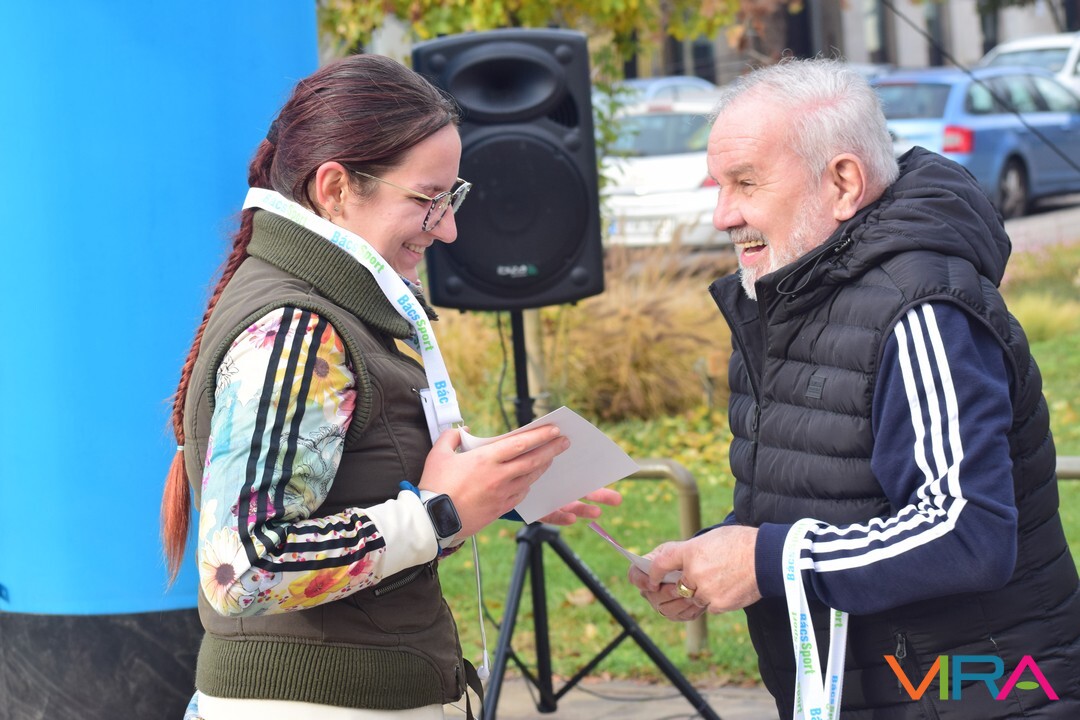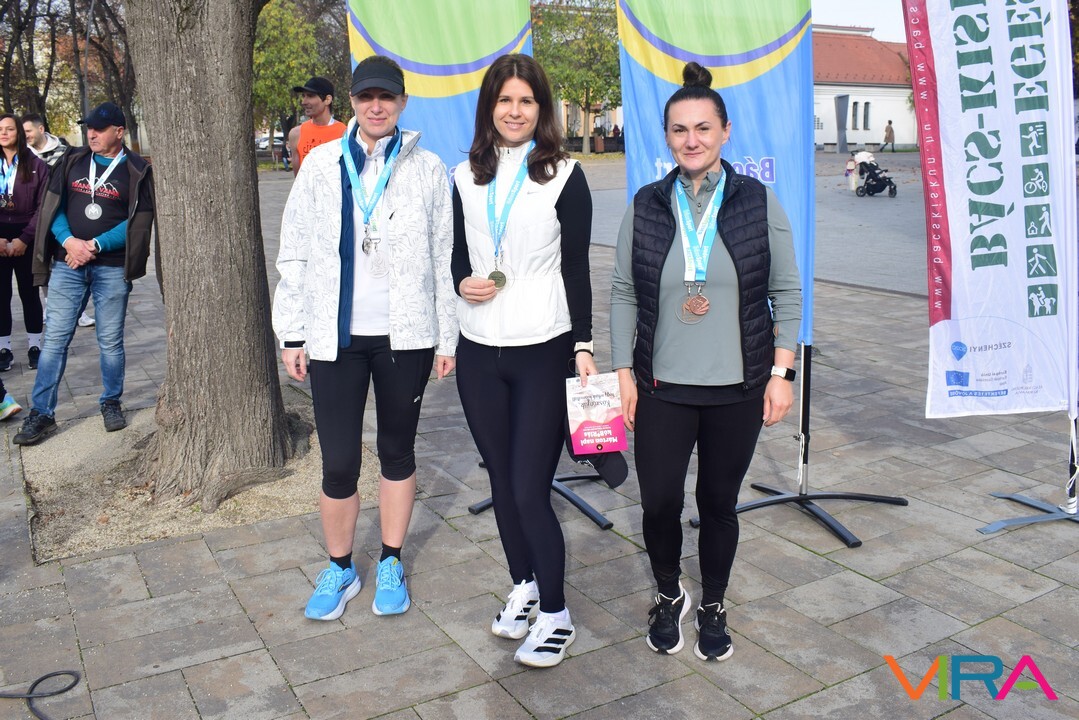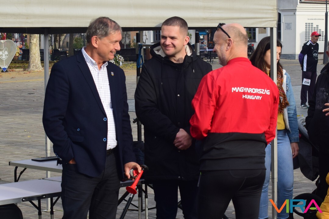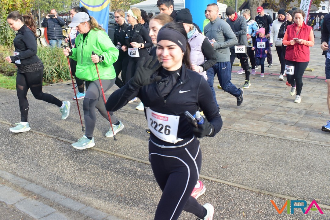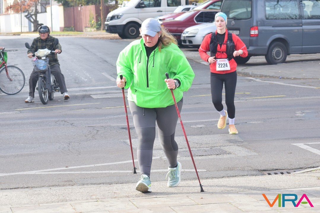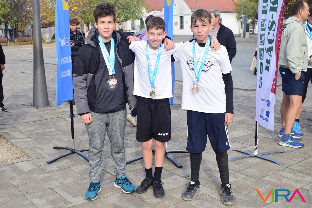 Míg a túrázók folyamatosan indultak a kiválasztott távjukra. Addig a futók már szorgosan melegítettek a Petőfi Sándor Művelődési Központ előtti rajtterületen. A futóverseny útvonala a már jól megszokott volt: