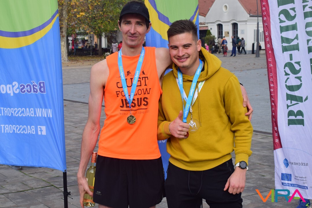 A félmaratonisták Akasztó központjáig futottak el majd vissza Kiskőrösre. A futók egyedi befutó érmet és emléklapot is kaptak a célba érkezés után, illetve itt minden távon volt korcsoportos díjazás is, így akik saját korcsoportjukban az első háromban végeztek, nekik arany, ezüst és bronzérmet akasztottak a nyakukba, illetve az elsők még egy üveg bort is hazavihettek. A futókat a rajtjuk előtt Domonyi László polgármester is köszöntötte, illetve ő rajtoltatta el a több mint száz indulót.