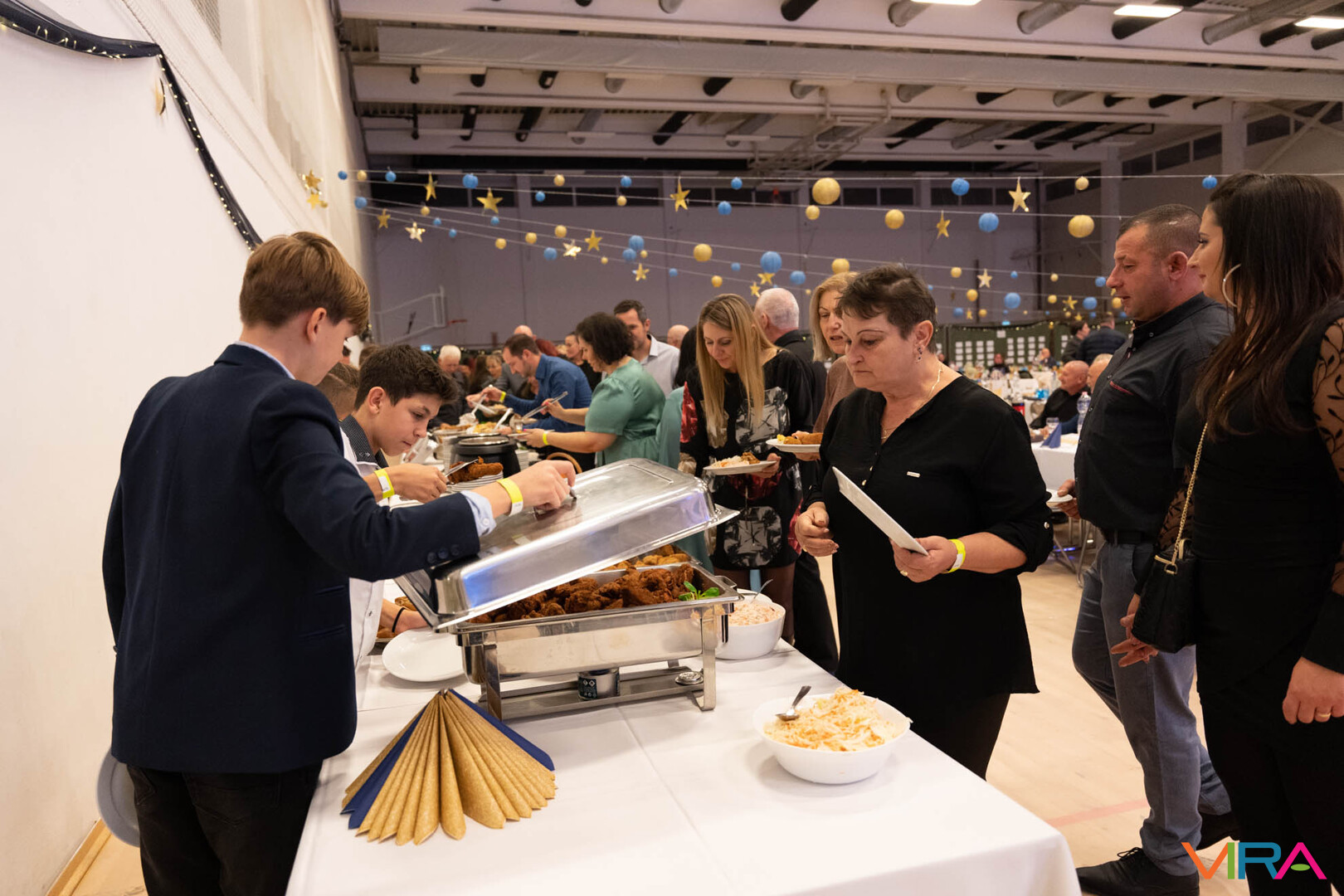 A rendezvény selfie ponttal, büfével és egy kiemelkedően gazdag tombolasorsolással várta a vendégeket: több mint 400 felajánlás érkezett, a 15 nagy értékű fődíjat pedig éjfél után sorsolták ki. Idén különleges adományozási lehetőségként az úgynevezett „ötvenes palackok” megvásárlásával is támogathatták az iskolát.
