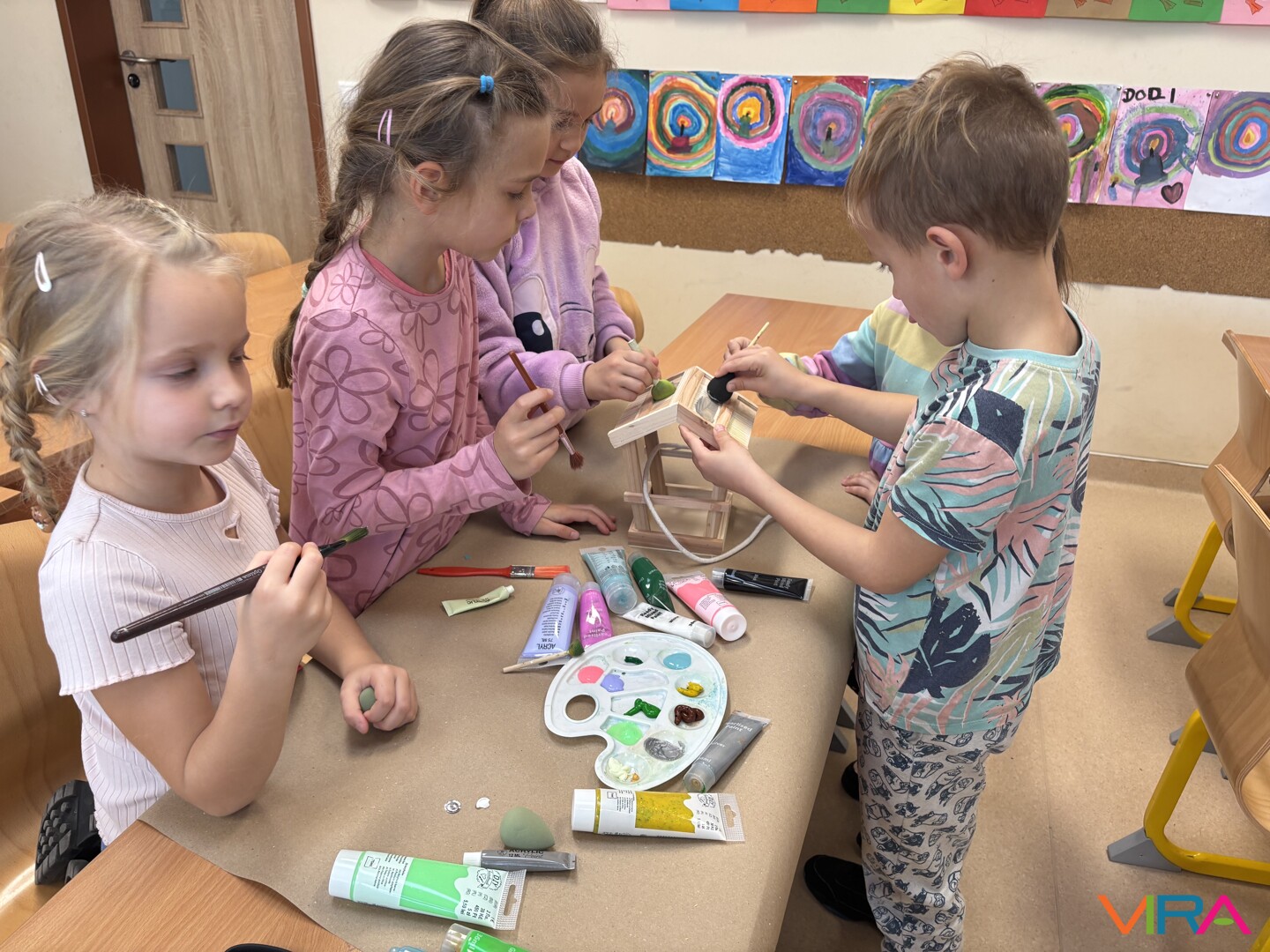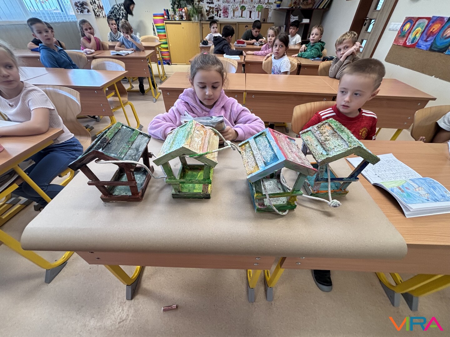 A színes, kreatív etetők jelenleg száradnak, és a közeljövőben egy közeli erdőbe kerülnek kihelyezésre. A gyerekek természetesen részt vesznek majd a megfigyelésben, és ők maguk fogják pótolni az eleséget, hogy lássák, milyen madarak érkeznek a műhelymunka gyümölcséhez.