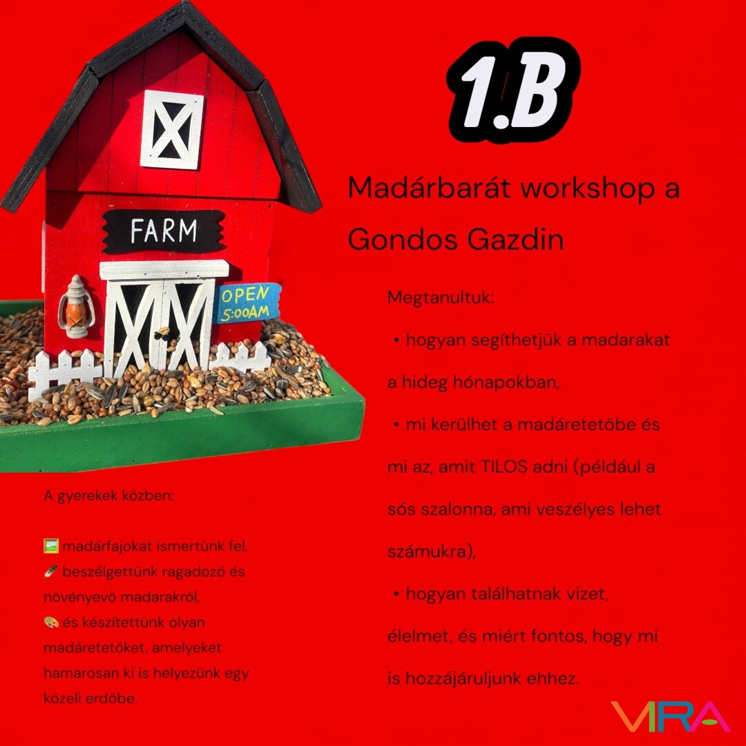 A Kiskőrösi Bem József Általános Iskola 1.b osztálya ismét egy különleges, élményalapú tanulási programon vett részt: a Gondos Gazdi keretében madárbarát workshopot tartottak, ahol a gyerekek saját kezűleg készítettek madáretetőket, és játékos formában ismerkedtek meg a téli madárvédelem alapjaival.