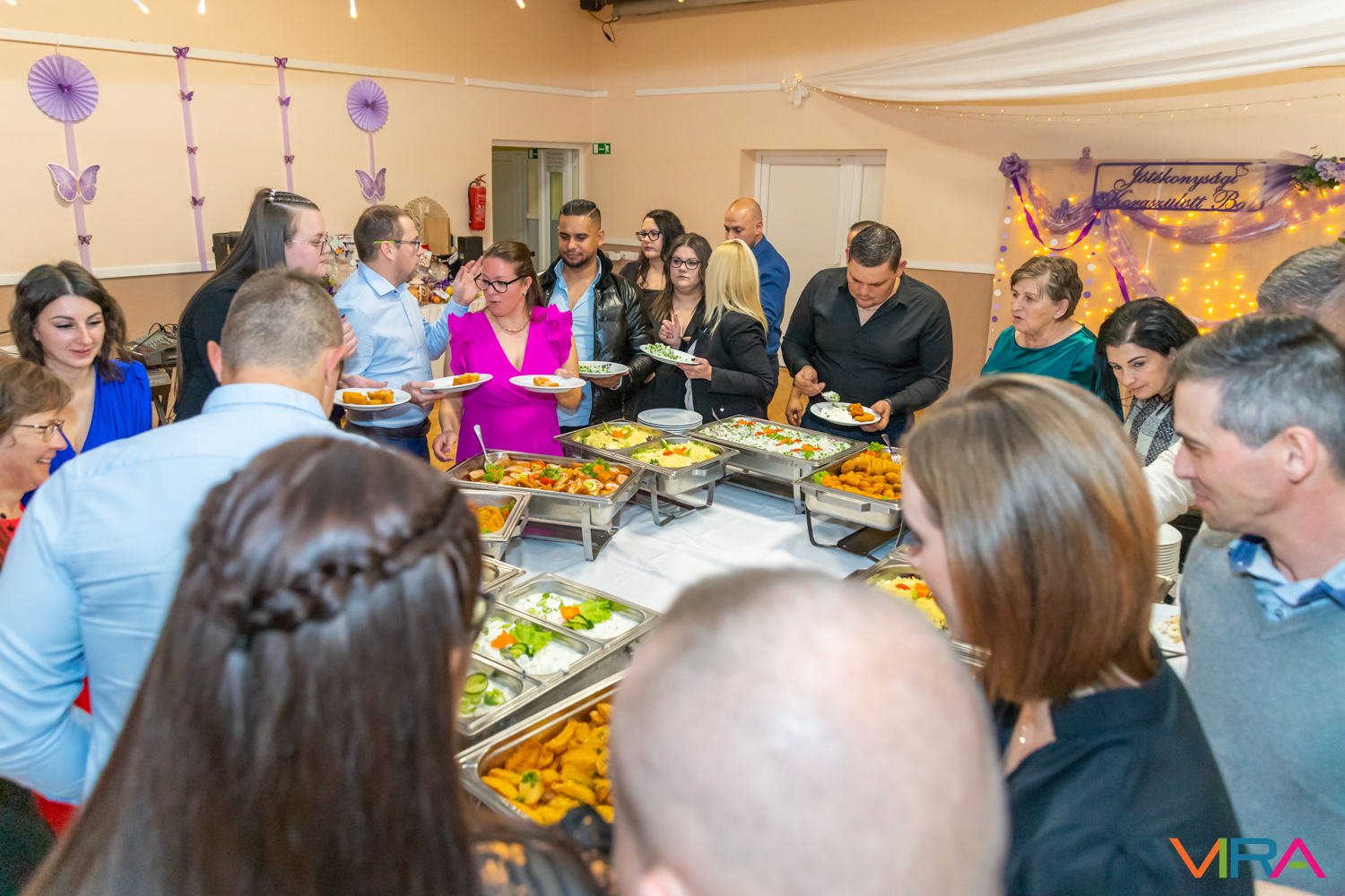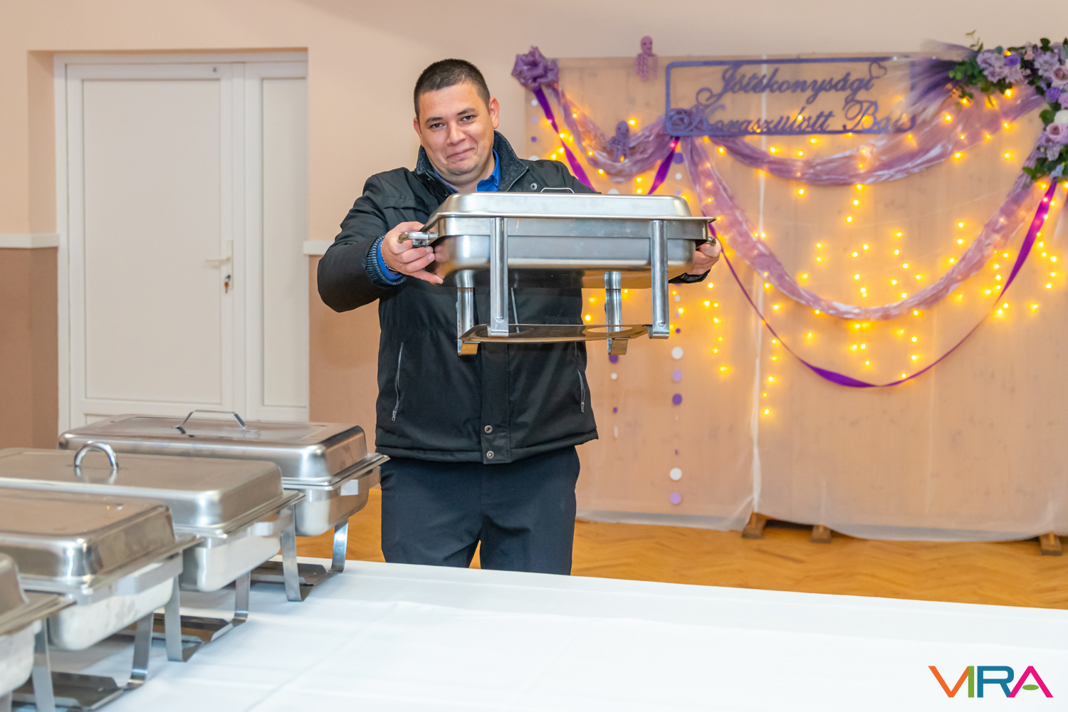 A vacsora – ahogy azt már megszokhatták a résztvevők – bőséges és házias volt: raguleves, sültes tálak kerültek az asztalra a soltvadkerti Corner Bisztro konyhájából. A sütemények a szervezőség és édesanyák szorgos kezeinek munkája. Büfé nem üzemelt, így az italokról mindenki maga gondoskodott.